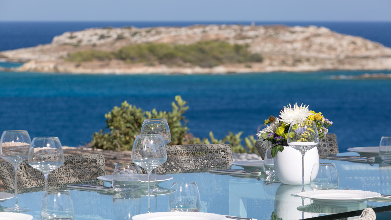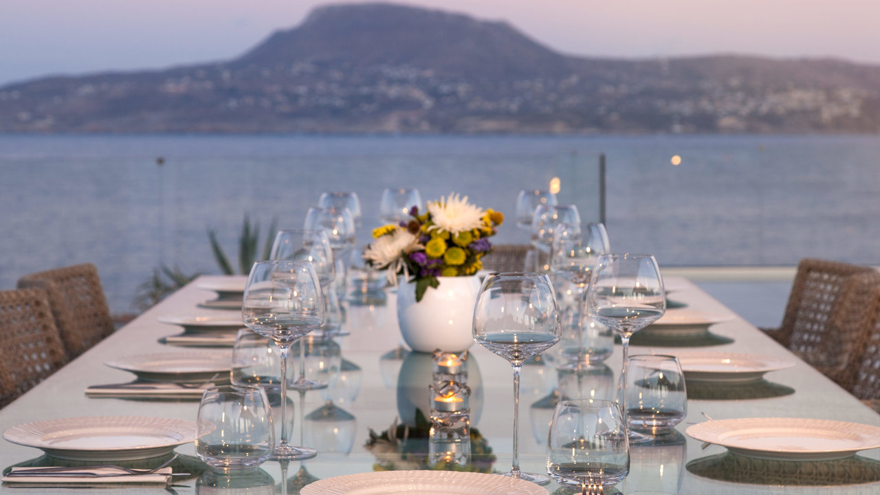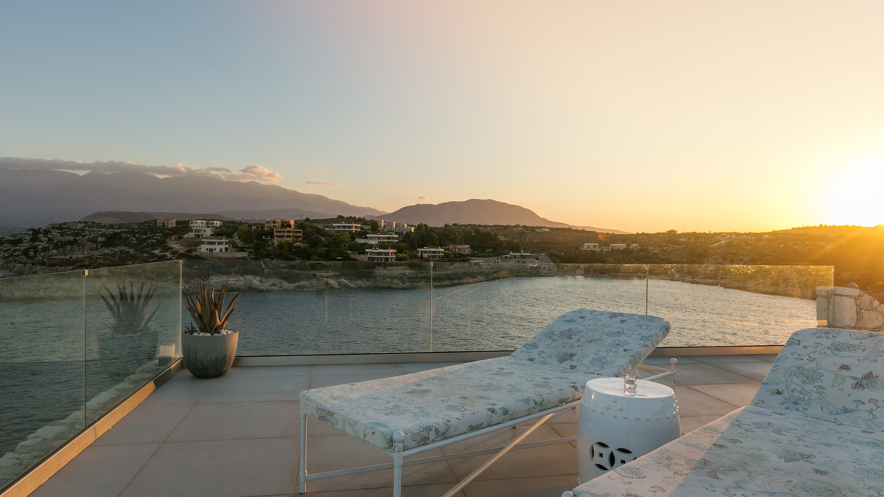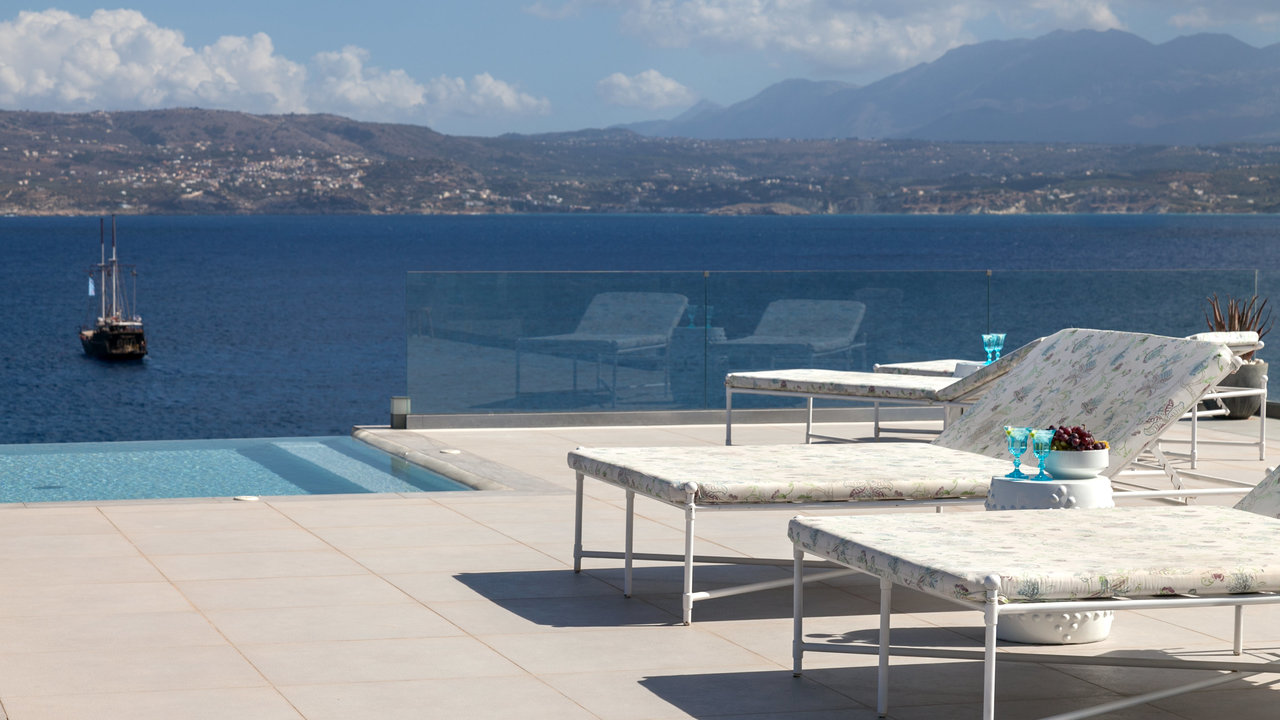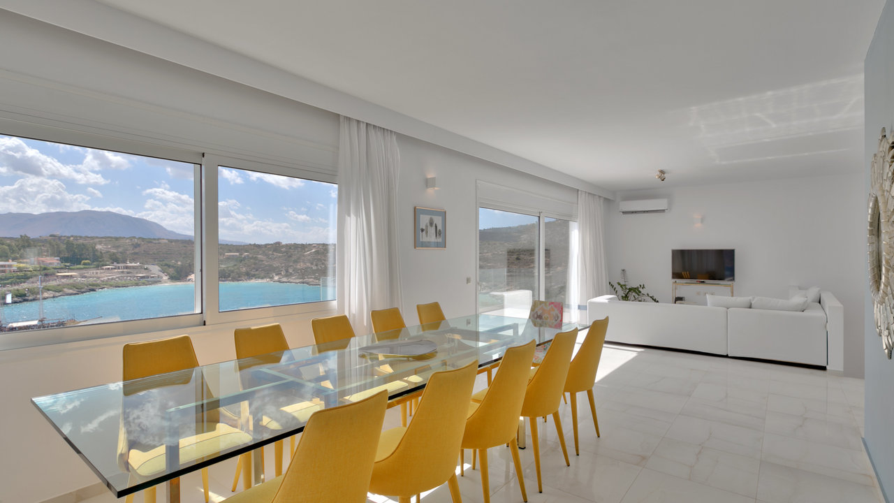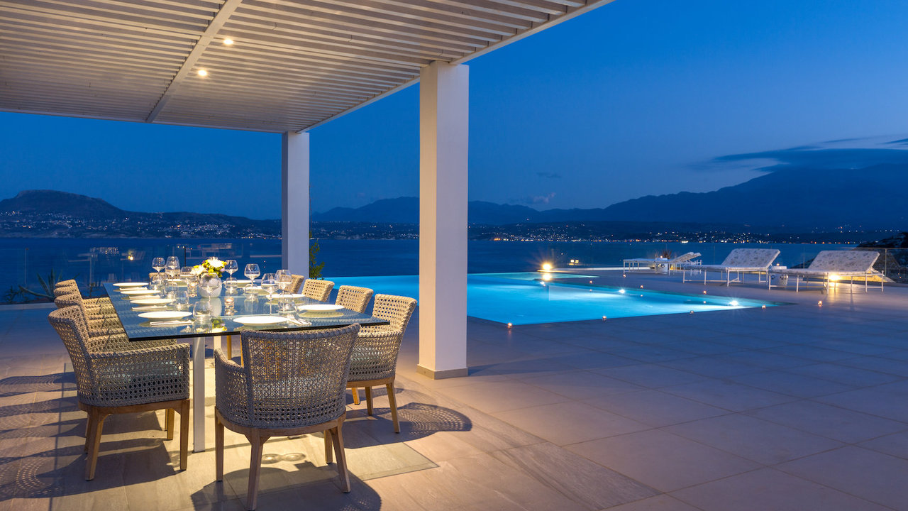 The outdoor area is featuring courtyard with a big dining area, a private swimming pool with jacuzzi and breathtaking sea views.