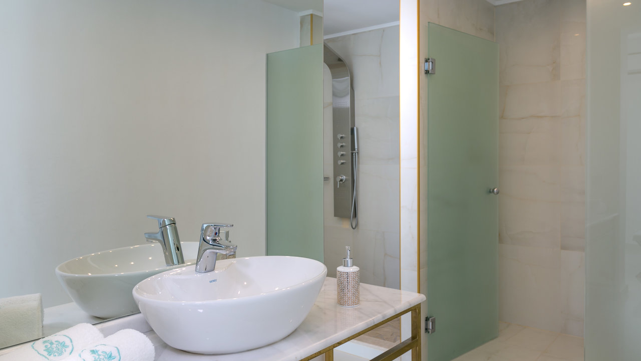 Six bedrooms, 2 with double bed and 4 with two attached twin beds, and six en-suite bathrooms with jacuzzi shower.