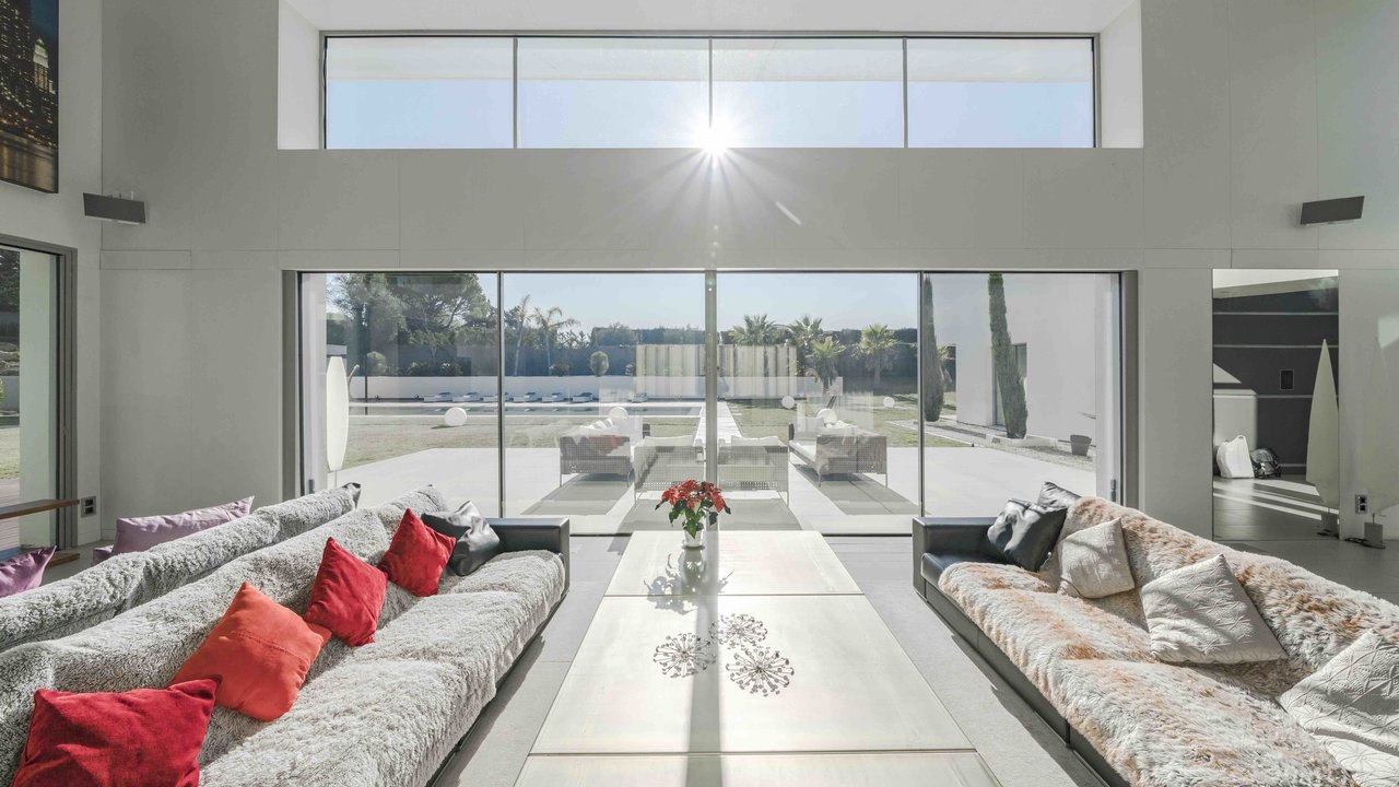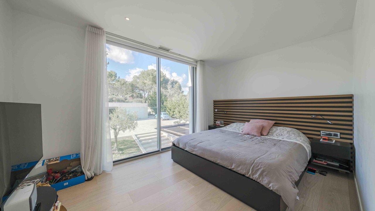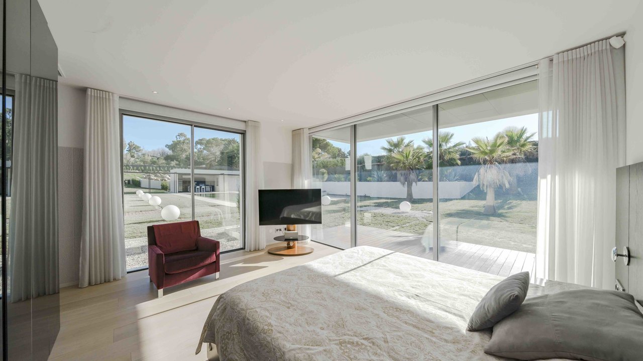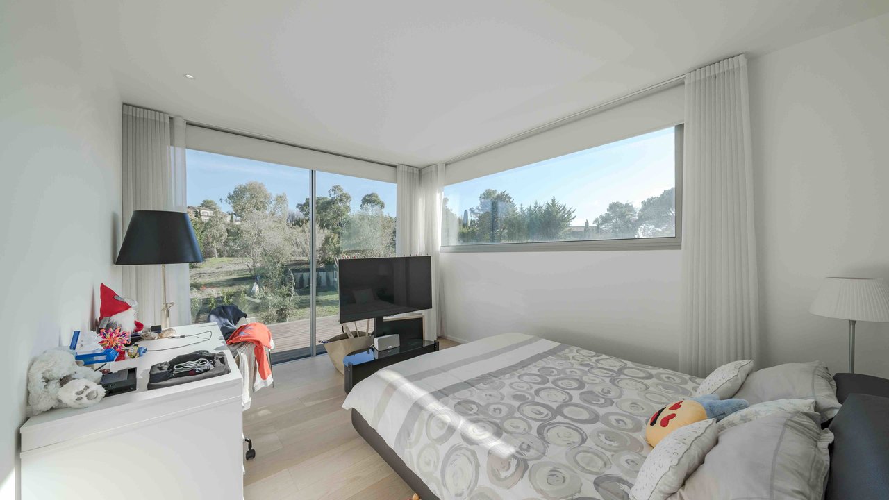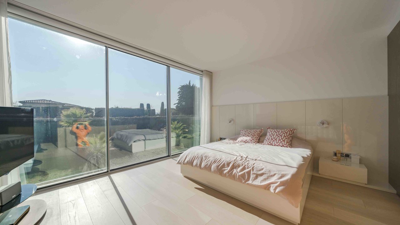 It is situated very close to Cannes and it can house up to 10 guests in 5 ample bedrooms, with walls fitted with large windows for you to gaze the greenery and invite the sunlight inside.