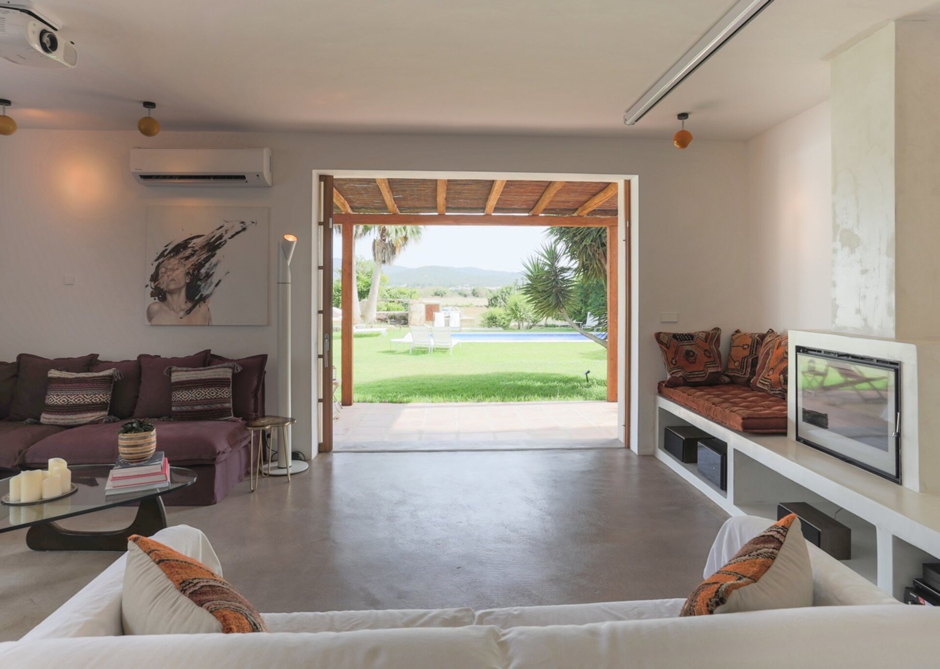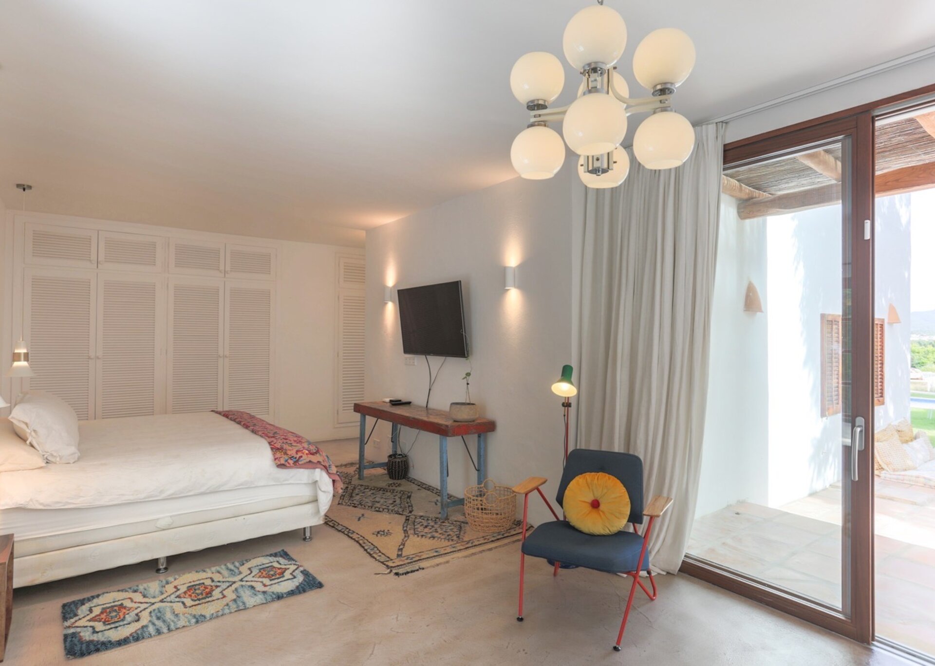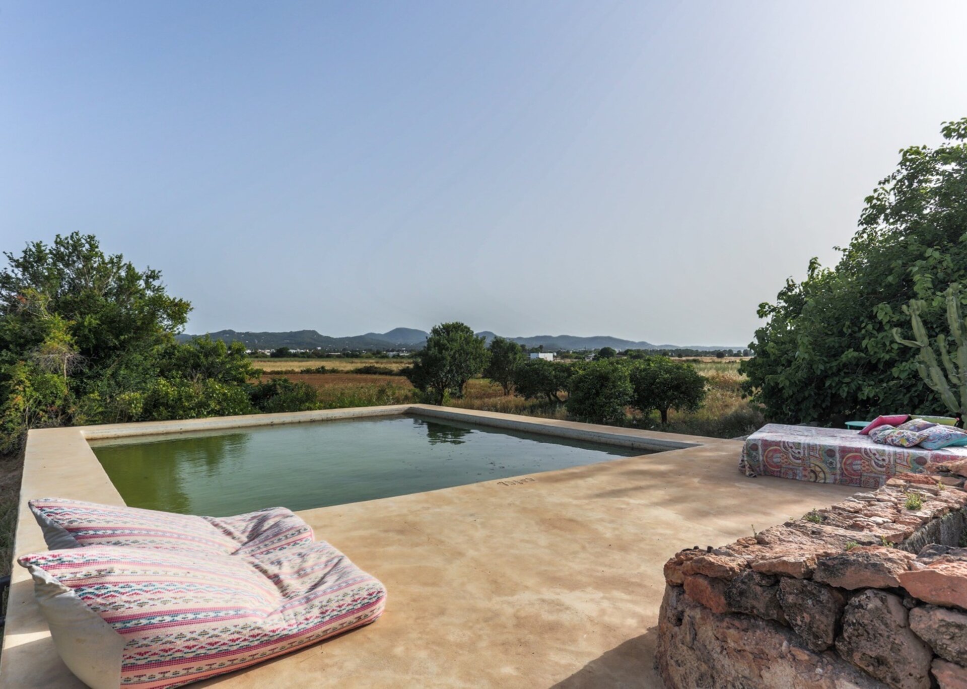 The secluded yet central location of the property makes it an ideal base for exploring the enchanting western region of the island, including the charming village of San Agnes, renowned sunset spots in San Antonio, and beautiful beaches that are a mere 10-minute drive away, such as Cala Salada, Cala Gracioneta, Port des Torrent, and Cala Bassa.