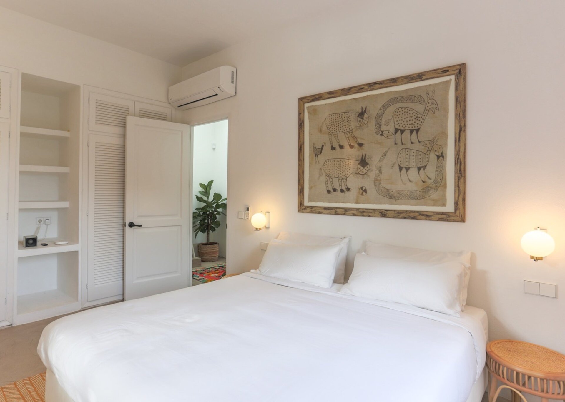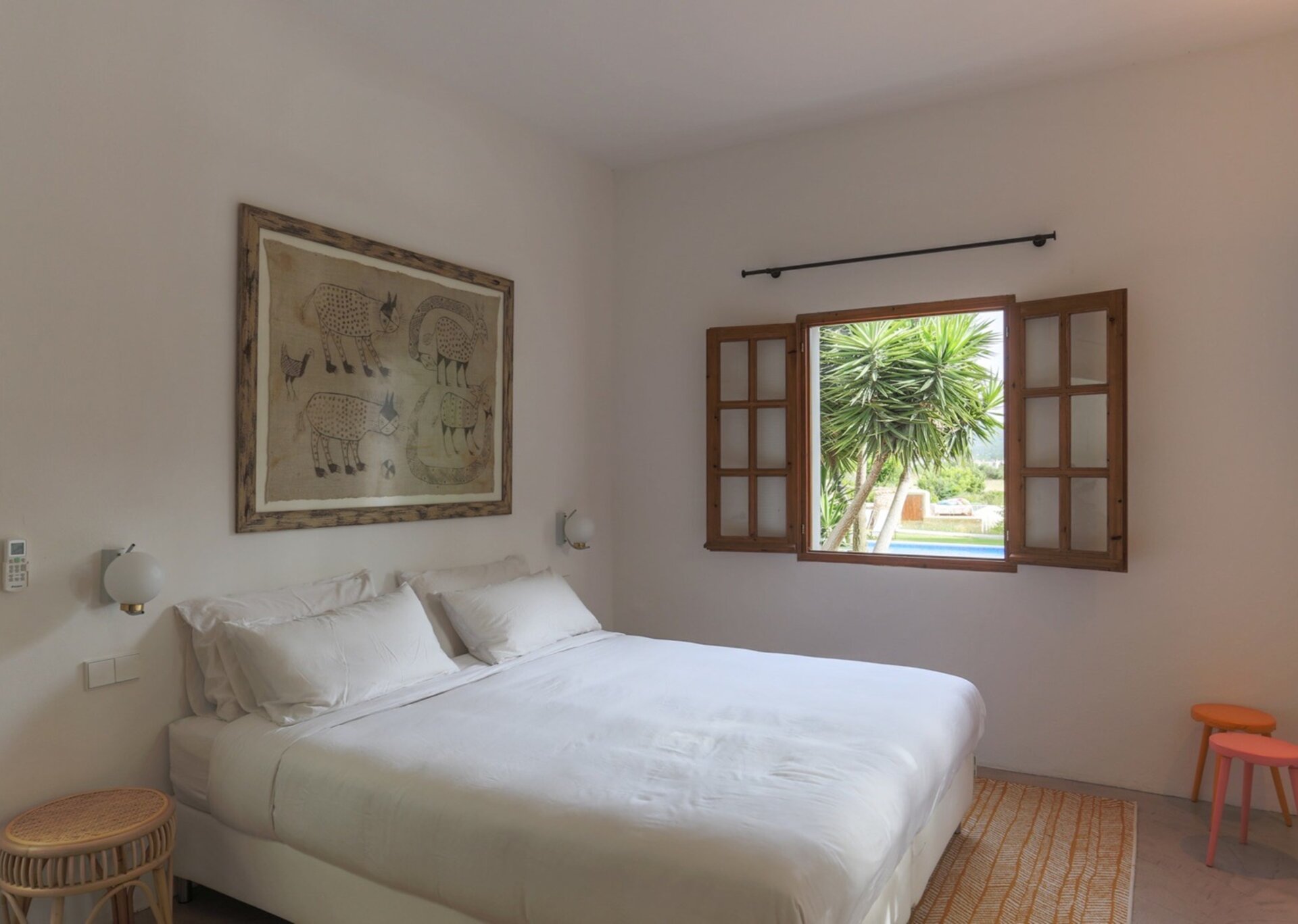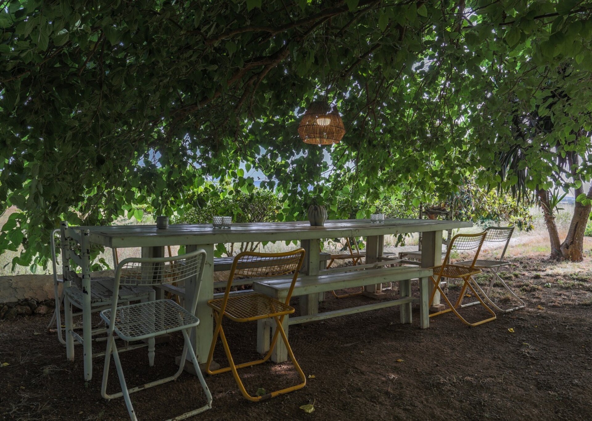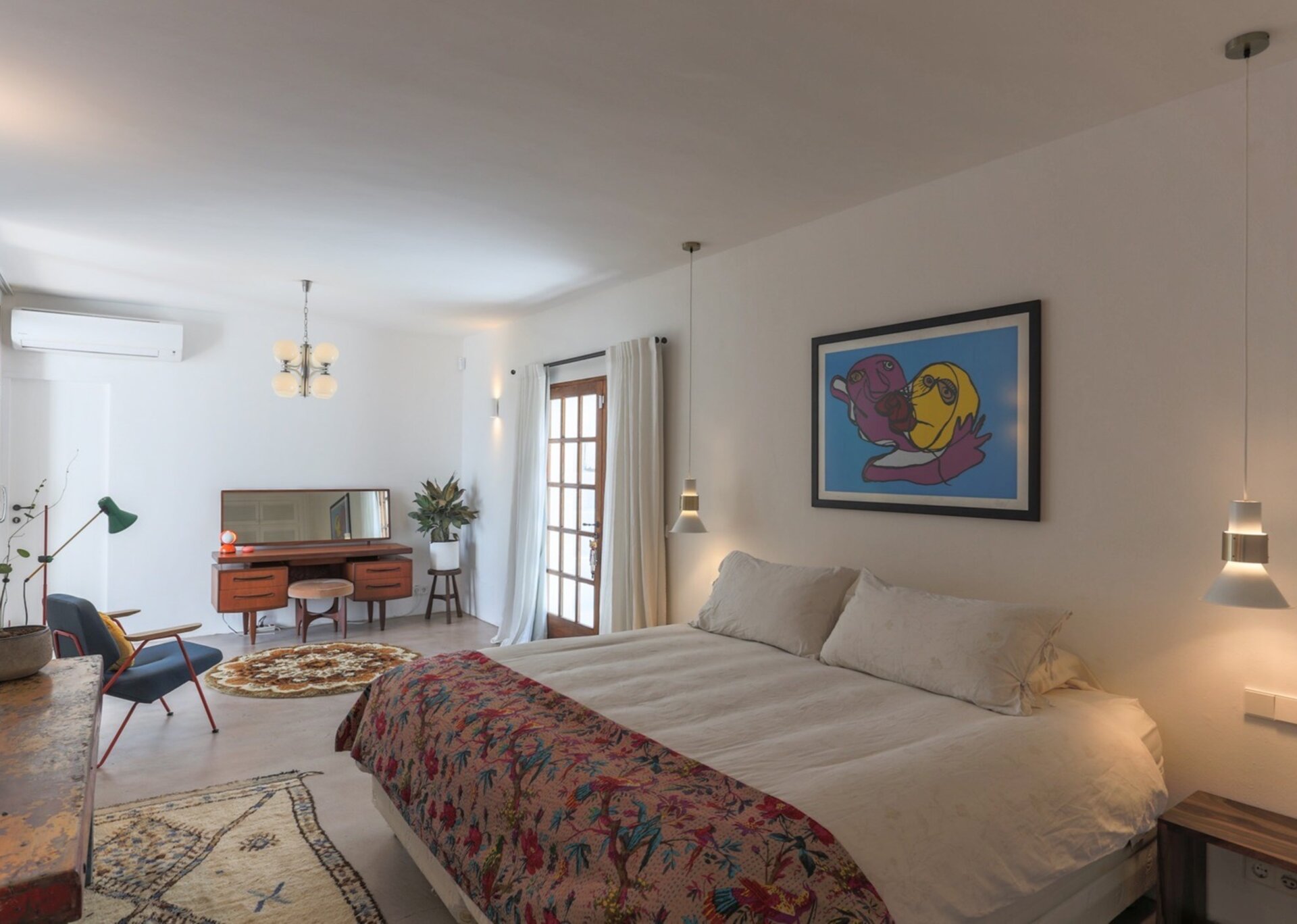 The secluded yet central location of the property makes it an ideal base for exploring the enchanting western region of the island, including the charming village of San Agnes, renowned sunset spots in San Antonio, and beautiful beaches that are a mere 10-minute drive away, such as Cala Salada, Cala Gracioneta, Port des Torrent, and Cala Bassa.