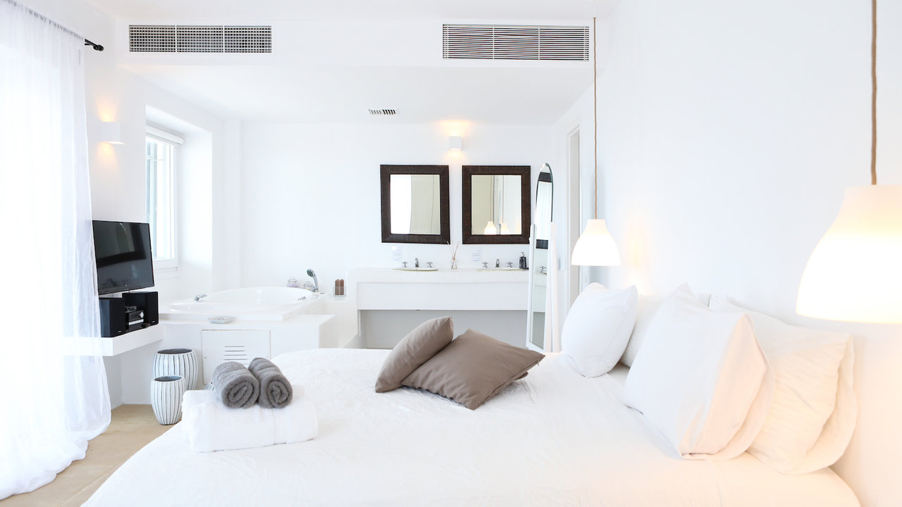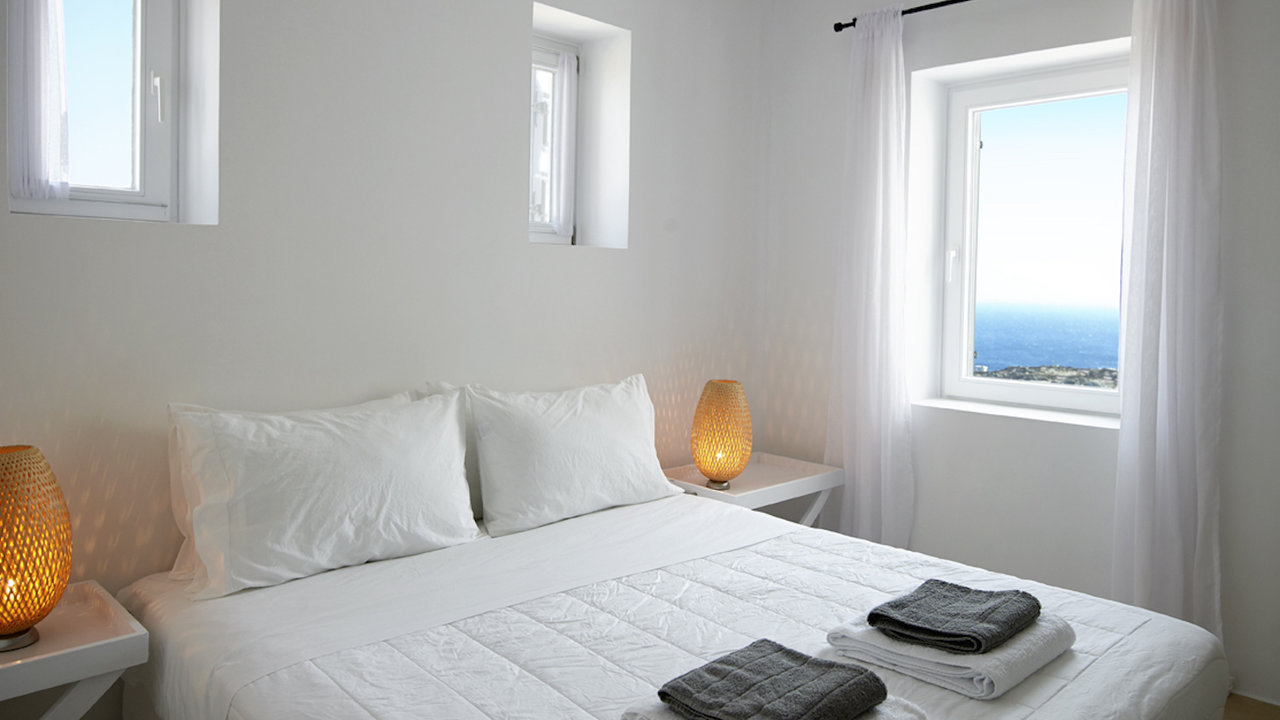 - 1 Bedroom with a double bed, A/C system, en-suite bathroom with shower, big window with an amazing sea view.