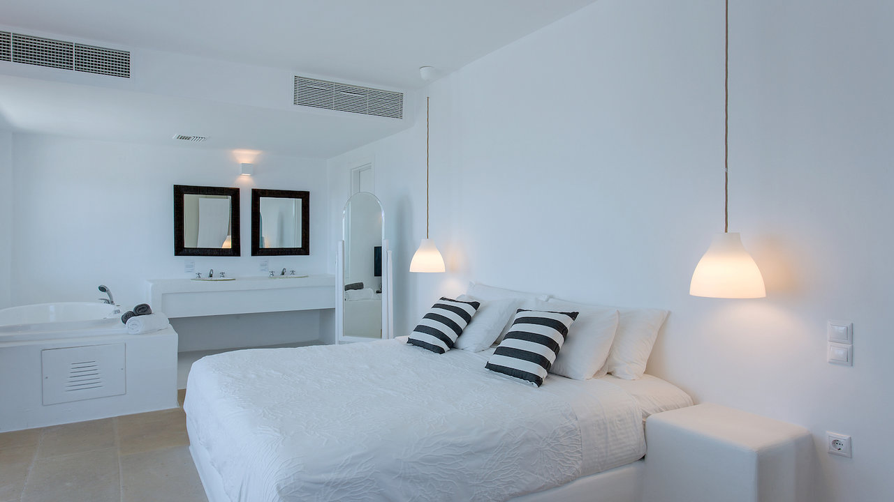 As you step into this enchanting villa, you'll immediately be greeted by its traditional Mykonian architecture and dashing outdoor terraces. Imagine lounging by the large infinity pool with sunbeds, or enjoying a delightful meal at the immense outdoor dining and lounging area with a fully stocked bar. Take a moment to relax and soak in the serene surroundings while unwinding in the outdoor Jacuzzi or curling up in the cozy hammock, all while facing the incredible sea views.