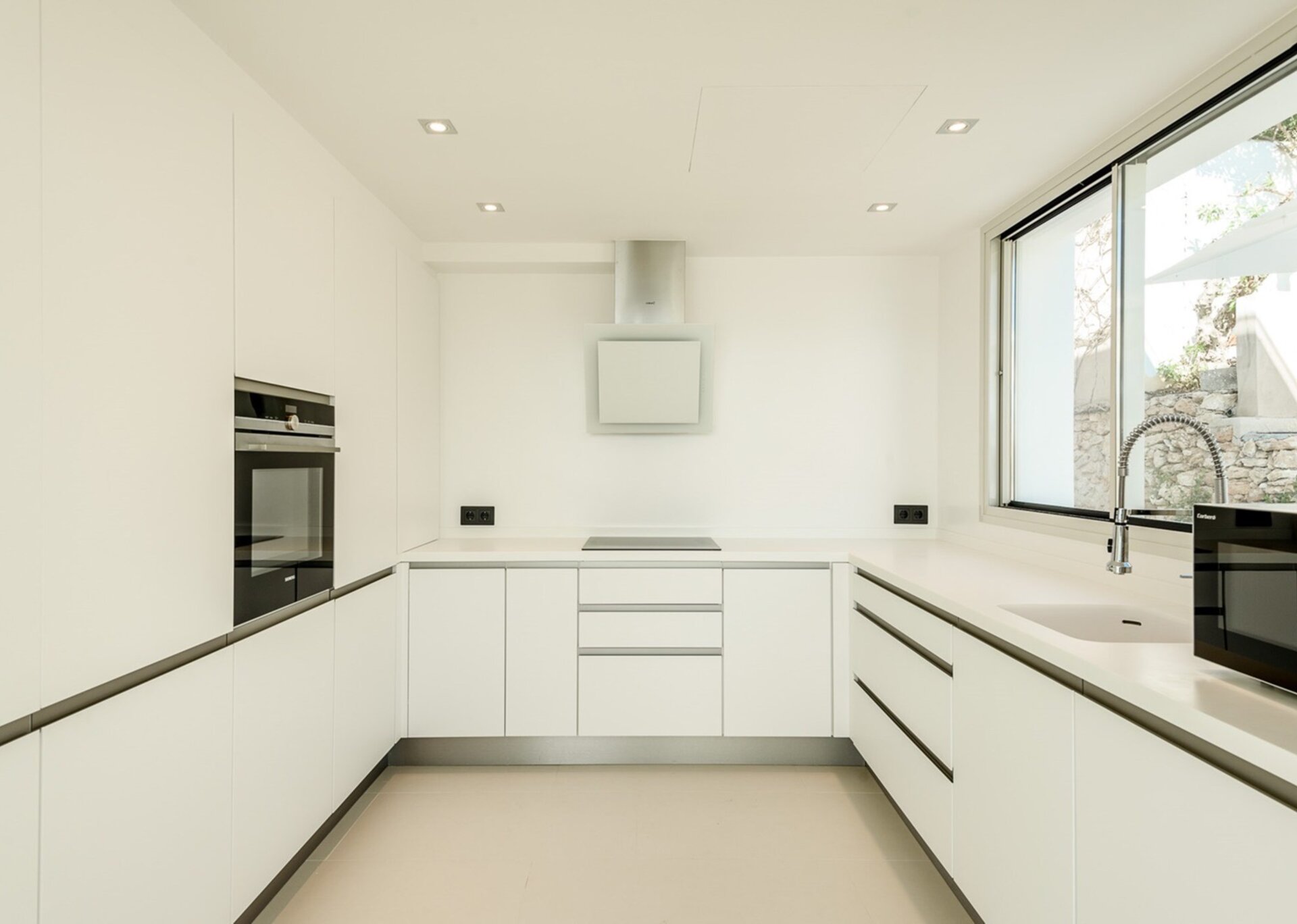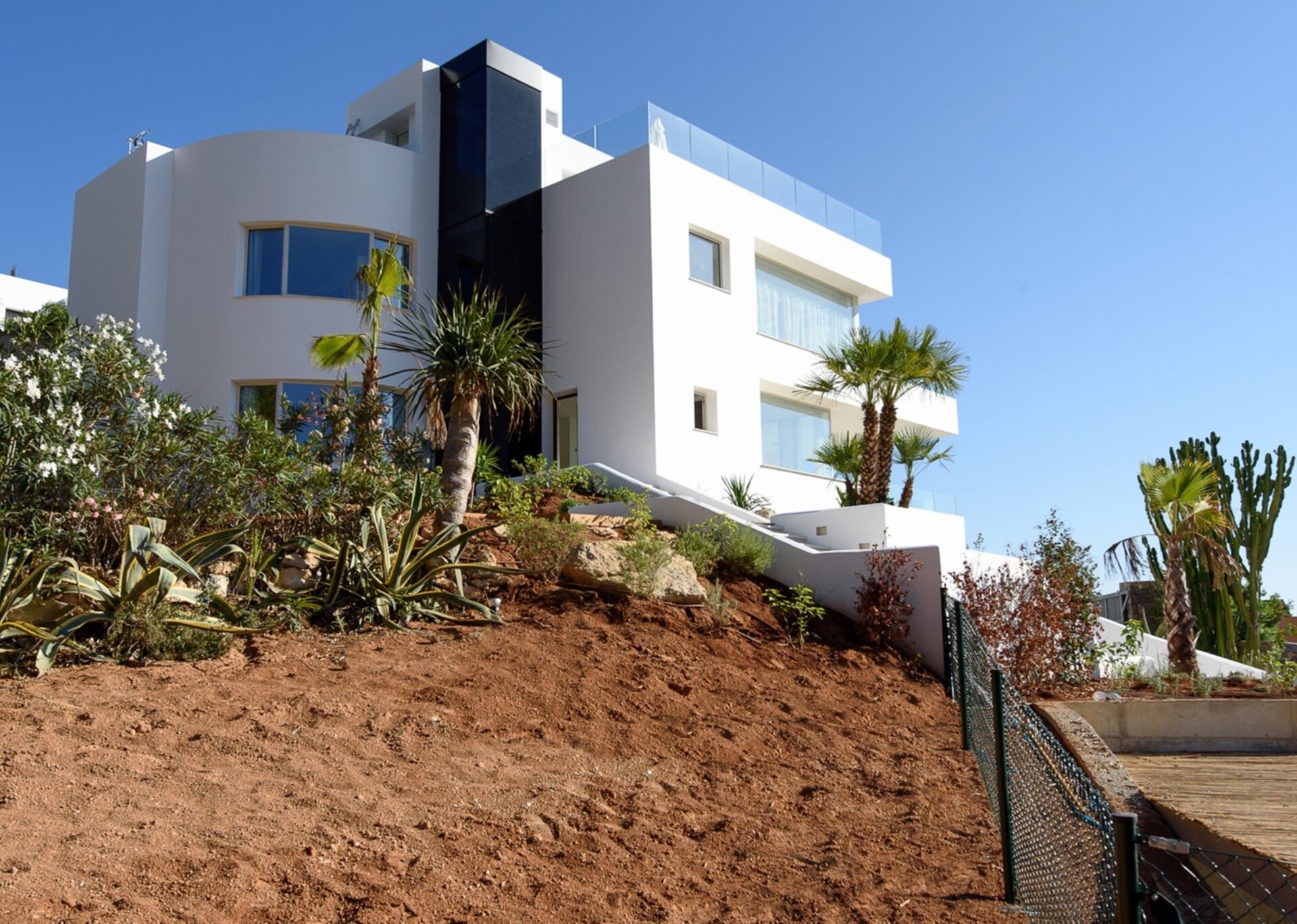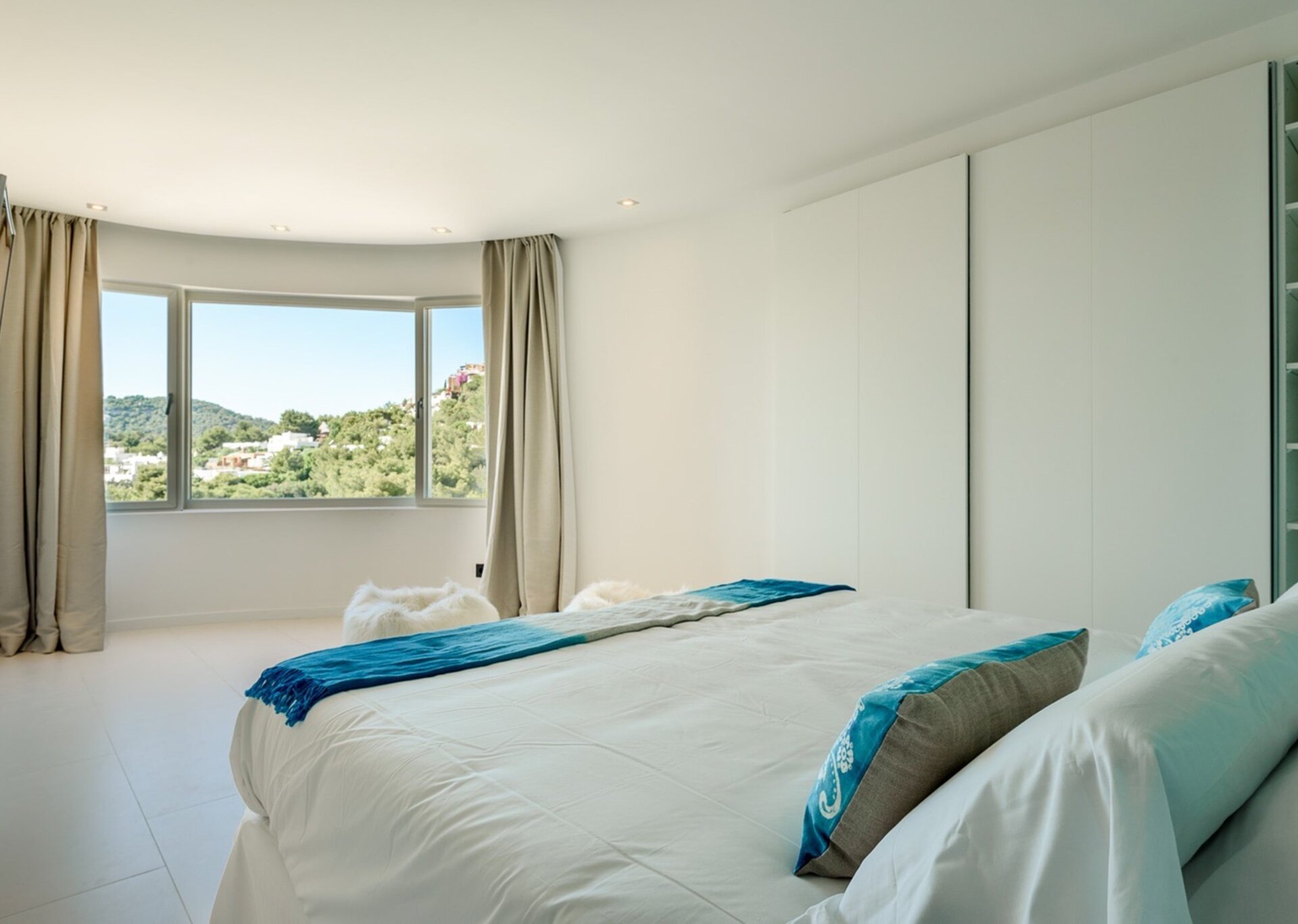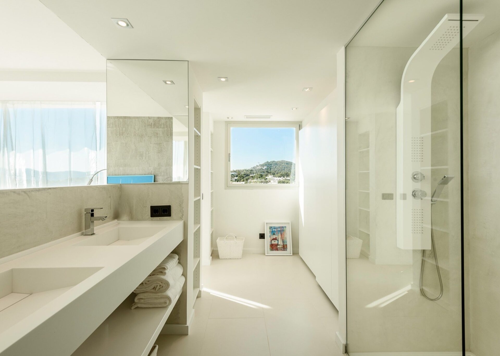 Villa Matilda rests atop the hill Can Pep Simo / Cap Martinet, just a short distance from Ibiza's vibrant Marina Botafoch and the renowned nightclubs Lio, Pacha, and Heart. This exquisite property seamlessly melds classic, minimalistic design with top-tier amenities, offering an unparalleled view of Ibiza's enchanting sunlight, the sea, the stunning bay of Talamanca, and breathtaking sunsets that grace each day at Villa Matilda. Ride the elevator to your private 360° rooftop terrace and witness the sun's gentle descent into dusk—an exquisite experience that epitomizes the allure of Ibiza. And with your own Sky Bar, sundowners come effortlessly. Villa Matilda, situated in a prime location, has already played host to esteemed international celebrities who have found complete fulfillment in every aspect. Stepping foot into the elegant, three-story, white villa, attention is instantly drawn to the masterfully framed bay view, which stretches all the way to Ibiza's historic Dalt Vila.