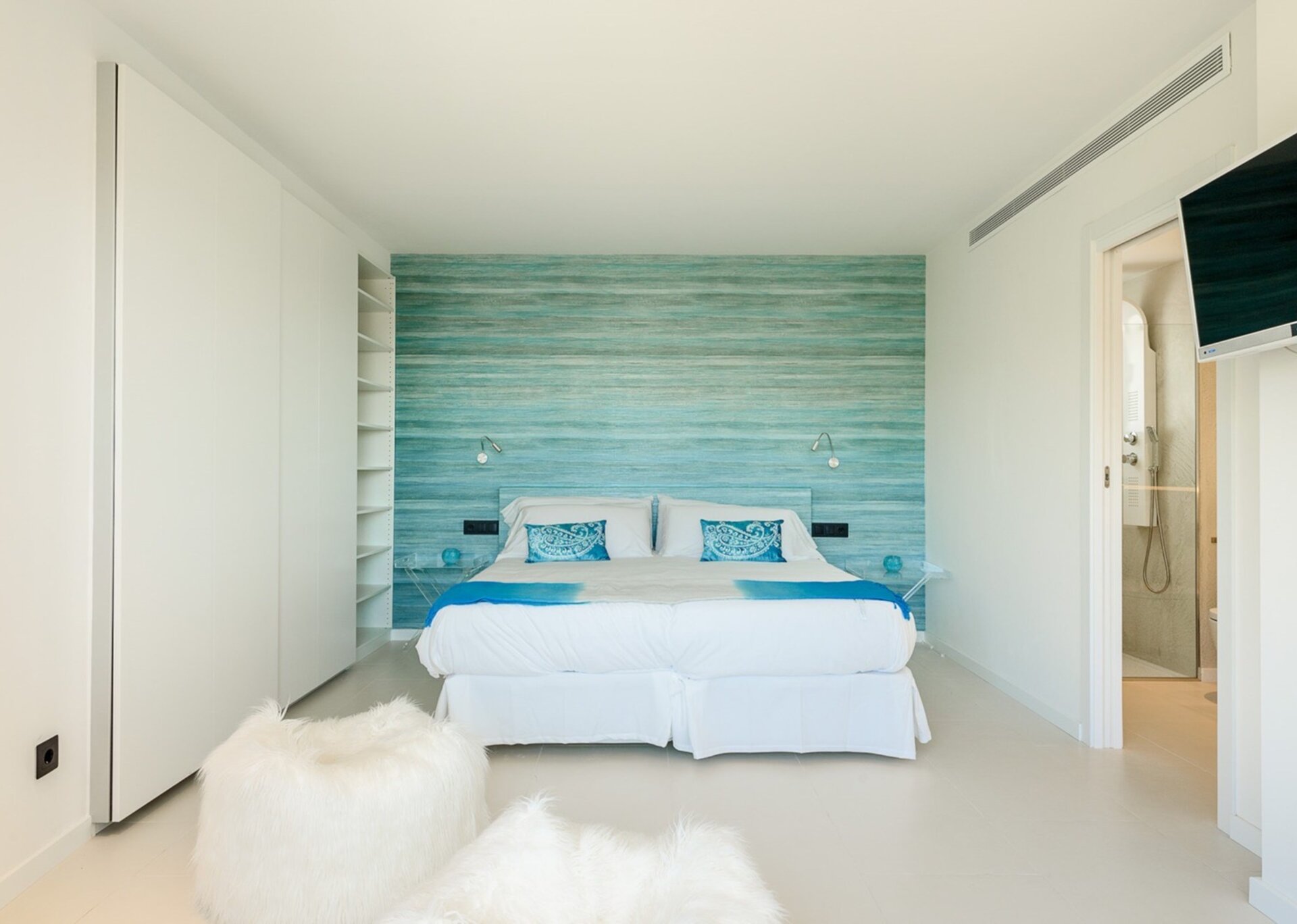The outdoor area beckons you to take a refreshing dip in the pool or unwind on the multitude of sun loungers, terraces, and chill-out spaces. Villa Matilda accommodates up to eight people with its four deluxe bedrooms, all boasting en-suite bathrooms, smart TVs, LED color lighting, and dressing areas. The two master suites feature freestanding bathtubs, open bathrooms, and access to a private sunset terrace.