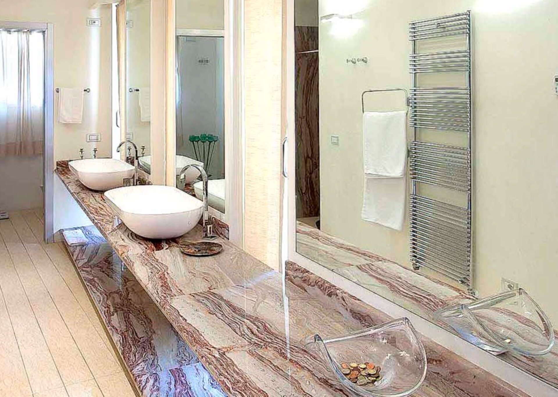 Tower House: double bedroom en suite bathroom (shower) with private terrace.