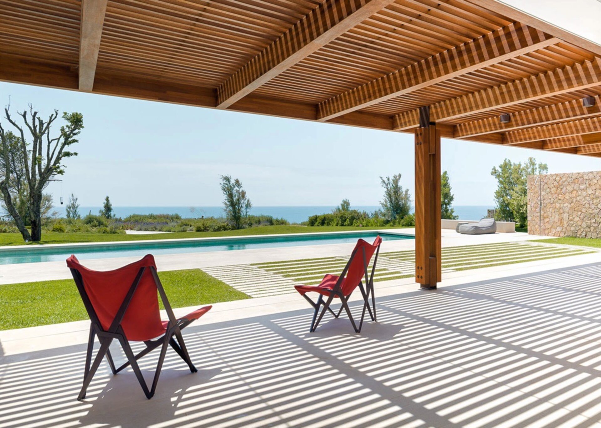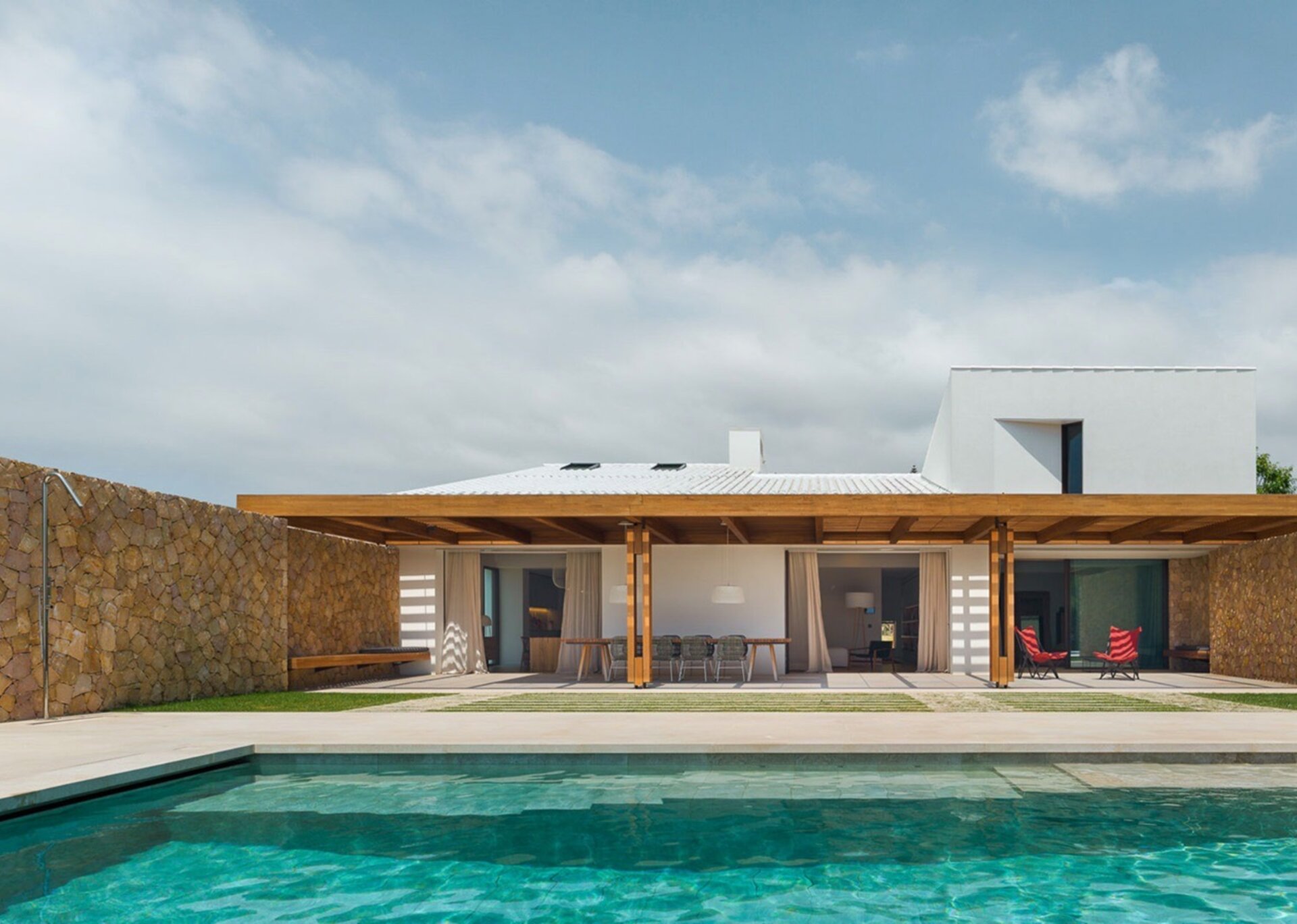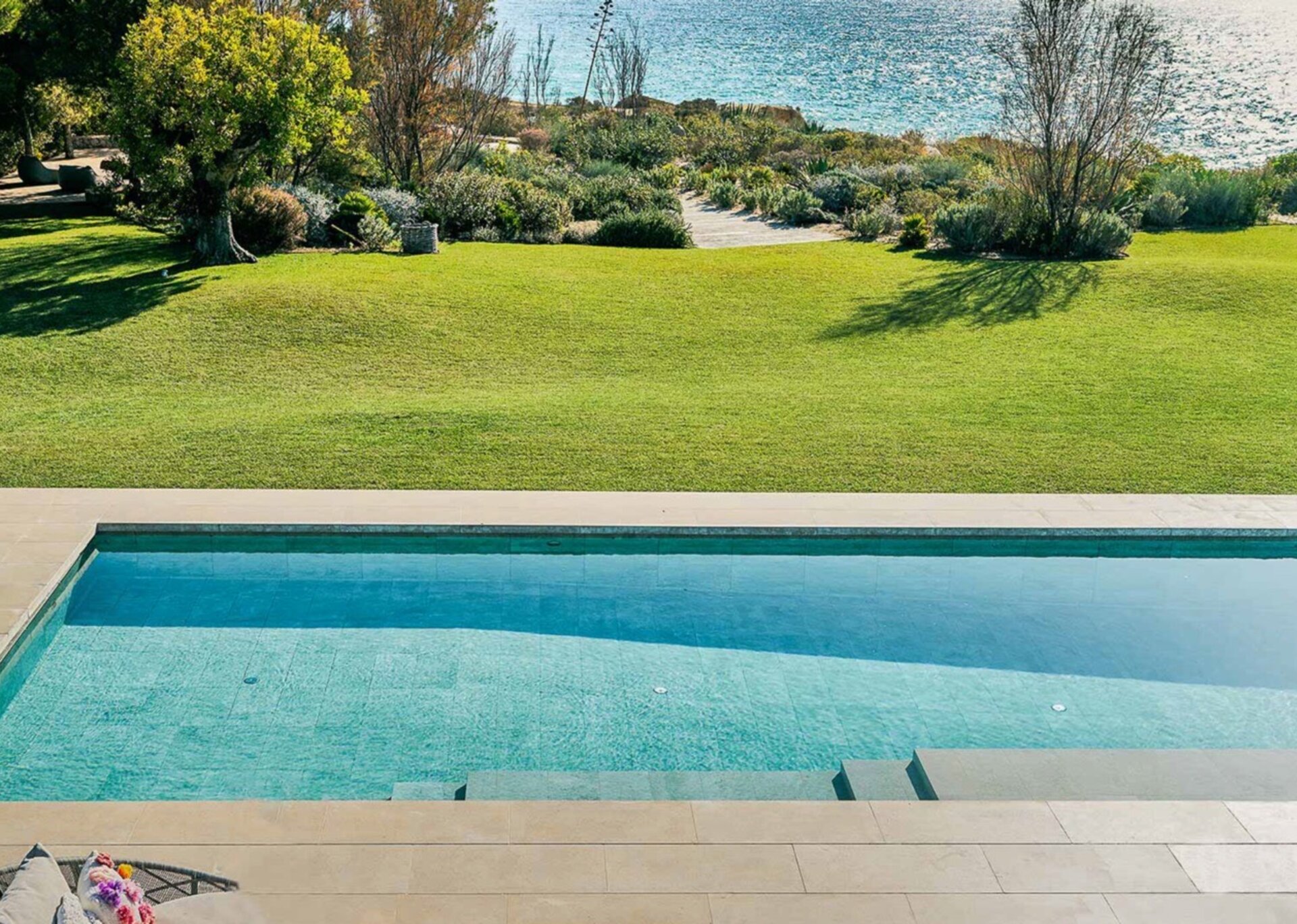 More than a visual treat, the property's garden is a rejuvenating oasis. The thoughtful landscaping mirrors the region's dune-like topography and extends beyond the inviting pool. The landscaped shrubs provide privacy and conceal the garden end, where the beach is accessible via the coastal path.