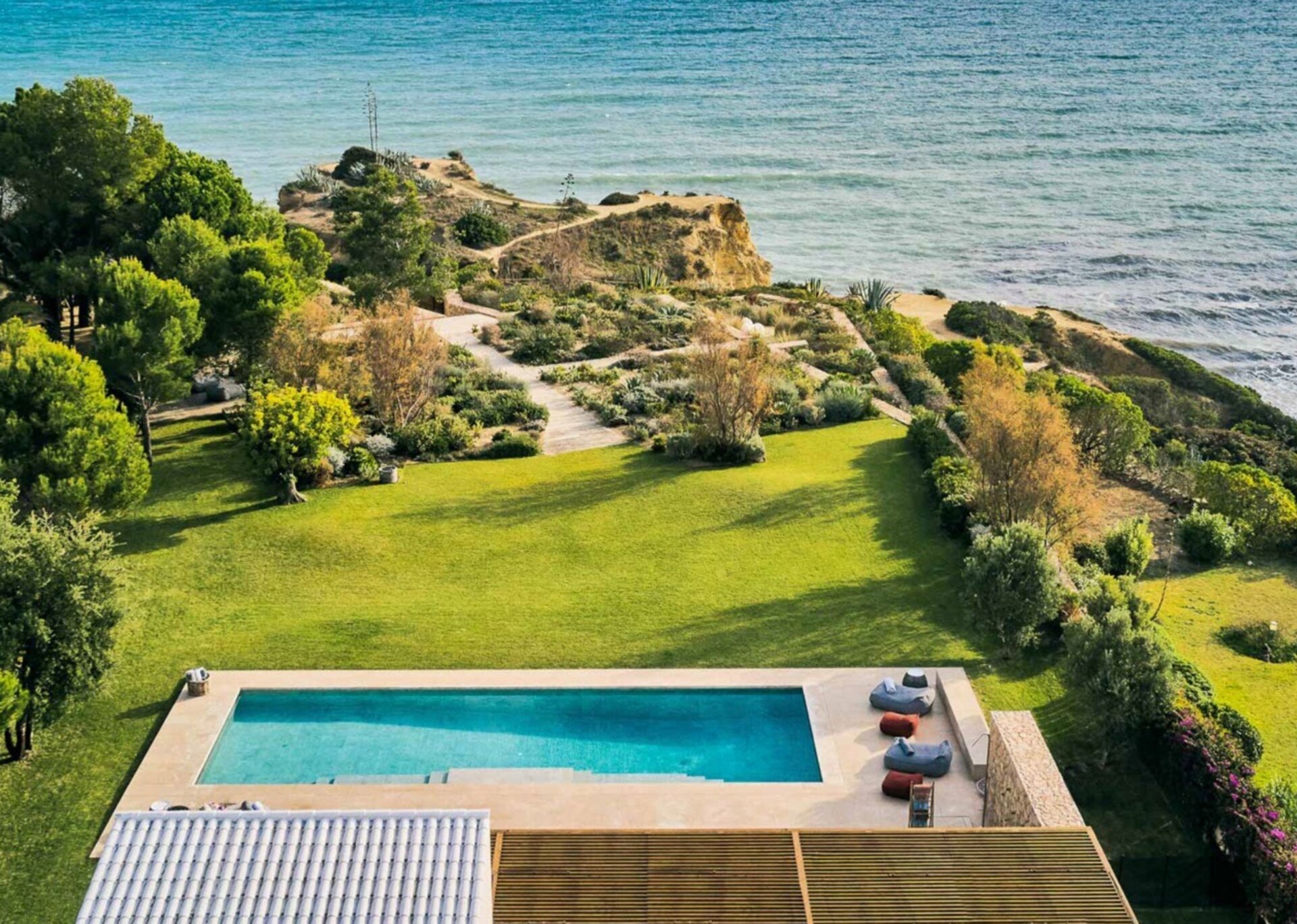 Perched atop the cliffs of Algarve, this contemporary stunner boasts mesmerising views and direct access to Praia dos Beijinhos and Praia do Vale do Olival beaches via a scenic coastal path. Nestled in a peaceful neighbourhood, revel in modern amenities and serene environs, that are increasingly hard to come by. The location is enviable, as luxury resorts dot the area and local restaurants are a stone's throw away.