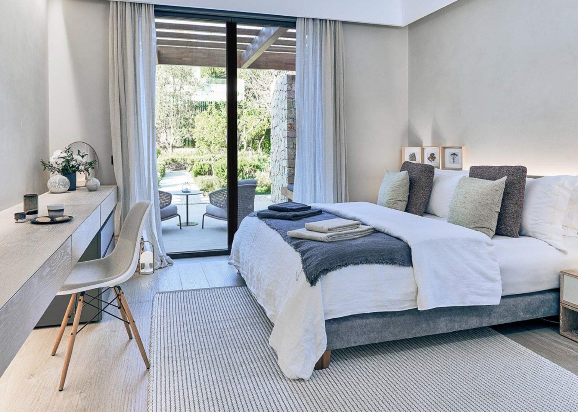 Sleeps 2 – King-size bed. Mezzanine with office. En-suite bathroom with twin vanities and large rain shower. Sliding door access to large terrace.