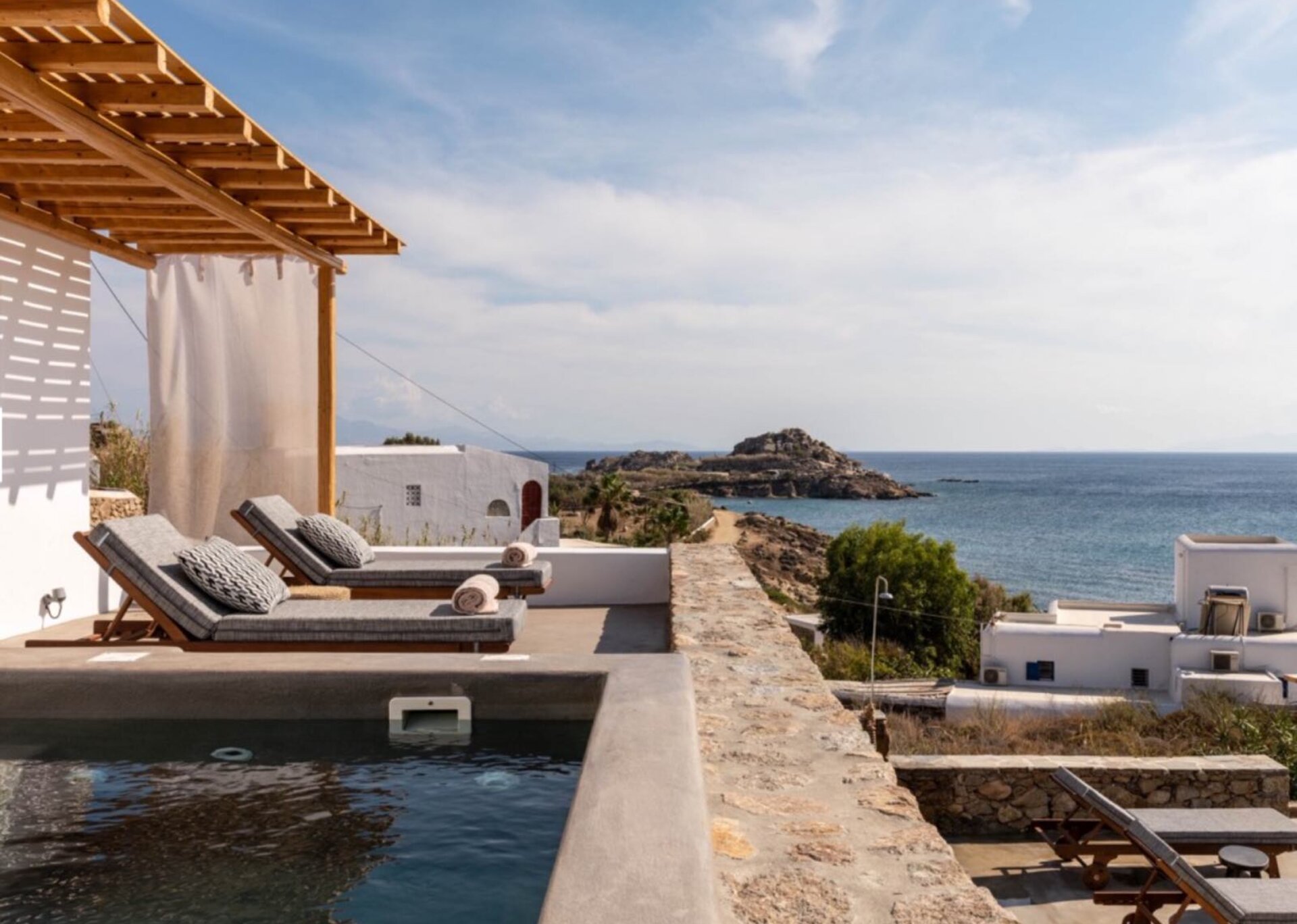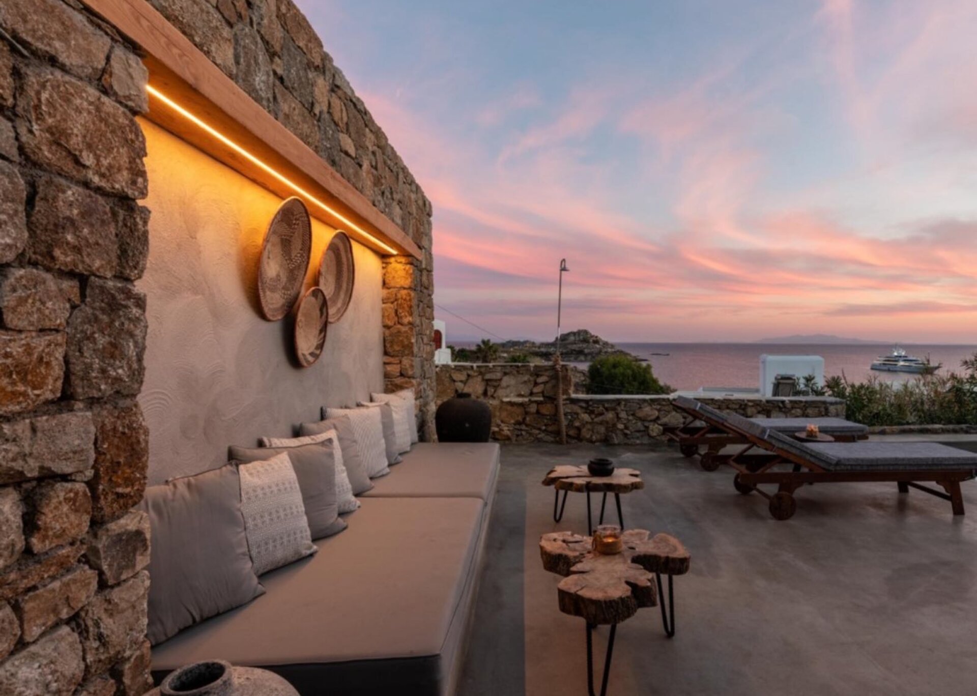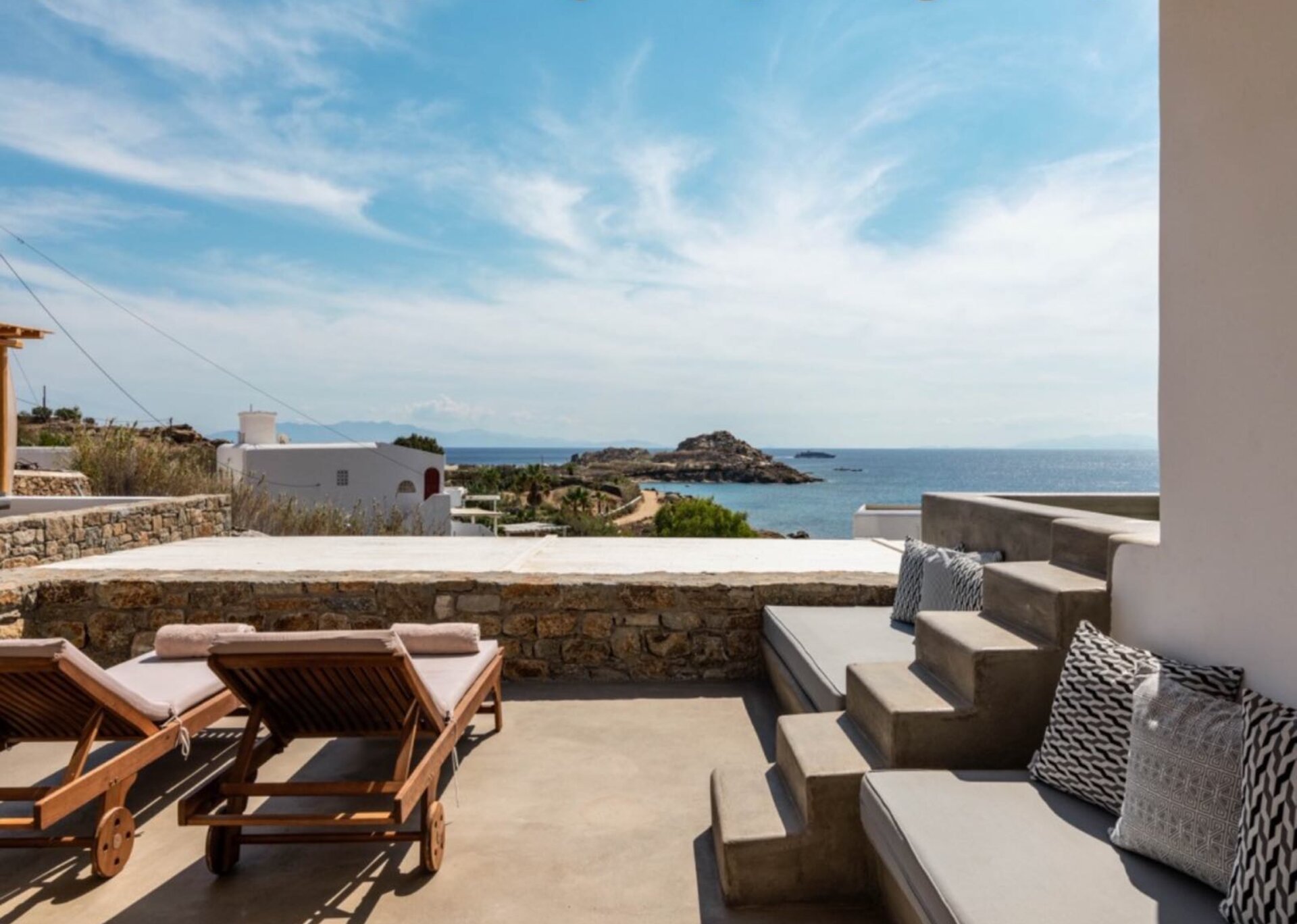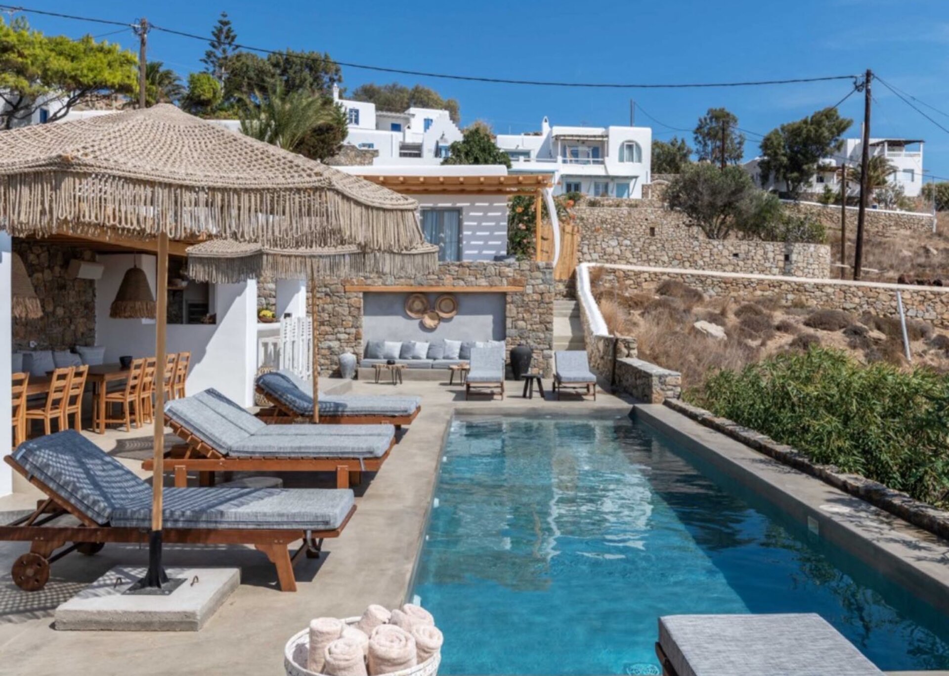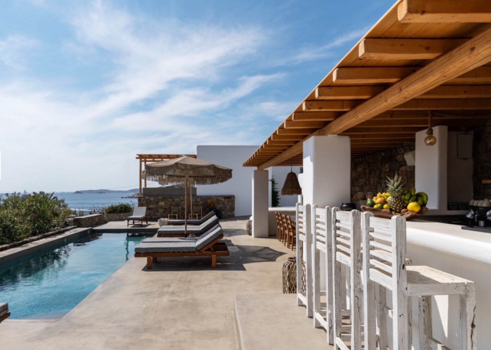 Melisanthe Mykonos is a beautiful south facing 7 double en suite bedroom villa nestled only 2min walk from one of the island’s most beautiful beaches in Platis Gialos, within walking distance of Scorpios, Nammos, Kalua, Santanna, Soho House Rocs & Branco. It’s a superb location with enough distance from the parties and beaches to remain peaceful and private but still close enough so that you can easily walk to anywhere you want to go in the Paraga, Platis Gialos and Psarou areas. 6 of the 7 suites include a private outdoor jacuzzi on the sun soaked balconies which are perfect for cooling off in the Greek heat and for basking with cocktails in full view of Scorpios and bay of Psarou and Platis Gialos, which are a magnet for the most beautiful yachts that visit the island.