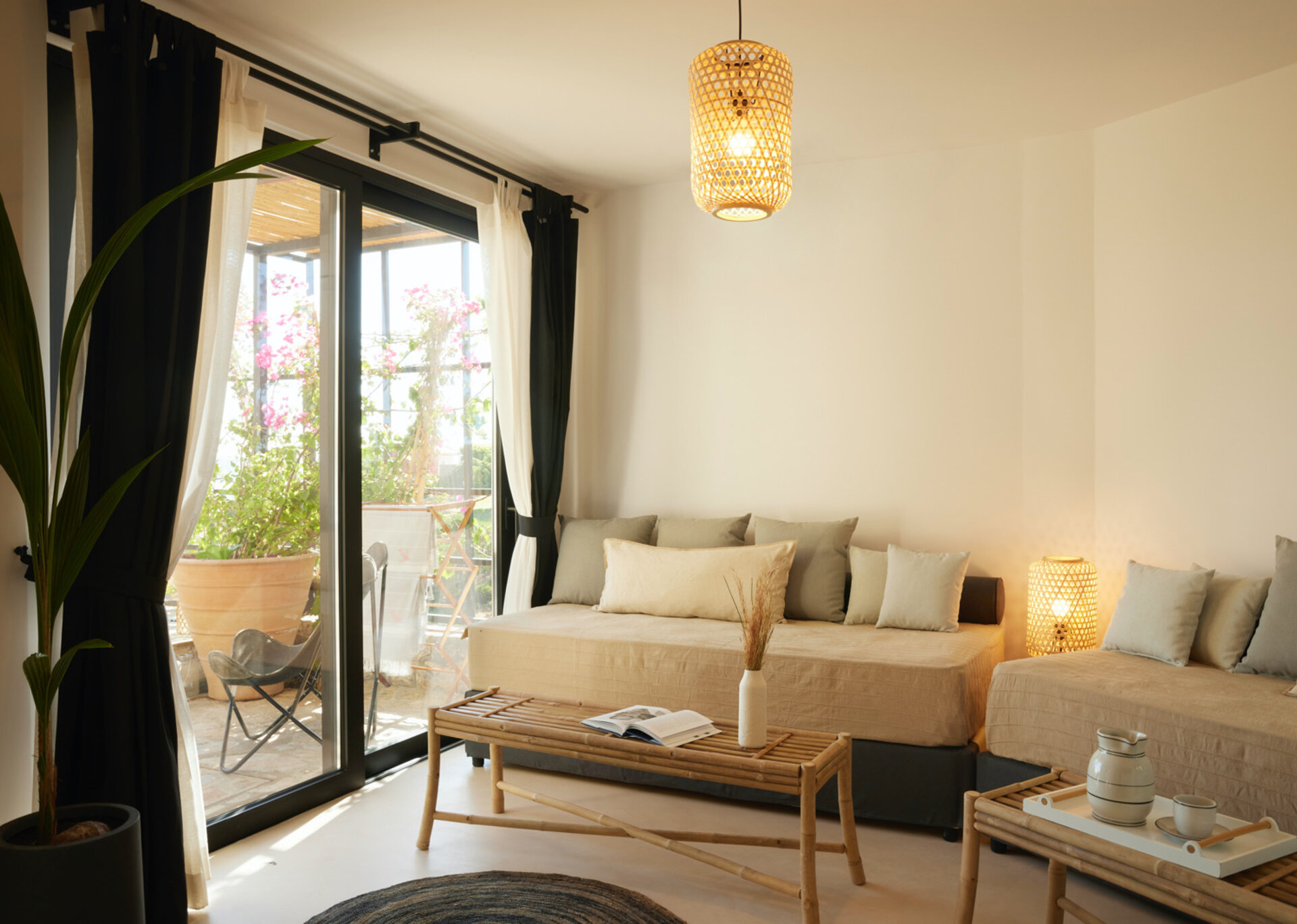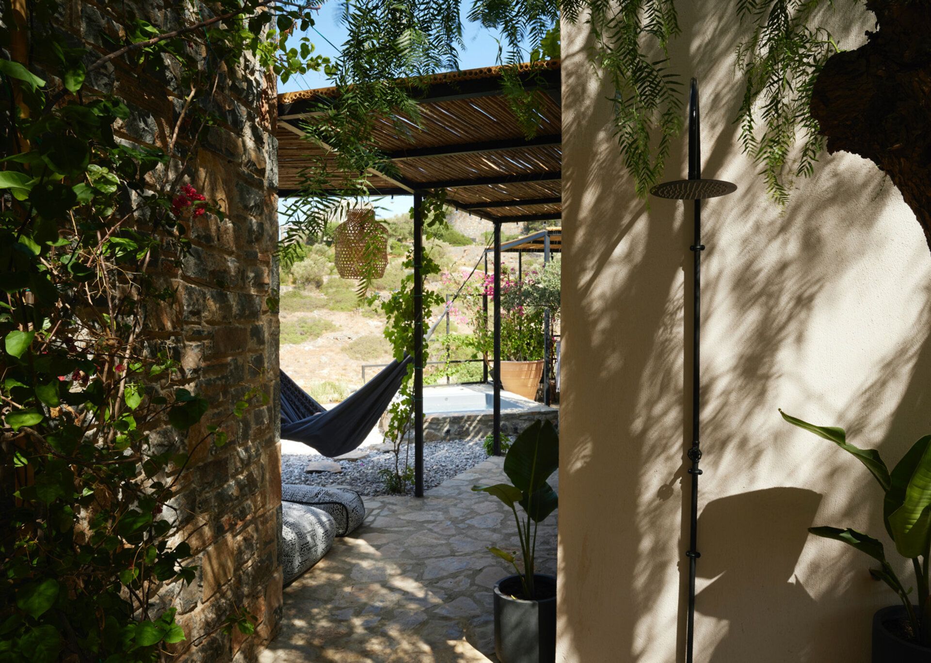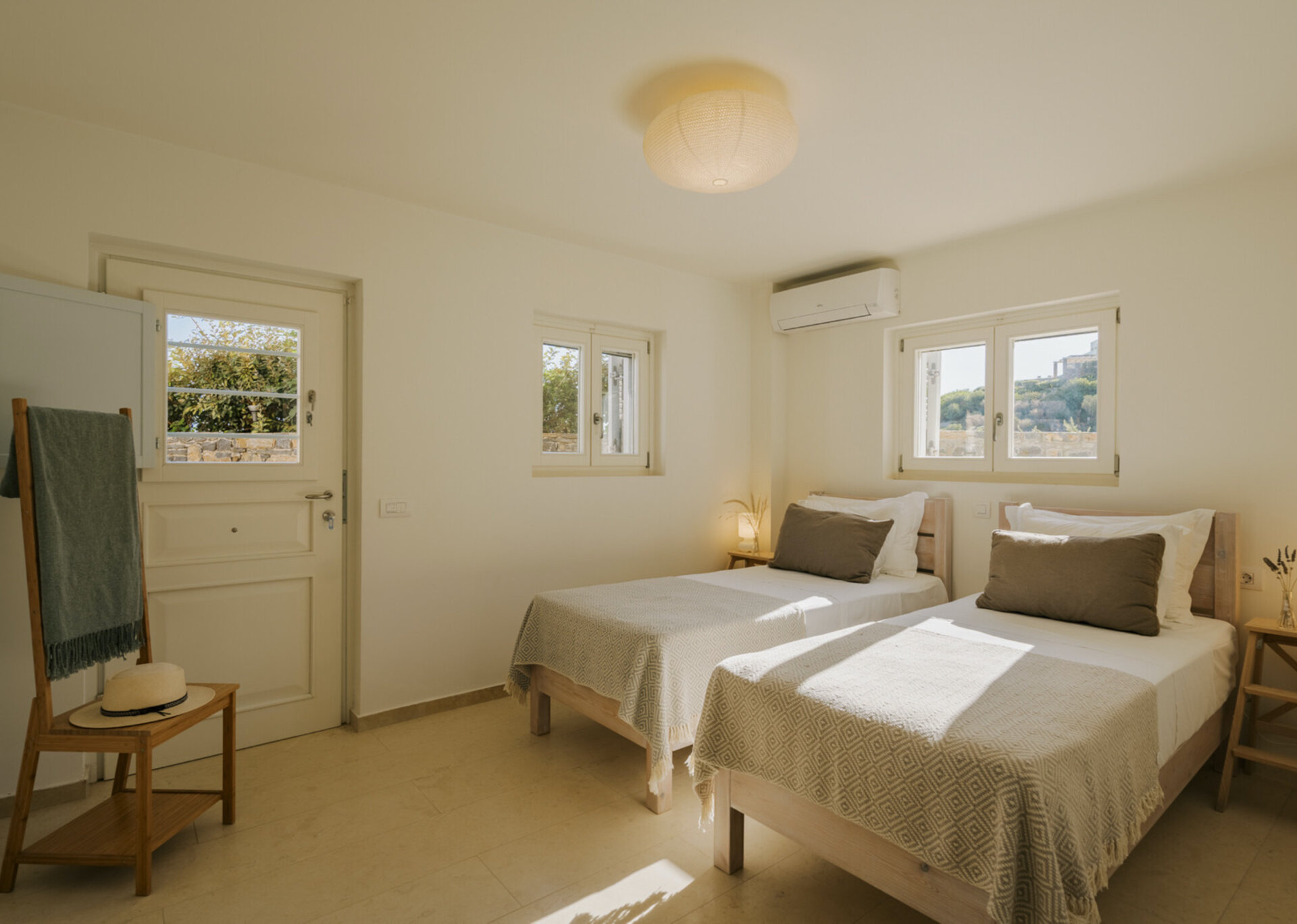 Two bedrooms, en suite, one shared kitchenette, one small private garden with Jacuzzi and it is connected to the main Villa’s pool and living areas via paved paths.