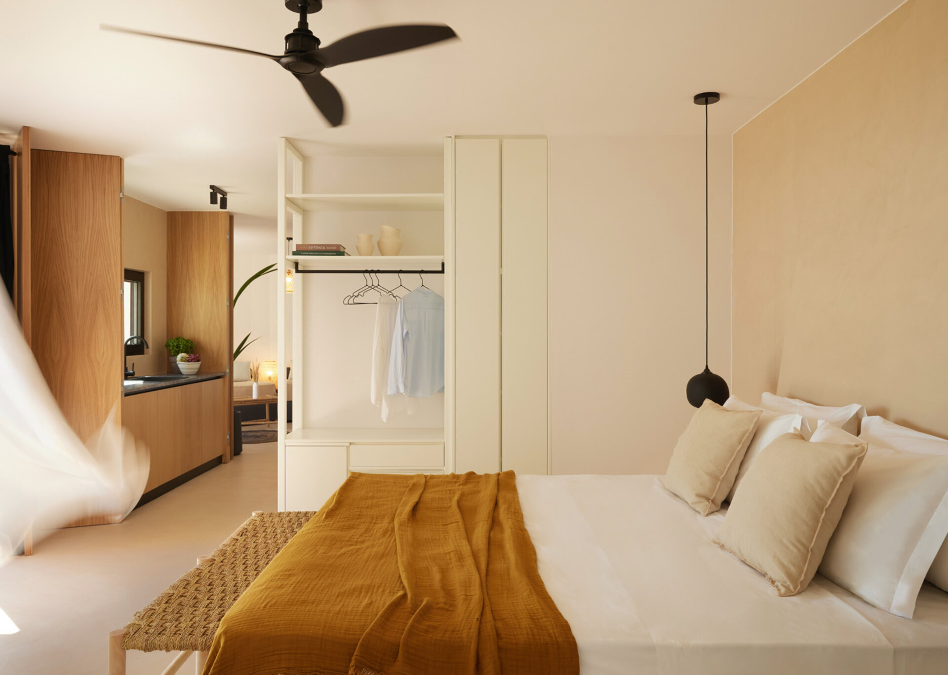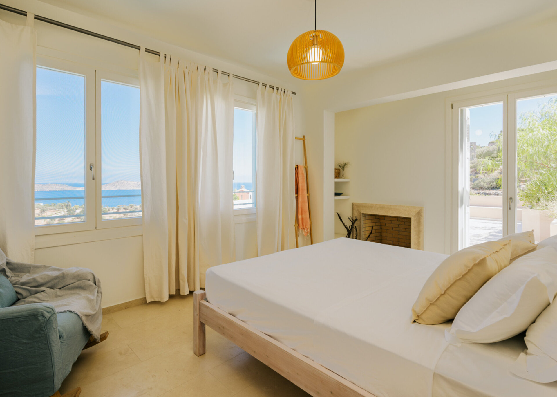 - Double room (1.60m double bed) with separate external entrance, en suite shower room, walking closet, fire place, beautiful views to the sea and private terraces with sea views