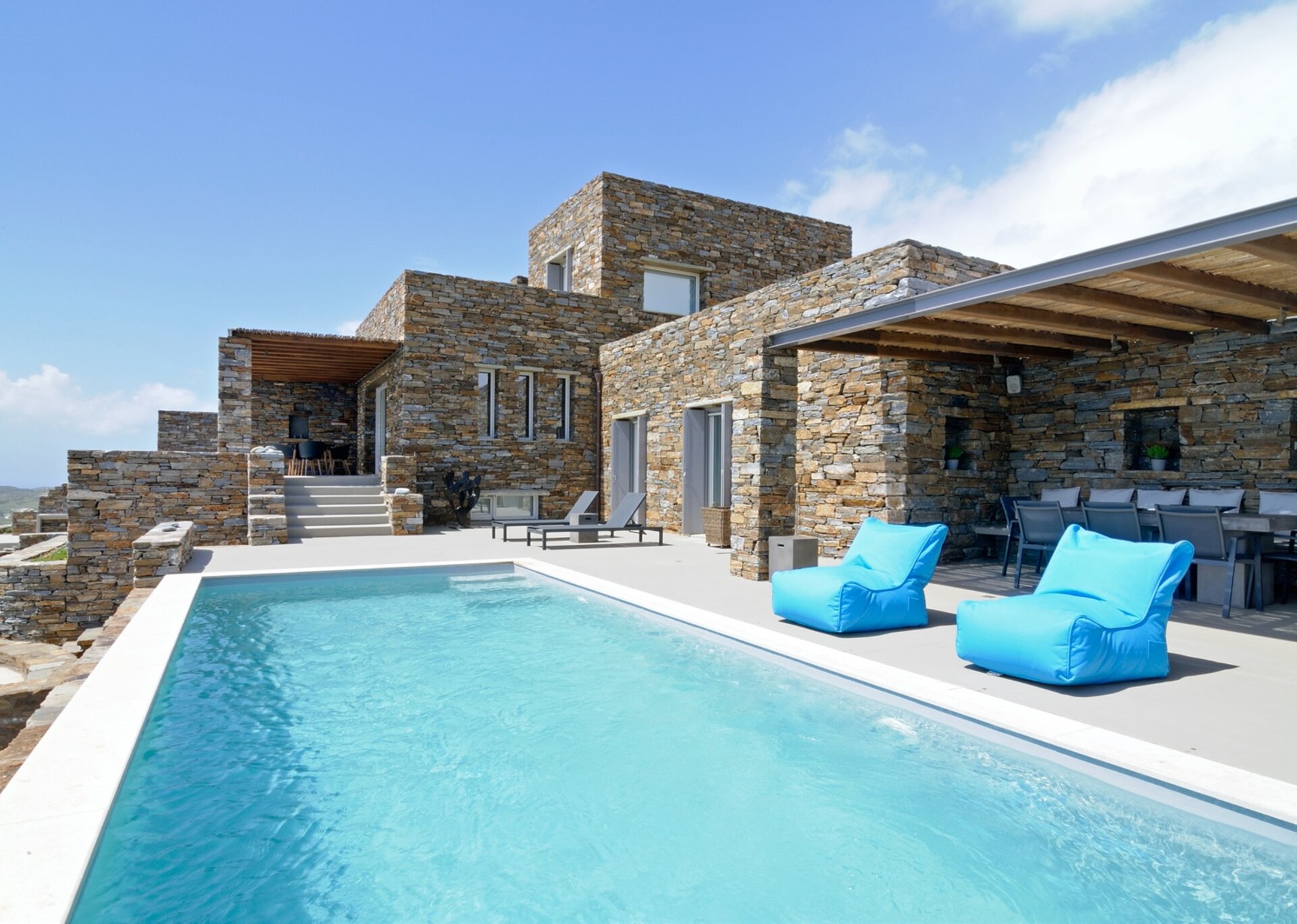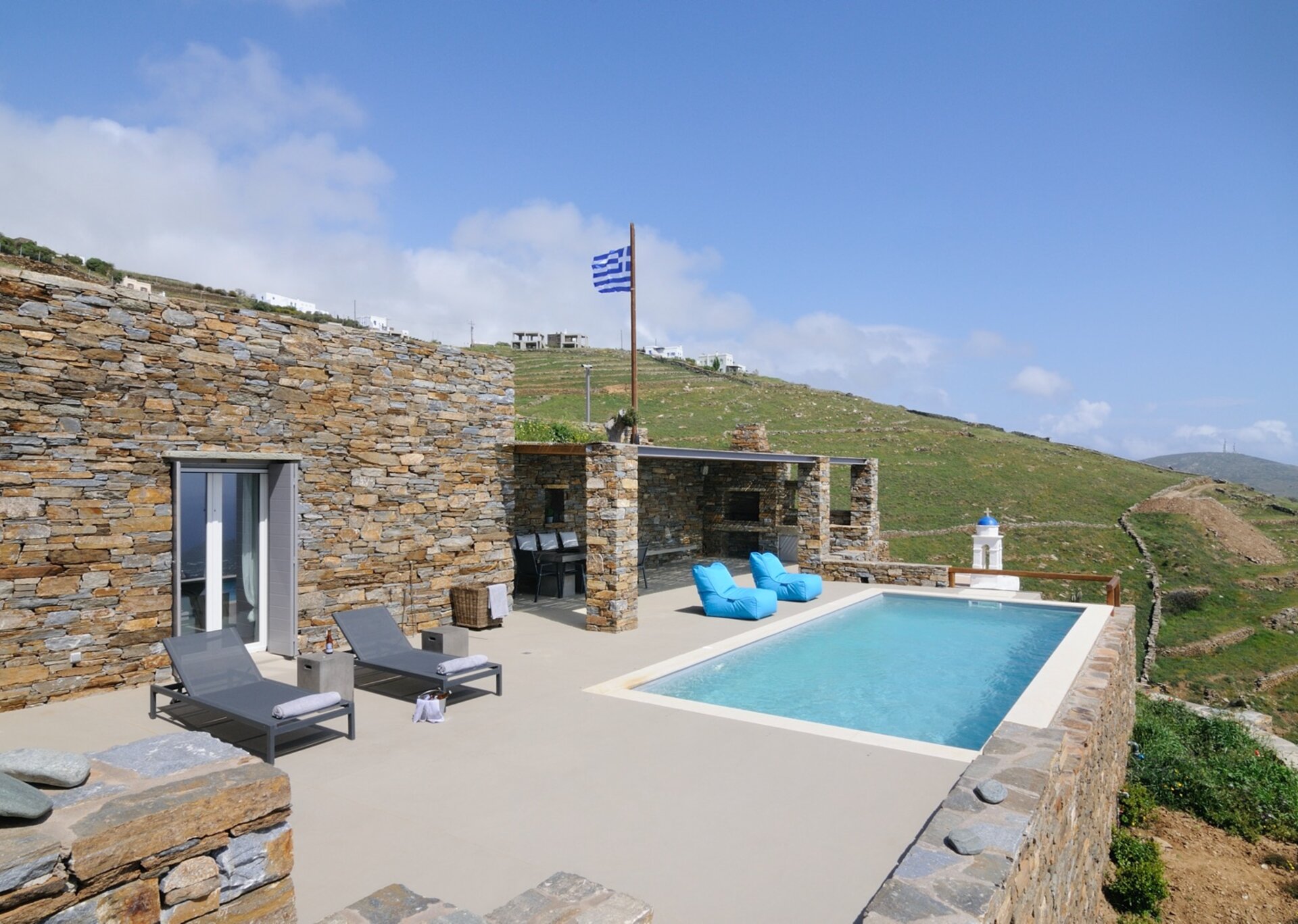 Villa Mireille, nestled on the pristine Tinos Island, is your quintessential island retreat destination. Unwind and bask in comfort in this luxurious villa that features immaculate interior design. Enjoy the fully-equipped gourmet kitchen, the cosy living room and four commodiously spacious bedrooms each with its own en-suite bathroom. The queen-size built-in double beds, wooden ceilings with ceiling fans and decor's cheerful ambiance adds to the villa's charm.