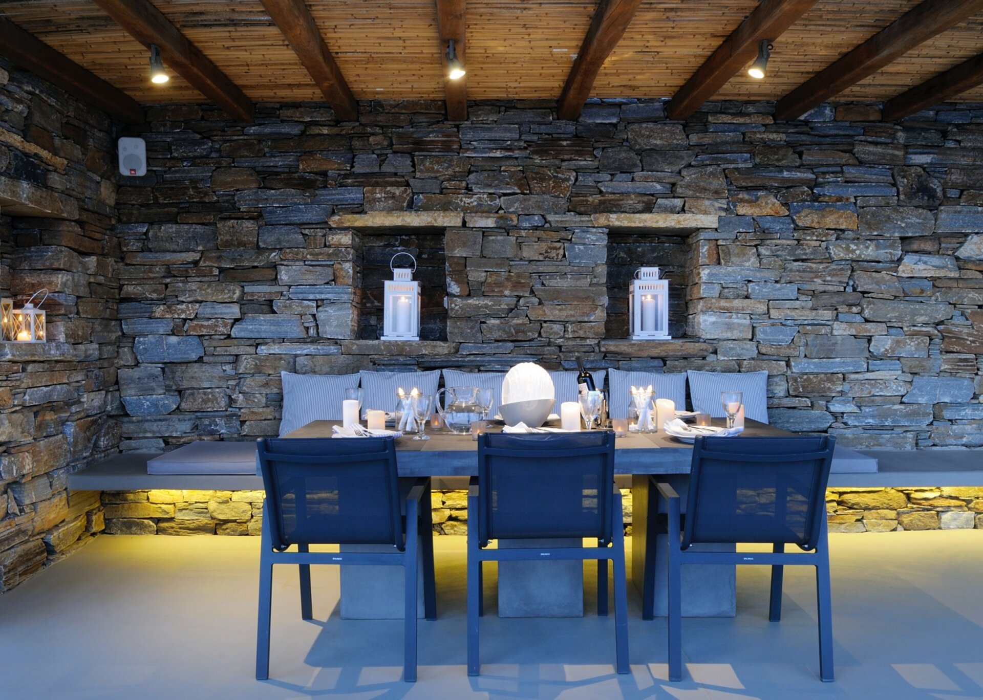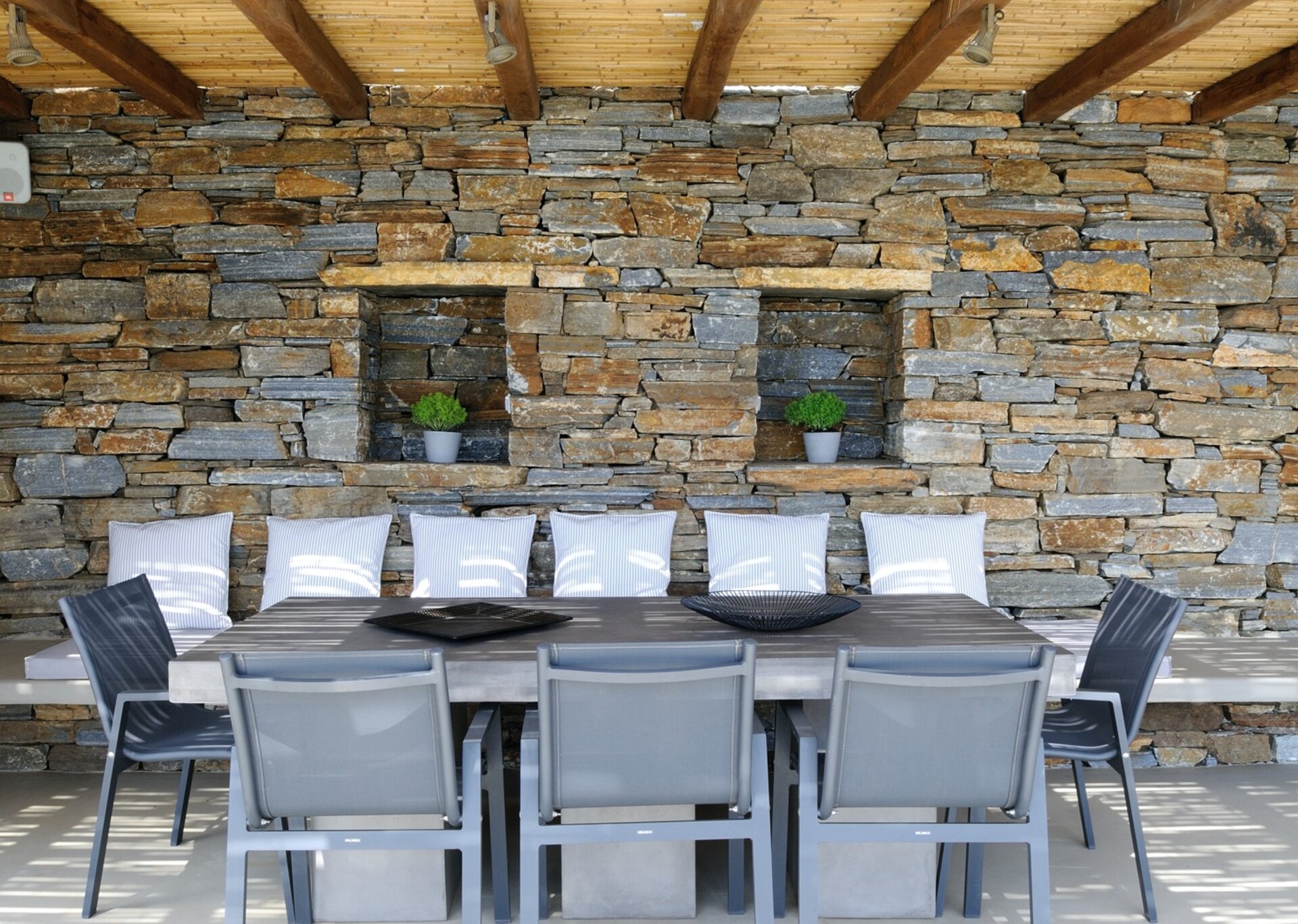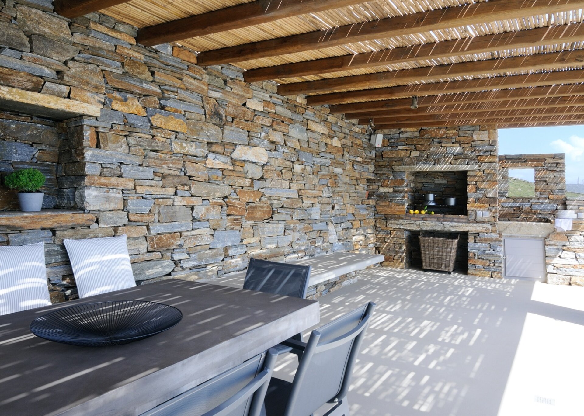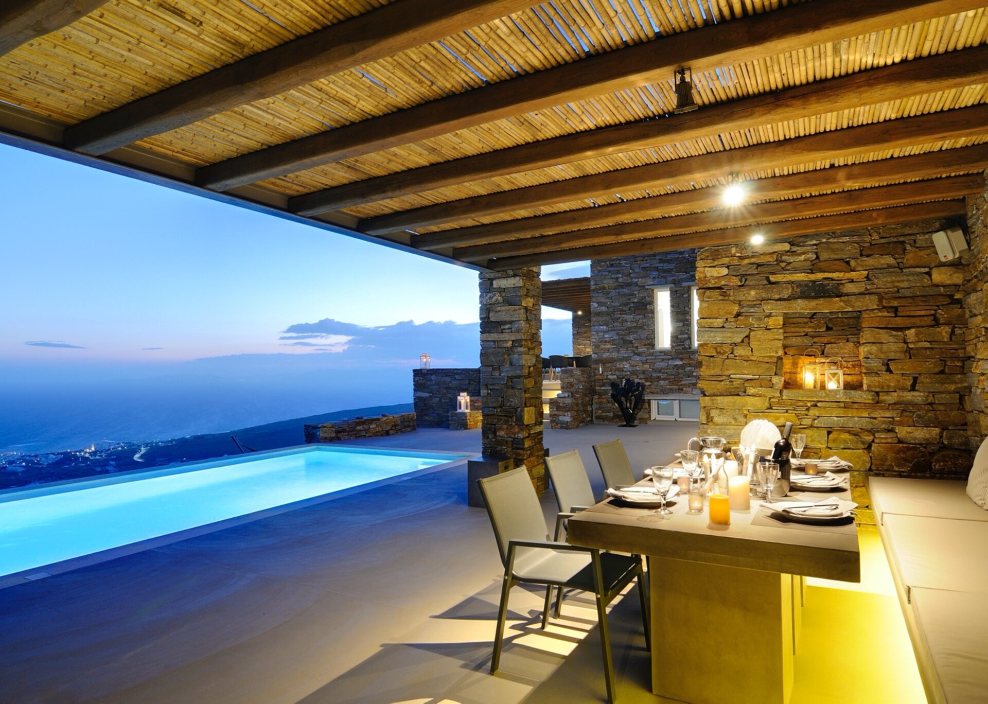 In addition to breathtaking sceneries of the captivating Aegean Sea, the villa provides its guests with a spacious and airy environment that extends to its outdoor areas. The pure white walls contrasted with polished cement flooring add a chic and minimalist touch to the villa's decor, providing guests with the ultimate atmosphere of relaxation.