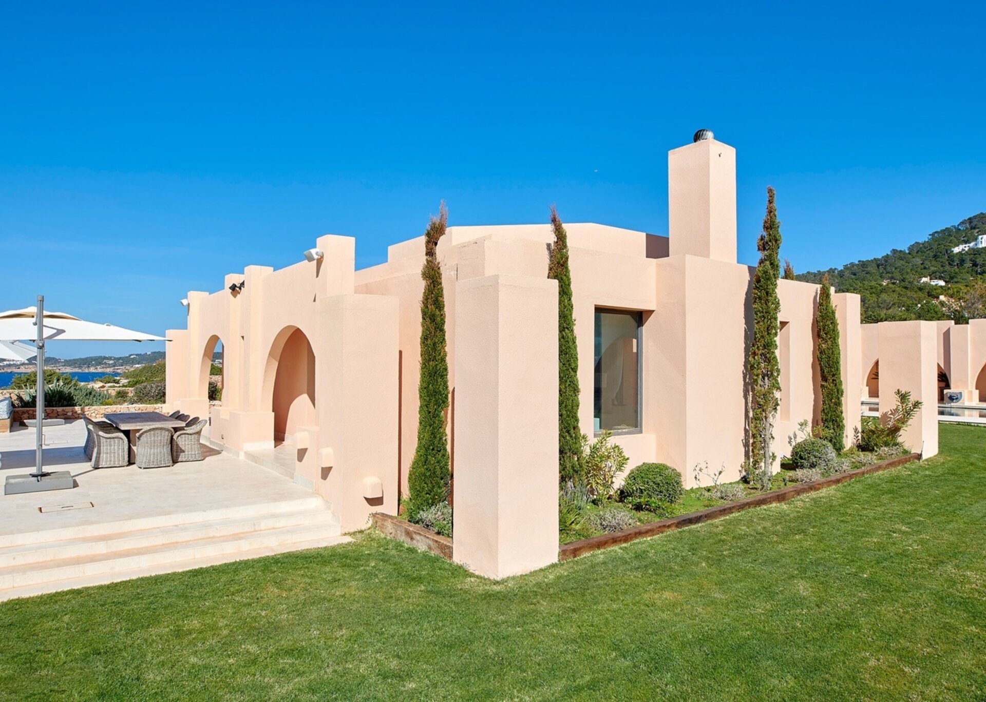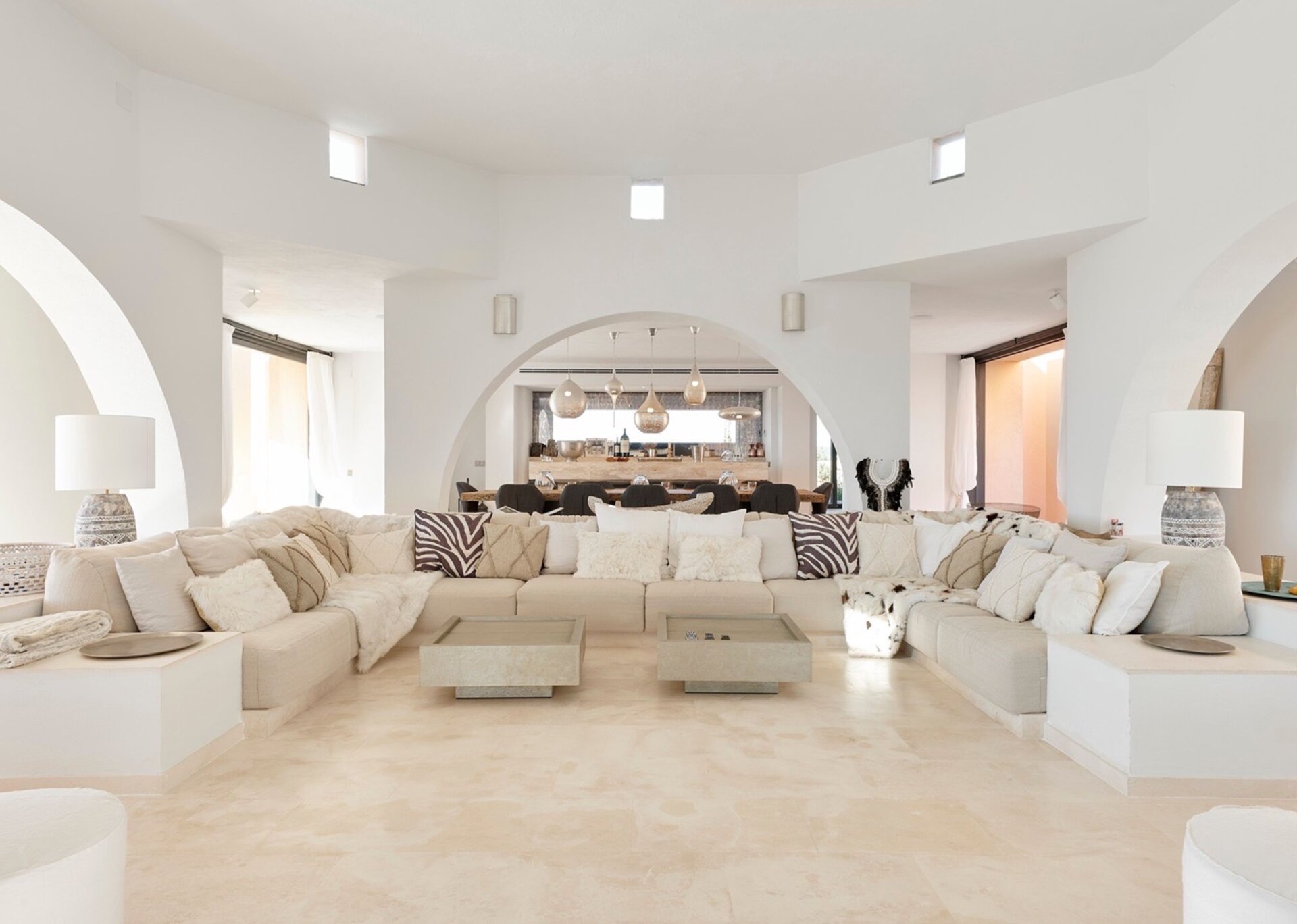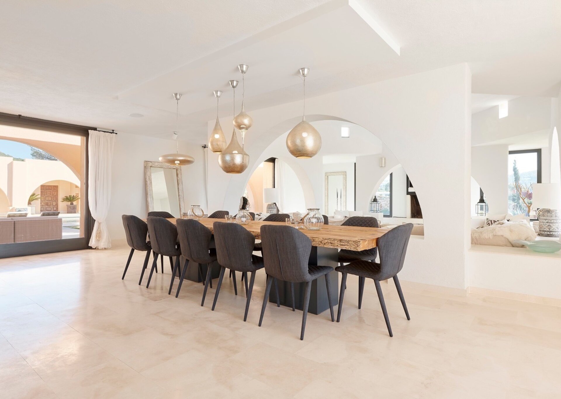 Experience the epitome of luxury at Moet, a magnificent 6-bedroom villa nestled within the secure urbanization of Calo D'en Real. This hidden gem offers breathtaking sunsets and panoramic views, best enjoyed from the villa's serene relaxation and dining areas.