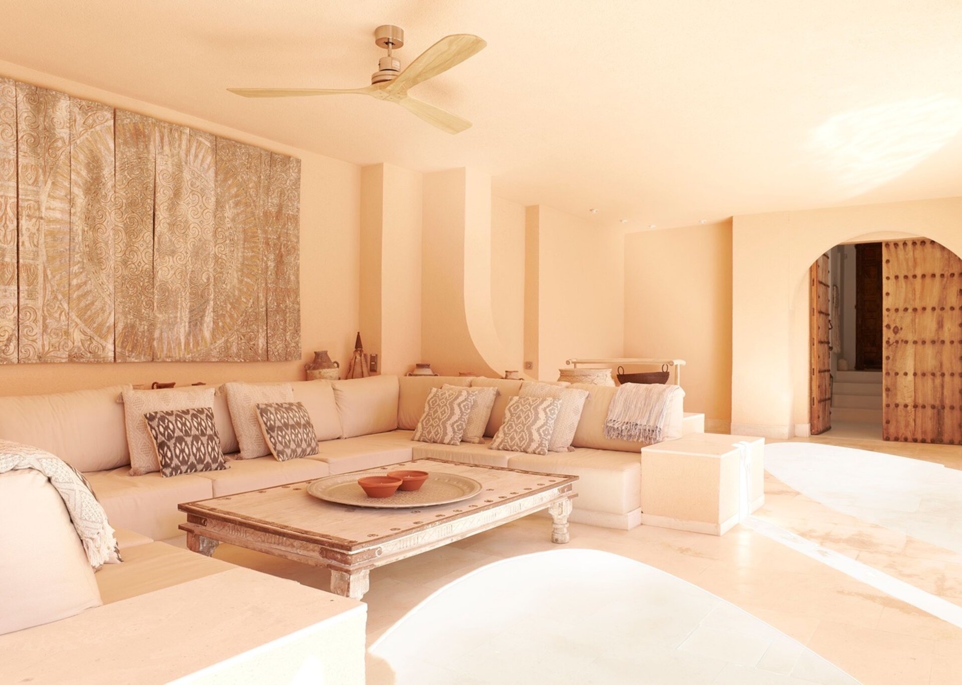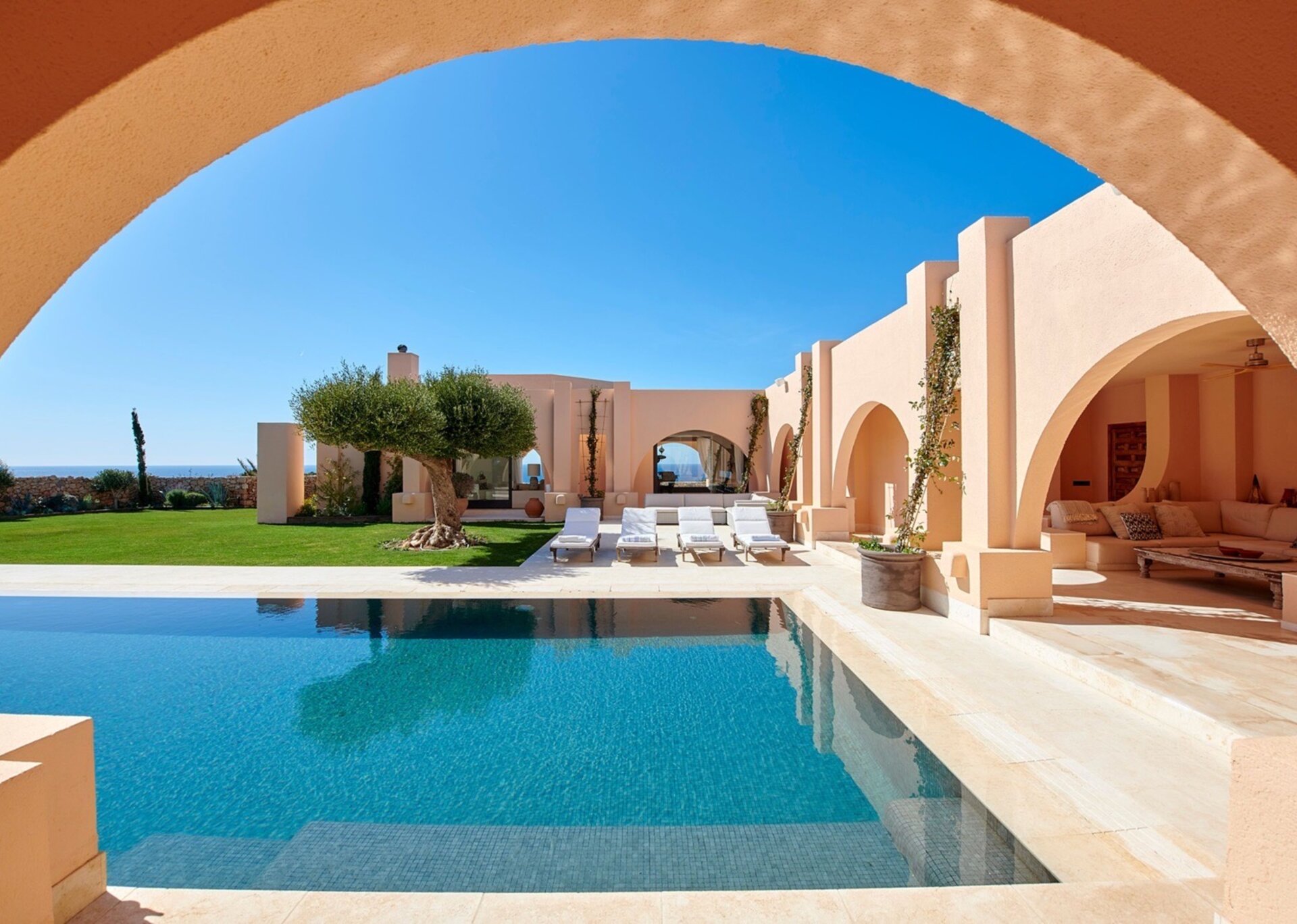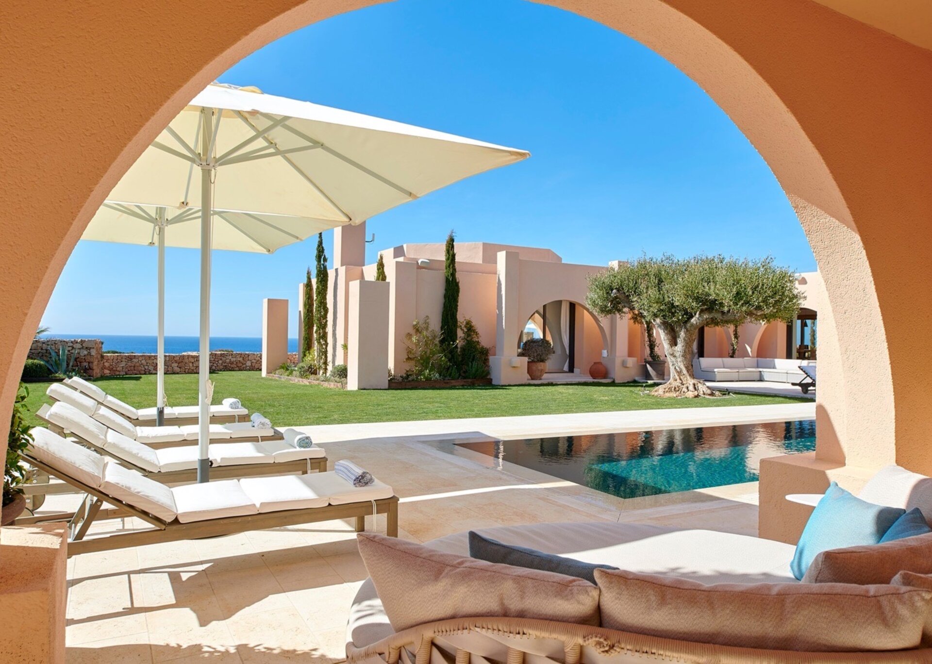 Experience the epitome of luxury at Moet, a magnificent 6-bedroom villa nestled within the secure urbanization of Calo D'en Real. This hidden gem offers breathtaking sunsets and panoramic views, best enjoyed from the villa's serene relaxation and dining areas.
