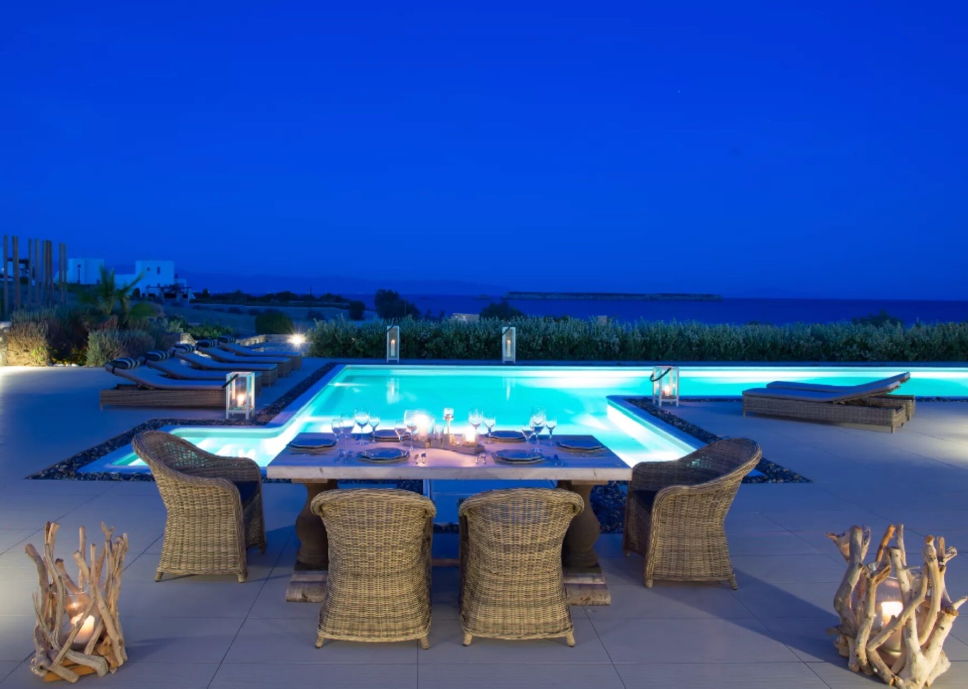 Featuring three spacious double bedrooms and one cozy single bedroom, Villa Montreal in Paros is a gem for guests in search of both elegance and privacy. Each room is meticulously designed and furnished with a blend of contemporary decor and top-notch facilities, ensuring a luxurious stay. The panoramic windows offer enchanting views of the picturesque Cycladic coastline, creating a serene retreat for families and groups of friends.