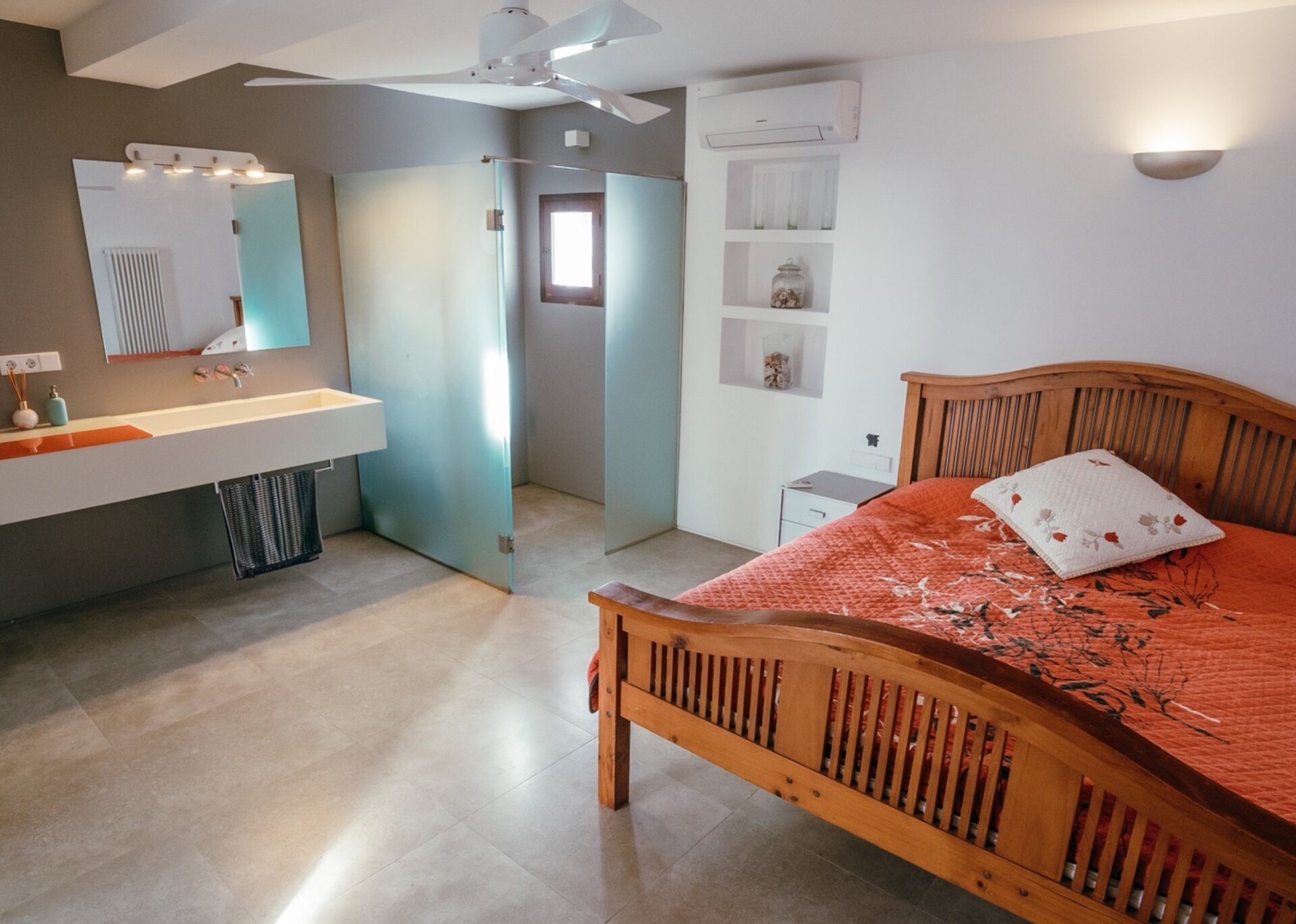 Mucca is a spacious country home with 6 bedrooms, nestled in the serene countryside of Ibiza. Its architectural design accentuates a lateral layout with clever partitions to create an optimal living experience. Surrounded by the picturesque beauty of Ibiza's verdant countryside, this peaceful retreat seamlessly blends traditional aesthetics with modern amenities.