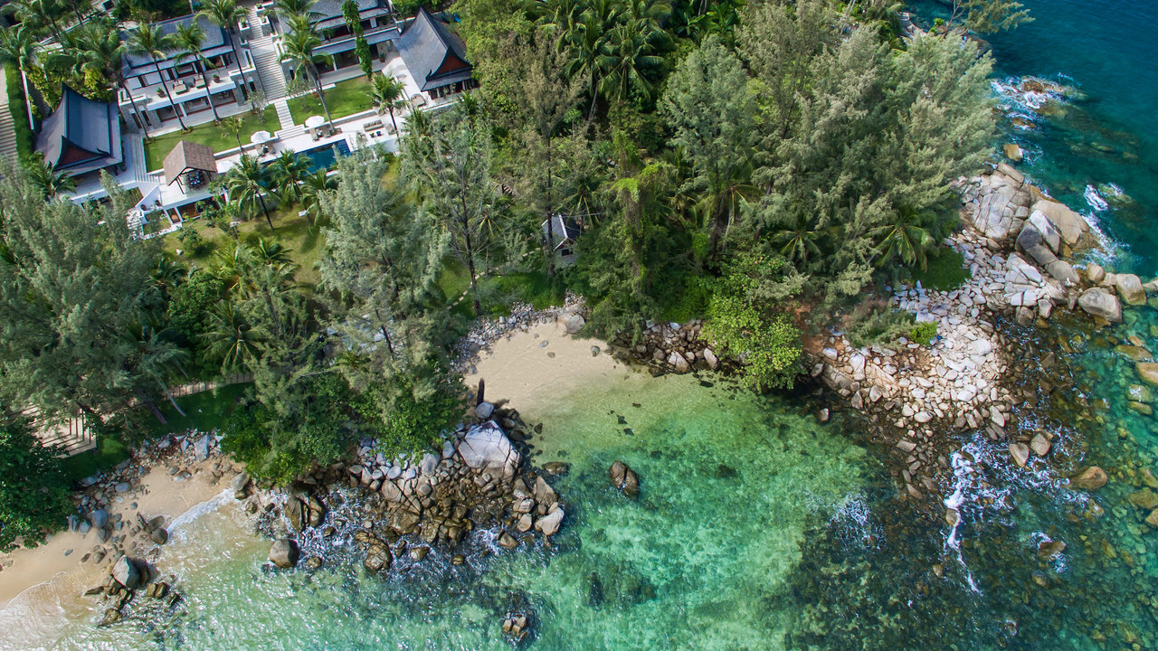 The villa is perched on a headland, with 5 individual pavilions housing the property’s massive 6 bedrooms, all equipped with immaculate furnishings, ensuite bathrooms with bathtubs, and large glass doors and windows that frame breathtaking ocean views. Facing the Andaman Sea, you’ve got endless views of the blue sky and crystal, blue waters of the famous Phuket coast. The villa pays homage to traditional Thai architectural details with a dominant contemporary aesthetic. Large, open spaces welcome bright natural light, and the use of floor-to-ceiling glass sliding doors on the living areas and bedrooms allow guests to have an open-air experience welcoming the cool breeze that the lush forest that surrounds brings.