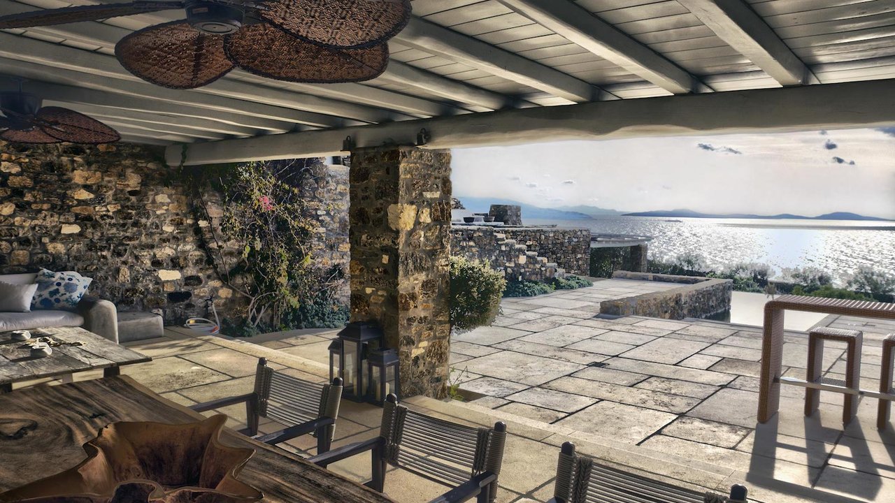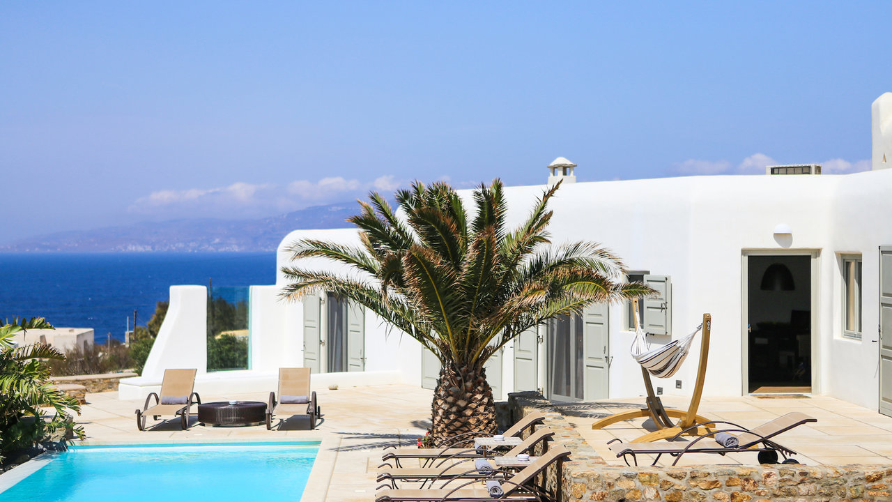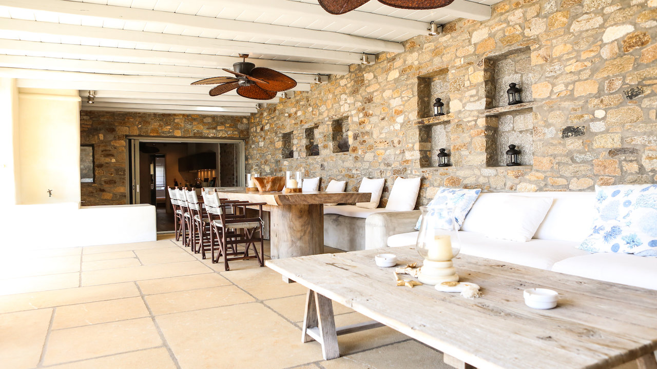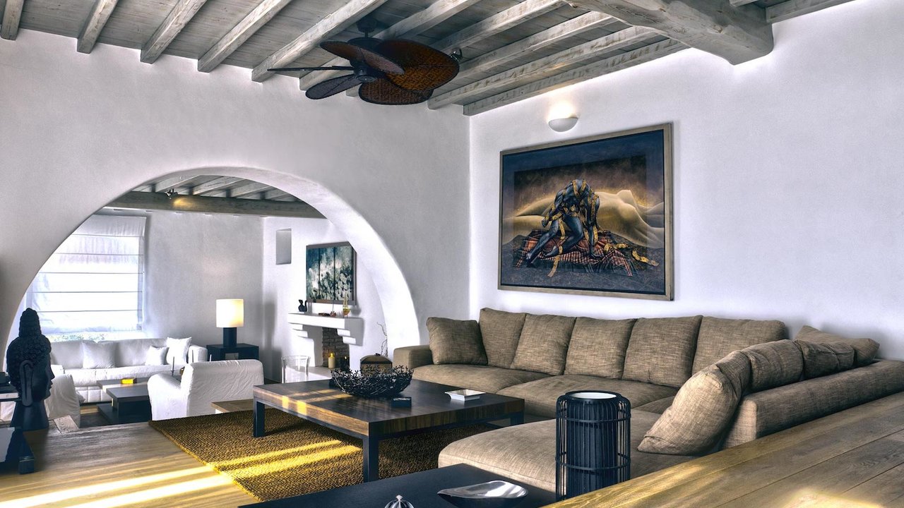 Located in Agios Stefanos in Mykonos, villa Namya is a luxurious villa that perfectly captures the ambience of the island and ensures its guests a luxurious adventure, guided through the essence of easy living. The estate is charactirized by its colorful sunset view, the panoramic azure vista of the Aegean sea, the dashing shaded outdoor terraces and its lavish mood. The outer terrace has a stunning pergola covered lounging and dining area, near to the enormous private swimming pool. During the early afternoon hours, the outer area is ideal to capture vibes and romantic moments while admiring the tangerine sunset view above the ocean. If these features weren't spoiling enough, Namya also includes a bar, BBQ, a well maintained garden, a soccer court and a private parking are for four cars.