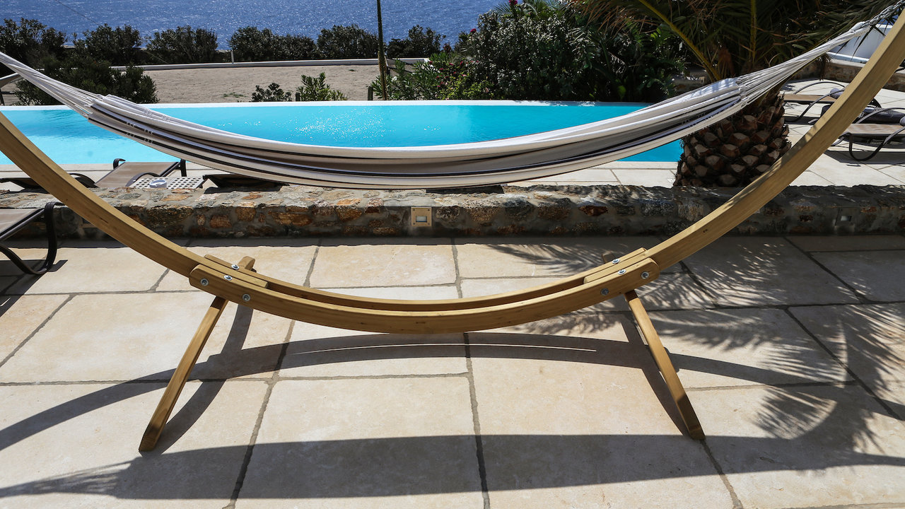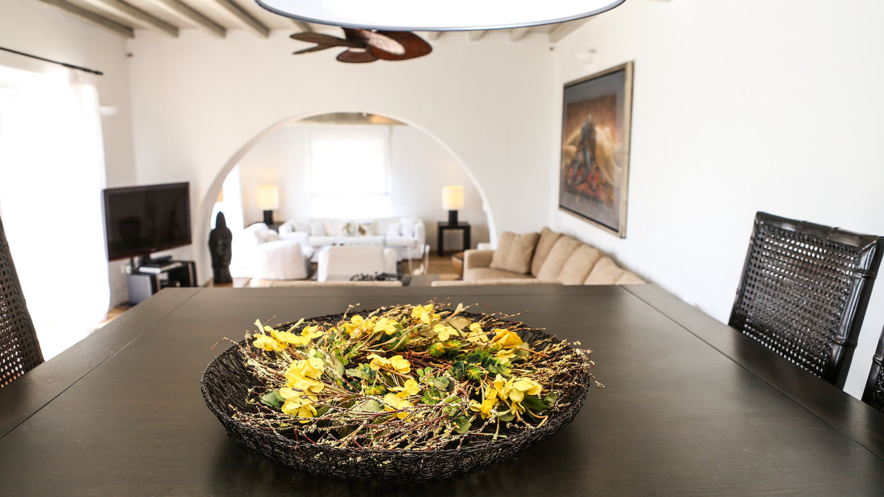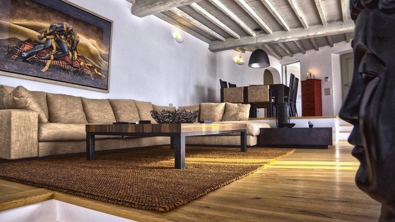 The inside of the house is opulente with a stoic ambience. The mood is lavish and the decoration, the design and the furniture have a unique sense of elegance and brightness. Each room is fully featured with spoiling amenities like a sound system, a satellite TV, a fully equipped kitchen and an indoor surround sound system. Namya can comfortably host up to 14 people to 3 spacious bedrooms and 4 guest houses, featured with air conditioning.