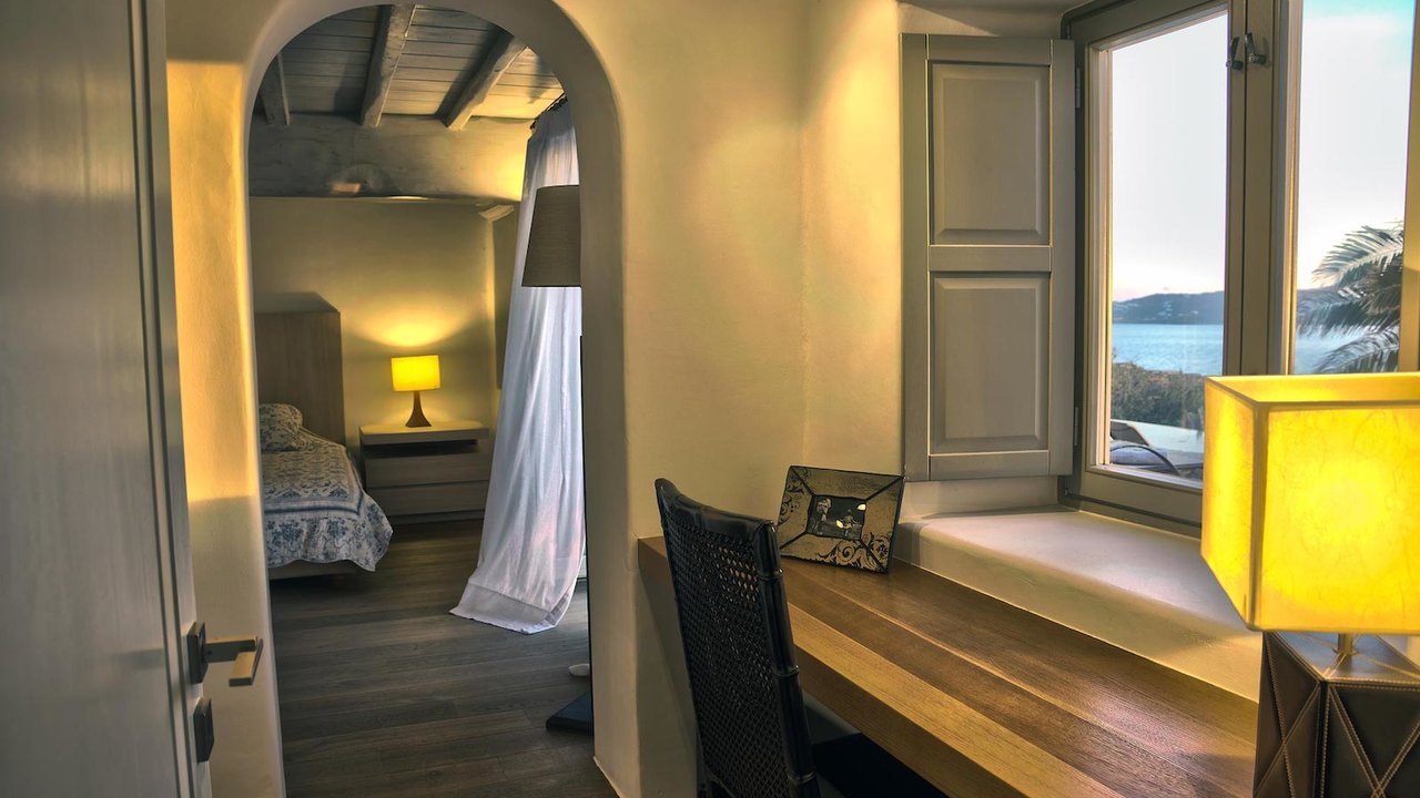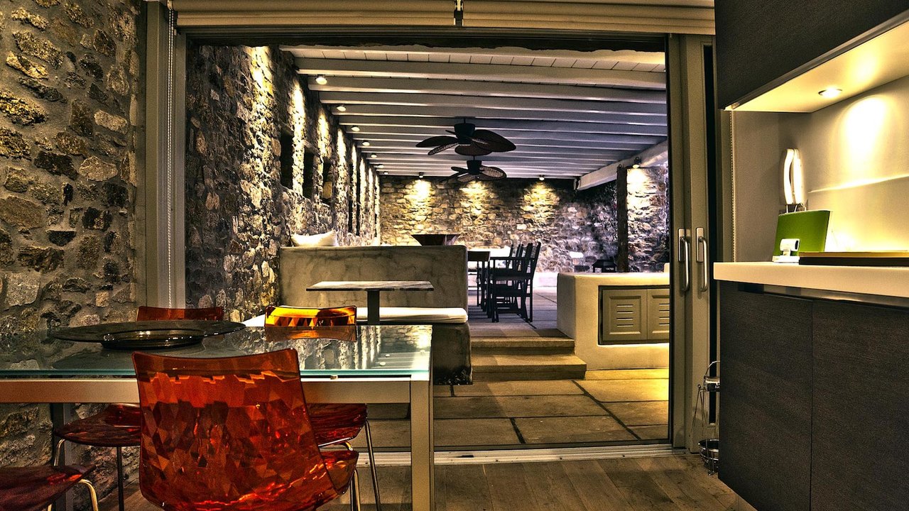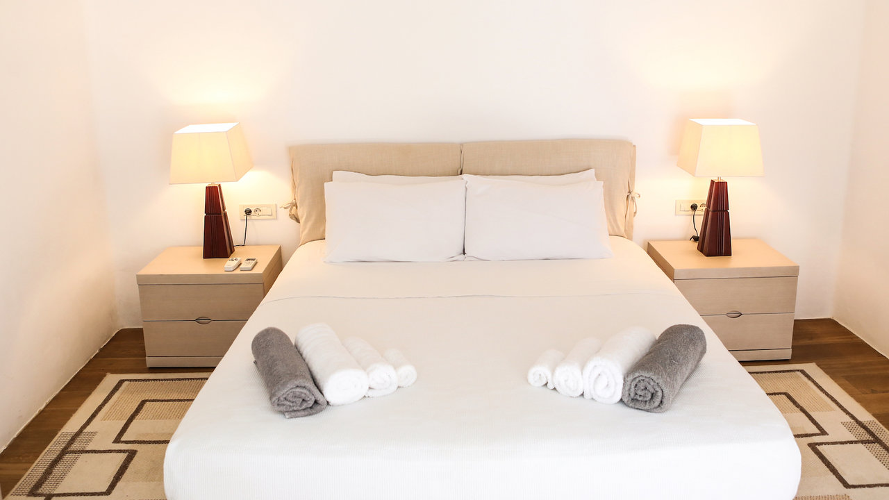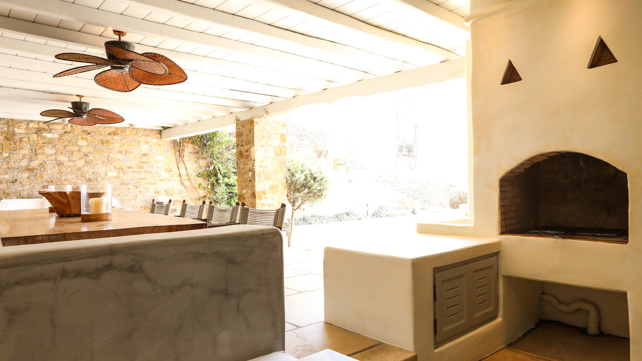 The inside of the house is opulente with a stoic ambience. The mood is lavish and the decoration, the design and the furniture have a unique sense of elegance and brightness. Each room is fully featured with spoiling amenities like a sound system, a satellite TV, a fully equipped kitchen and an indoor surround sound system. Namya can comfortably host up to 14 people to 3 spacious bedrooms and 4 guest houses, featured with air conditioning.
