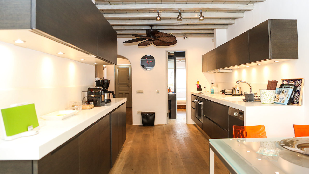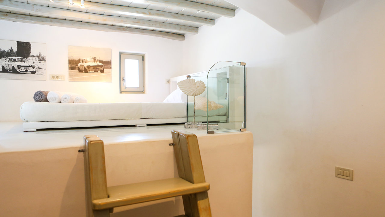 - A bedroom with 1 double bed (plus a double bed on the attic), A/C, en-suite bathroom with shower, courtyard access.