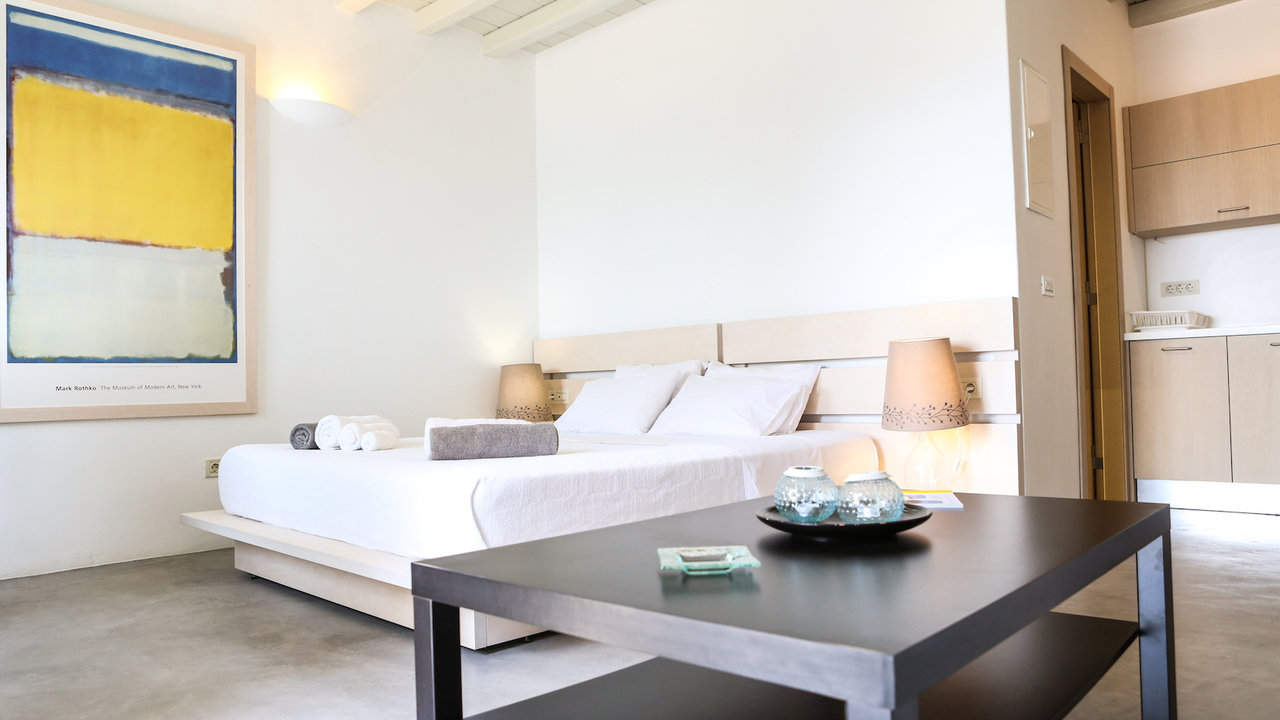 - 3rd Guest House: The third guest house in located close to the main house, and it consists of a double bed, a bathroom with shower, a sofa & a small kitchen and an A/C system. Guests have direct access to the pool and the garden, beautiful sea view.