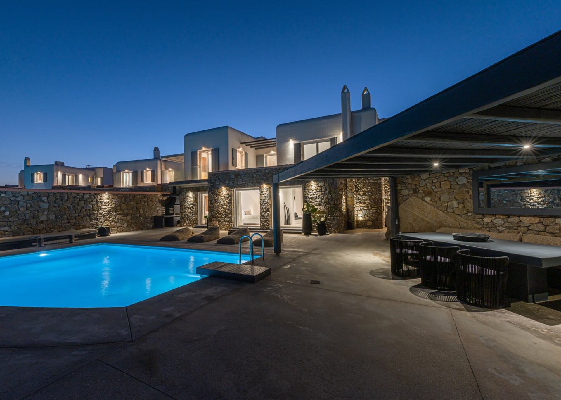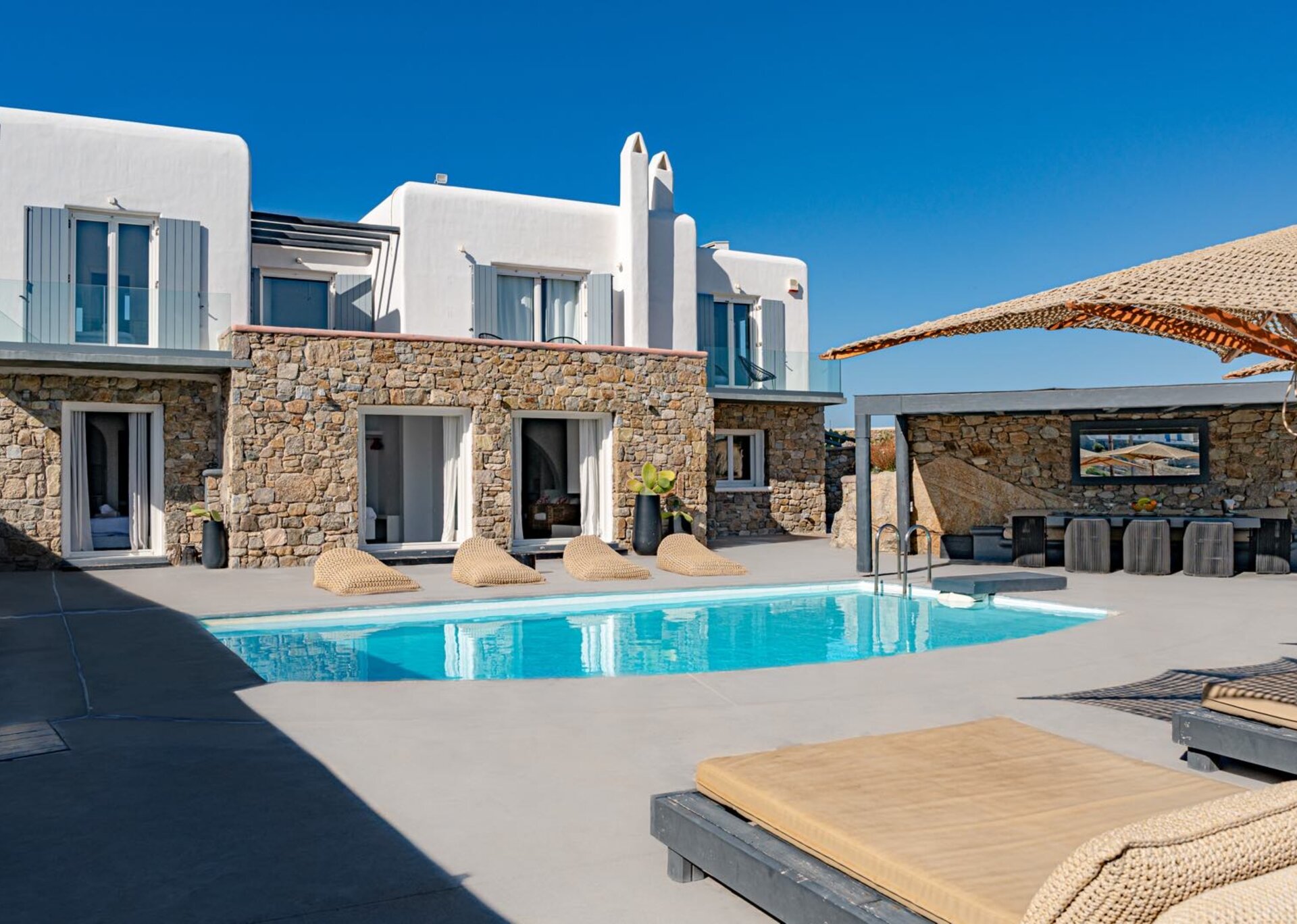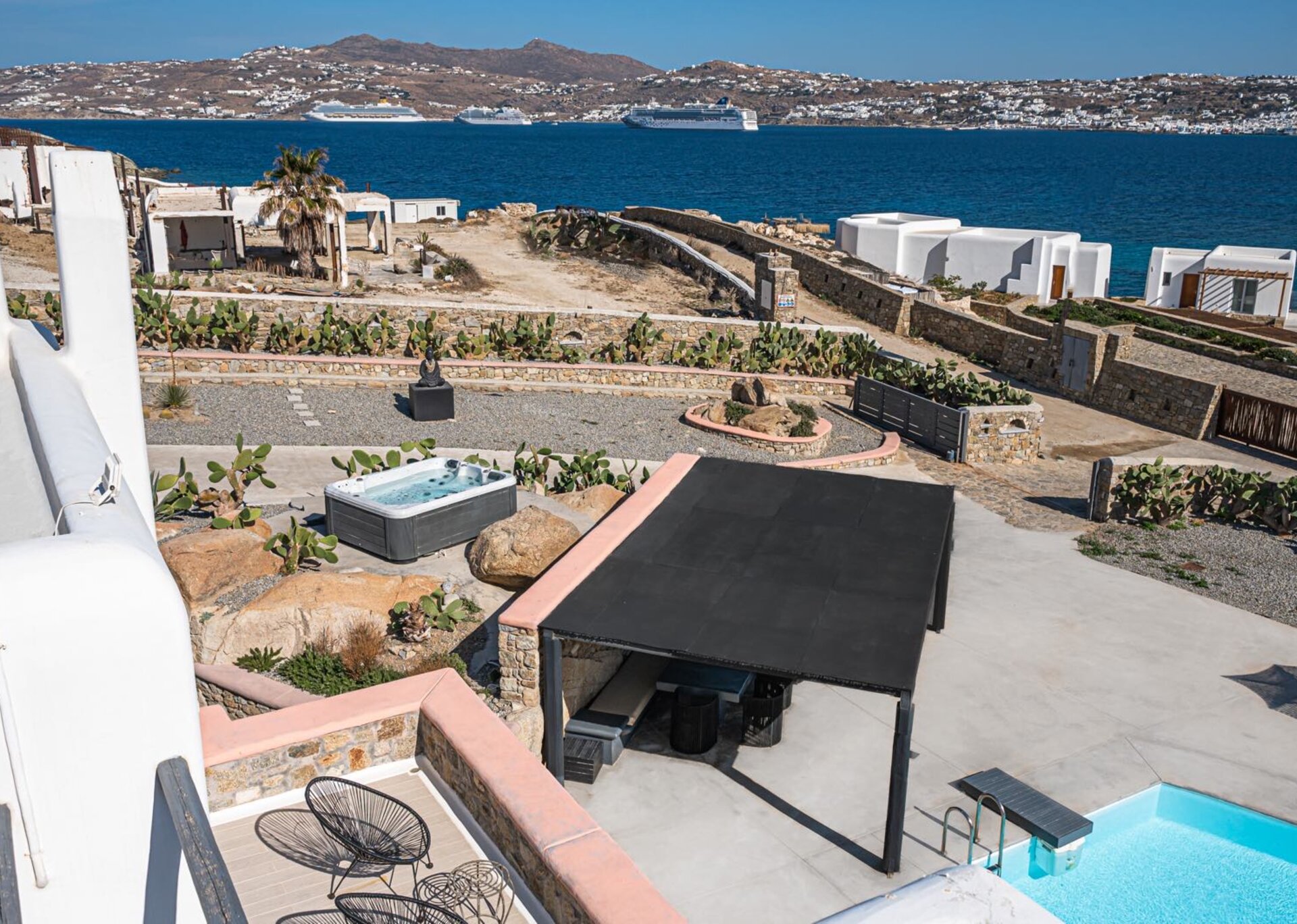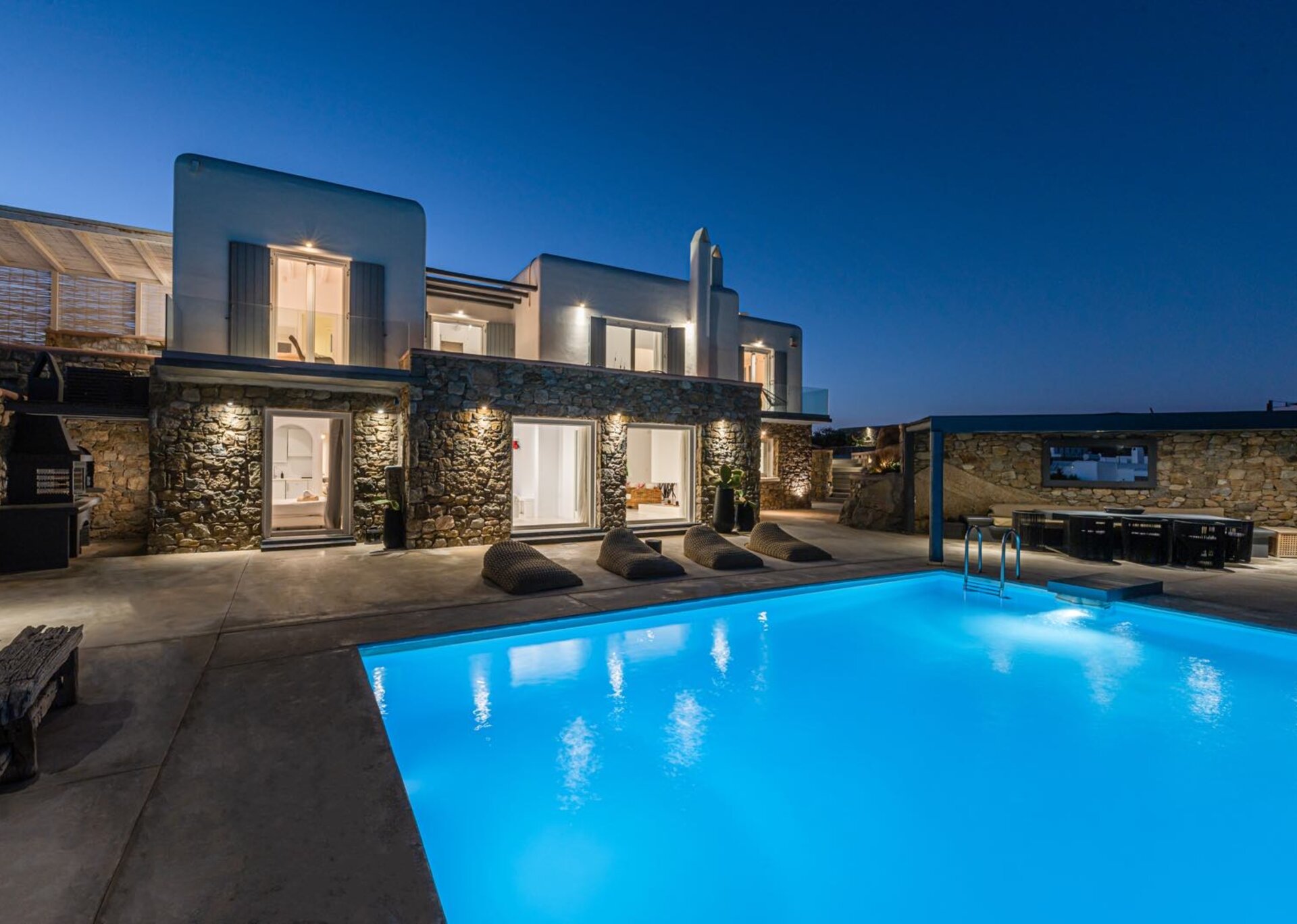 This is a modern villa build in 2015 in a unique location in Mykonos Canal with unlimited view of Mykonos Town, the port and the island of Tinos.