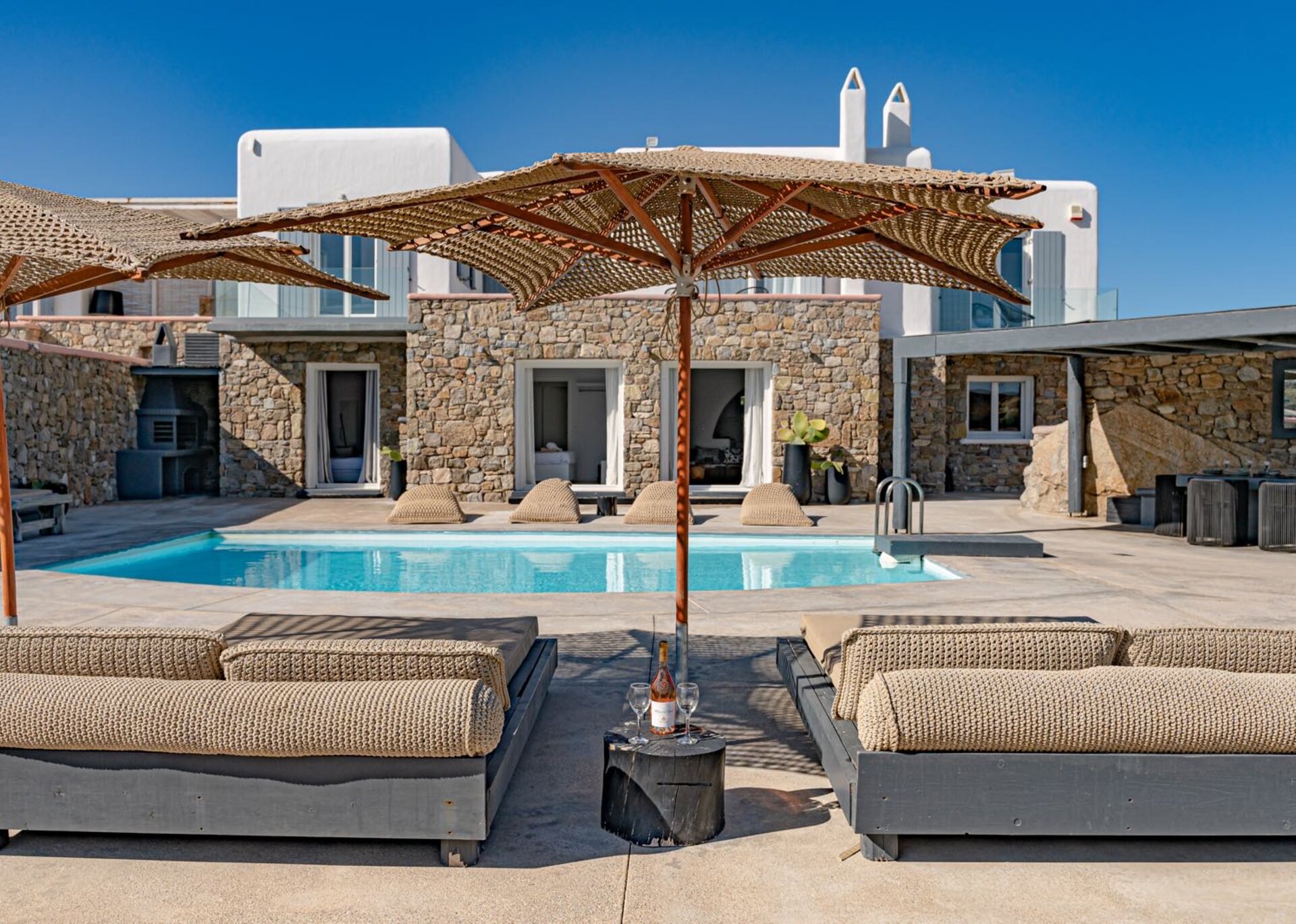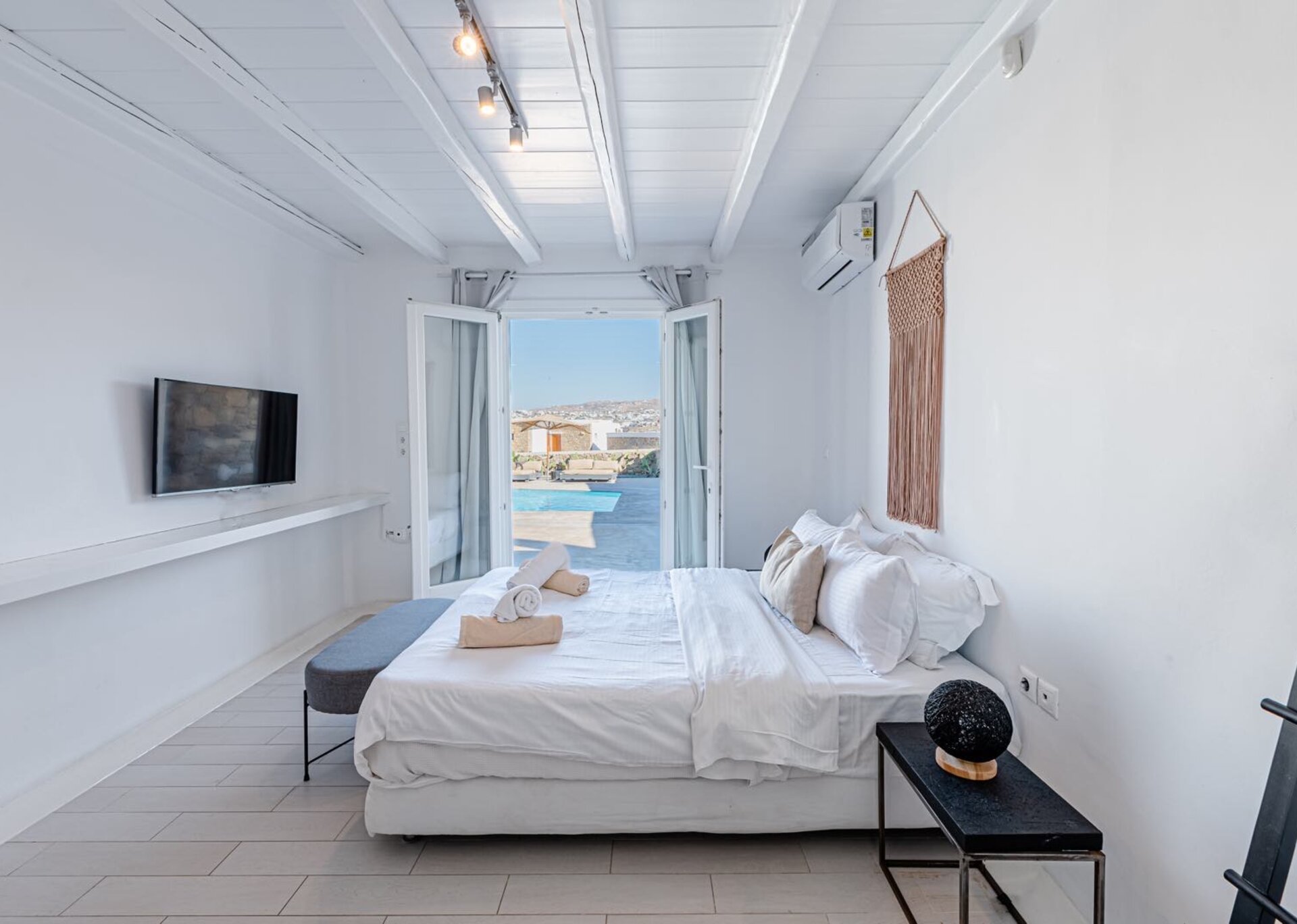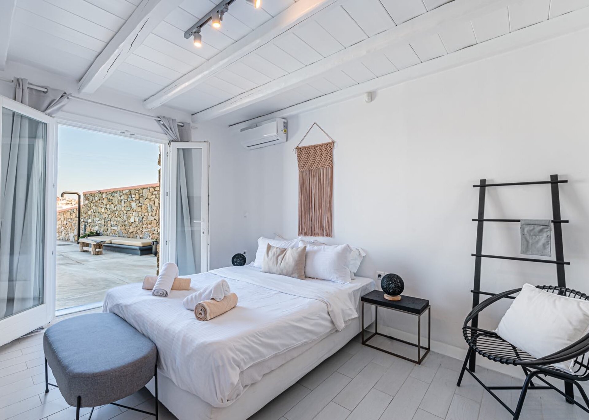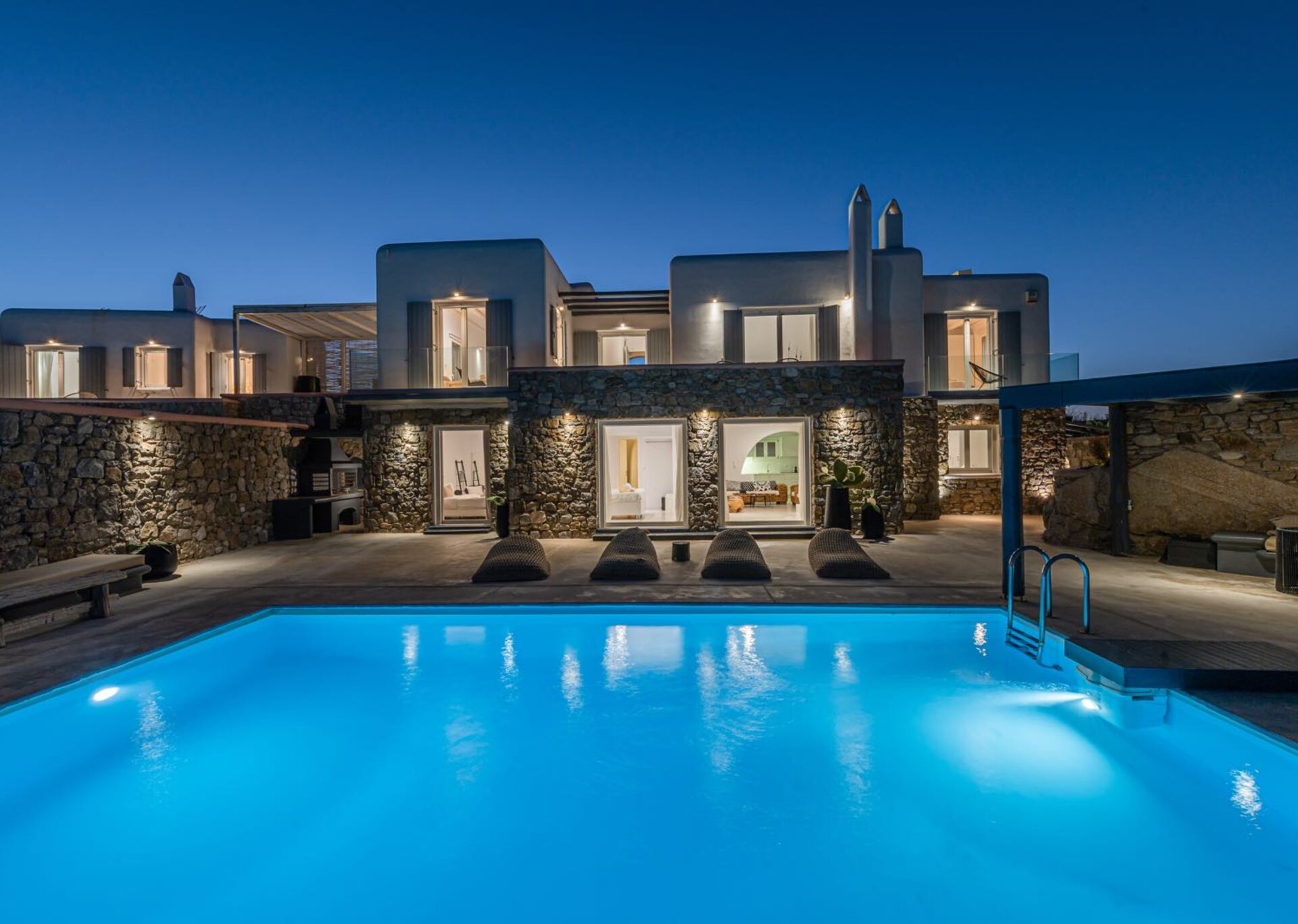 This is a modern villa build in 2015 in a unique location in Mykonos Canal with unlimited view of Mykonos Town, the port and the island of Tinos.