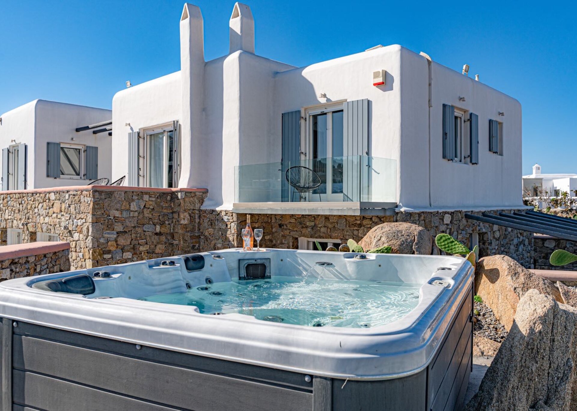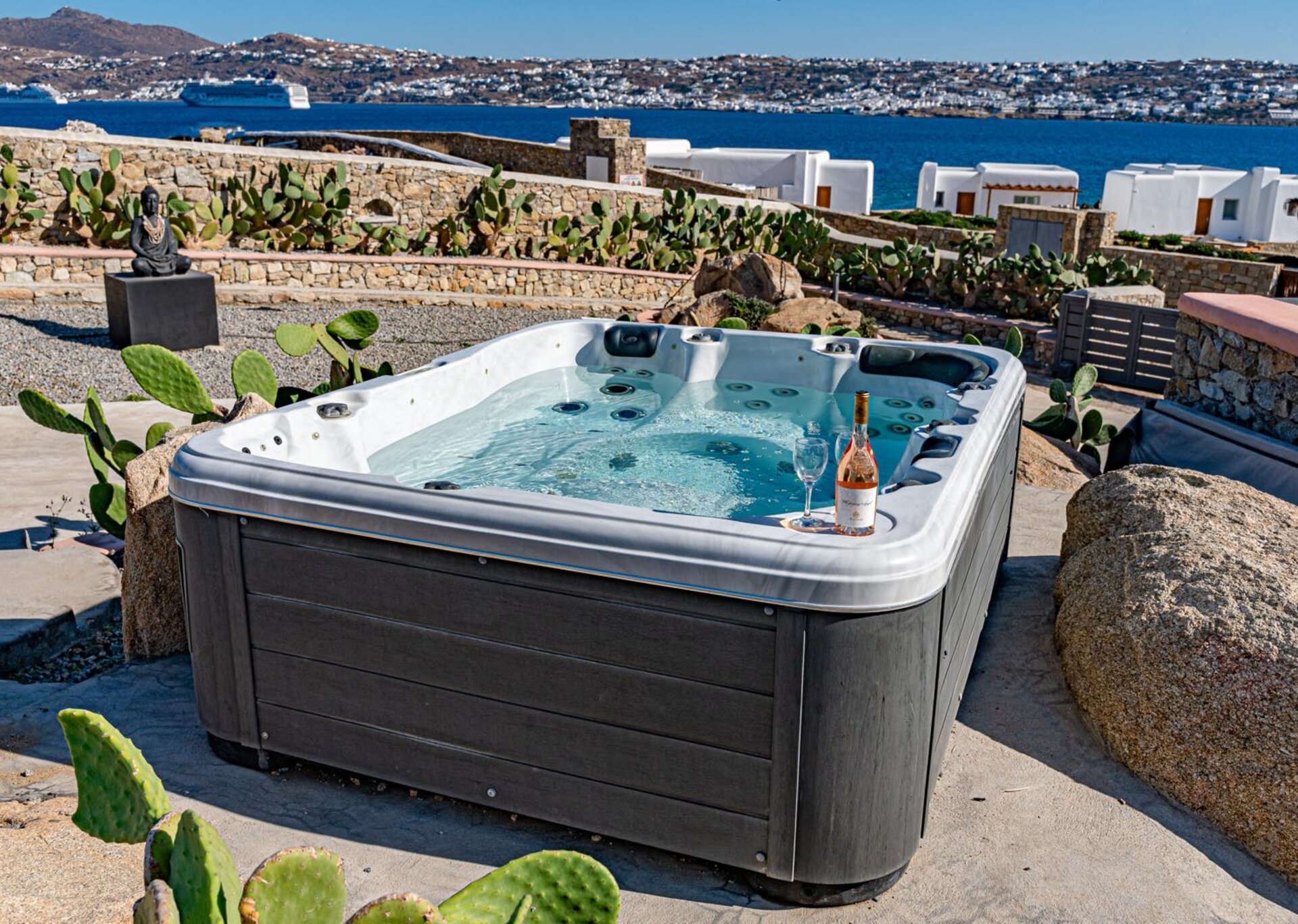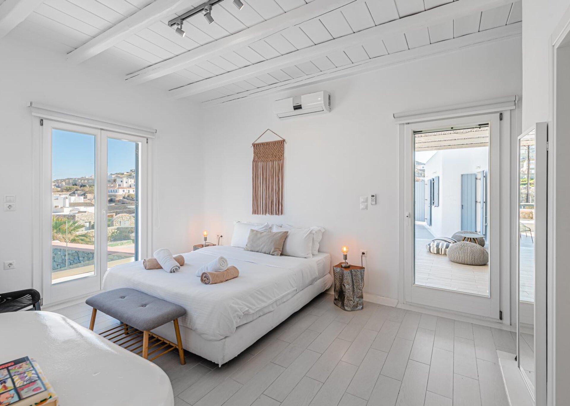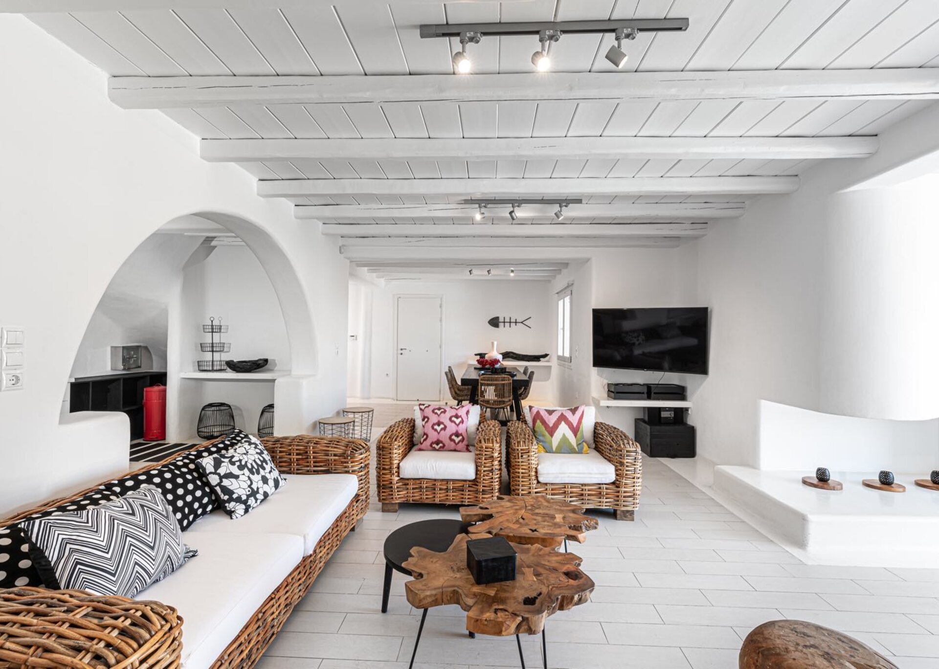 This is a modern villa build in 2015 in a unique location in Mykonos Canal with unlimited view of Mykonos Town, the port and the island of Tinos.