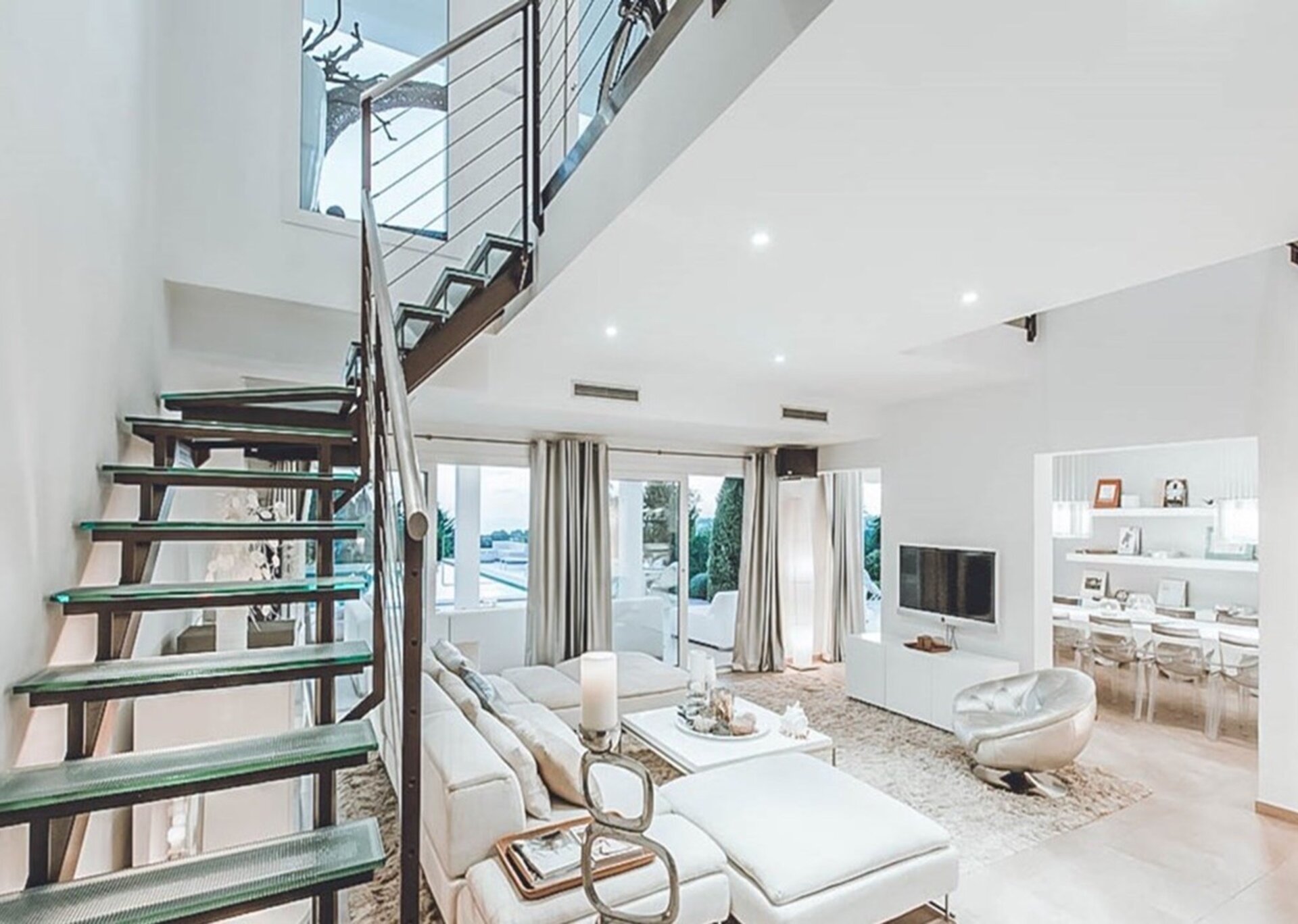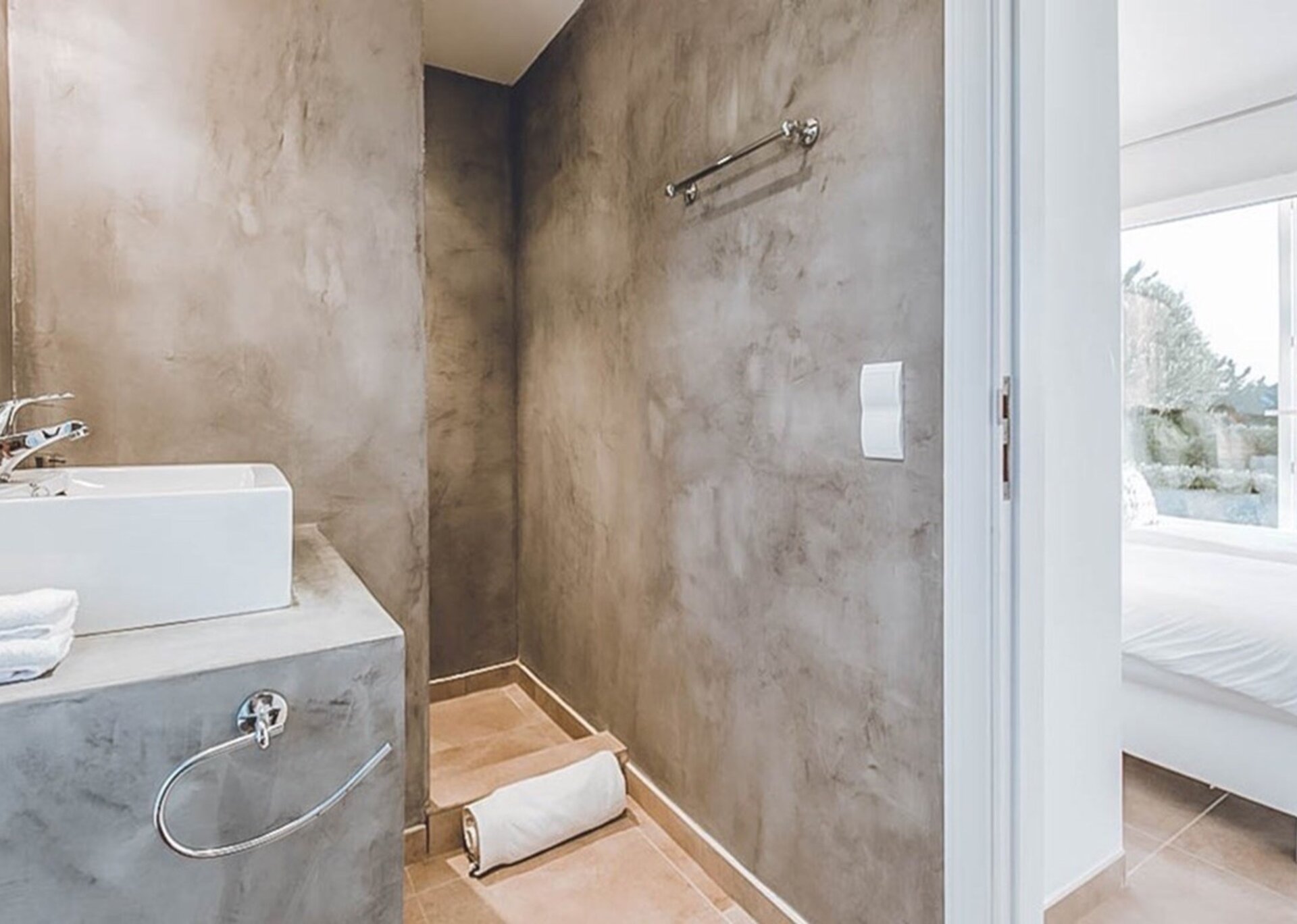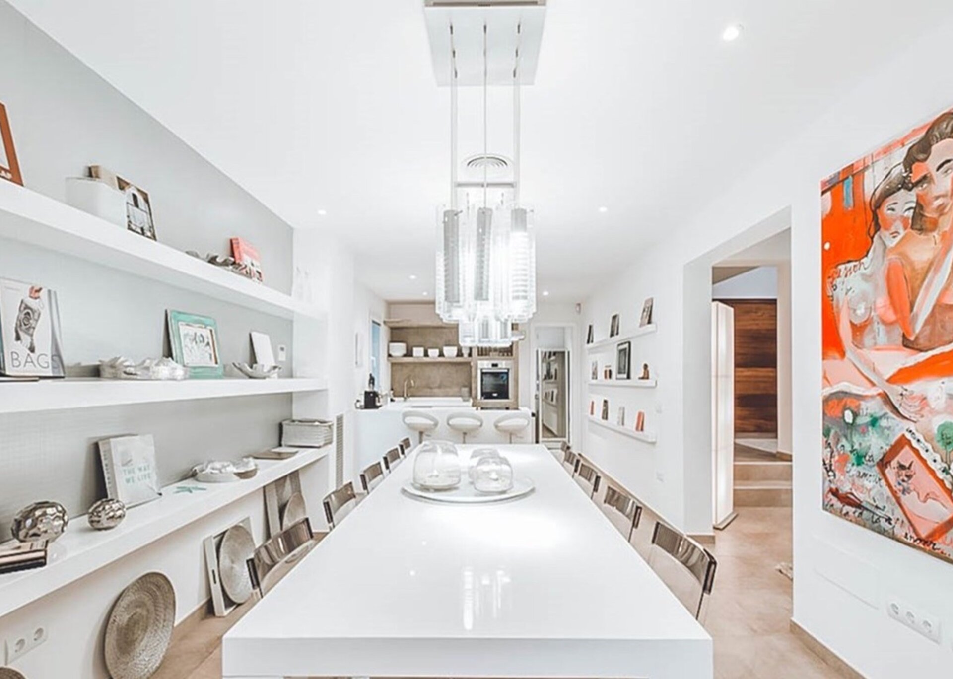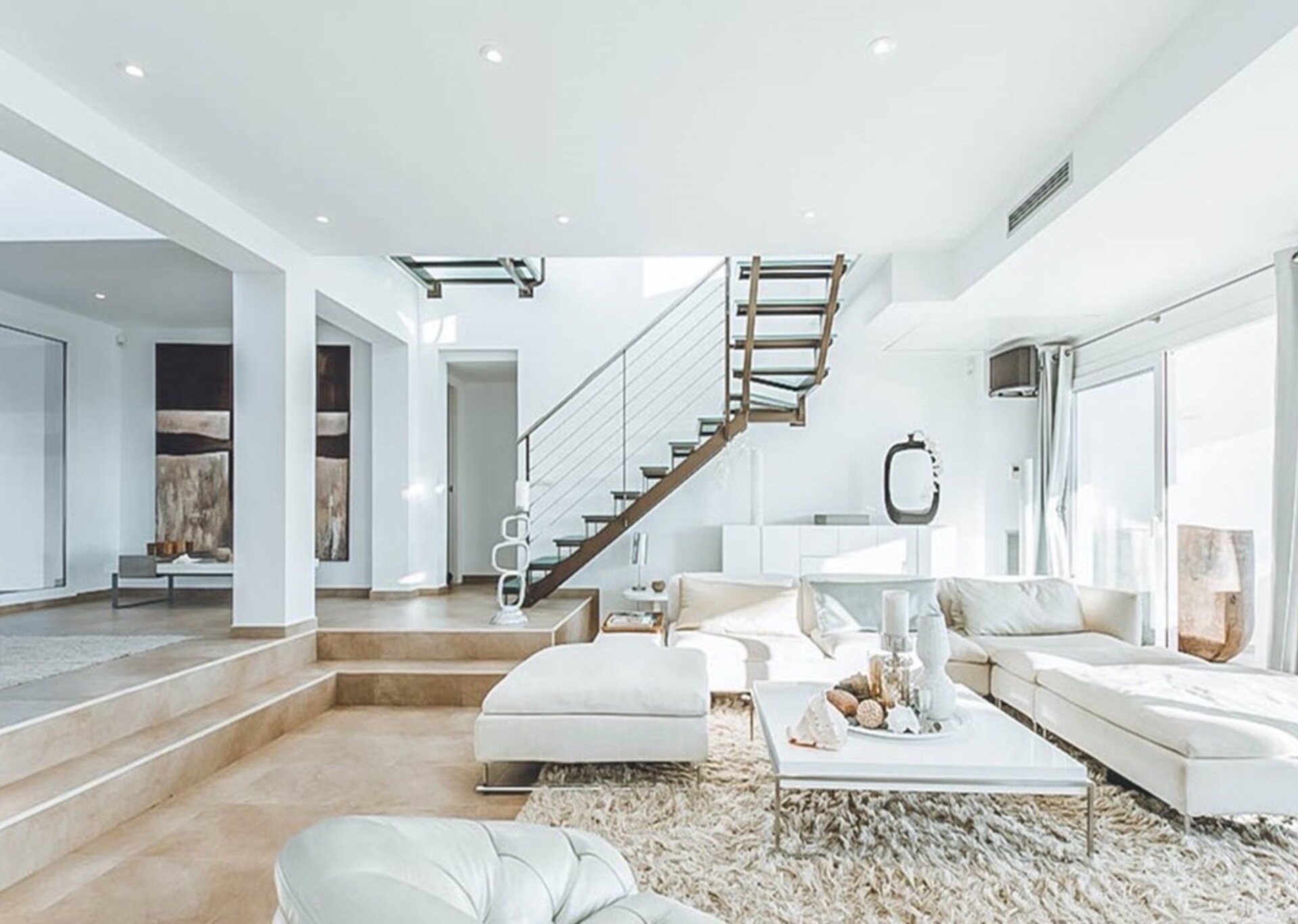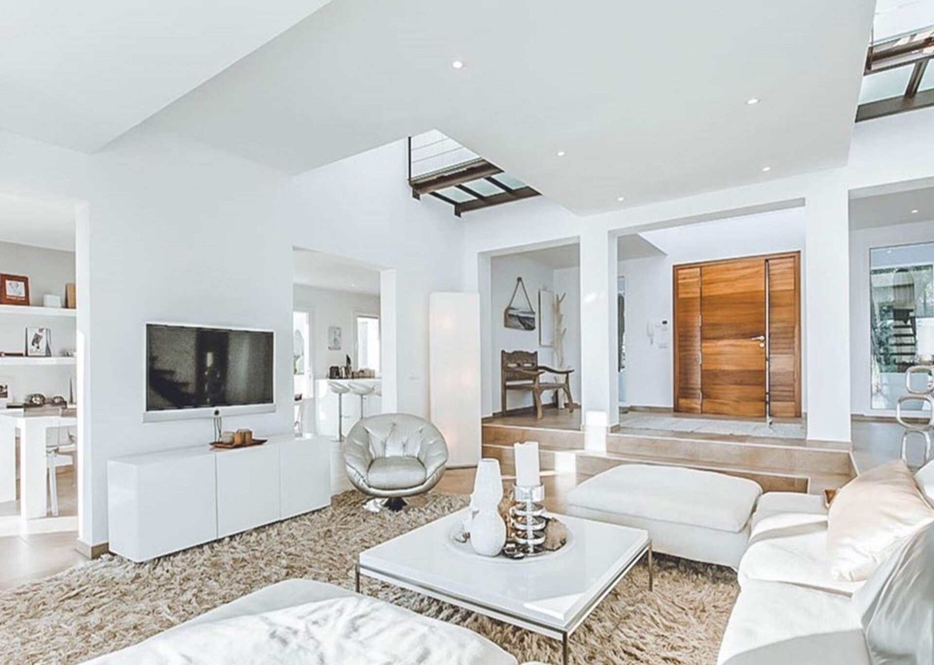 As you enter this modern, minimalist-style home, you're greeted with a spacious hall that leads into a tastefully decorated living room. The room is bathed in glorious Ibizan sunlight, thanks to the floor-to-ceiling sliding glass doors that showcase the unrivaled sea views. Every detail in this sophisticated villa has been carefully attended to, ensuring your comfort and luxury.