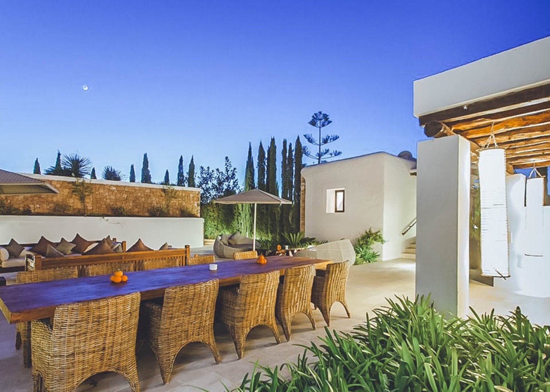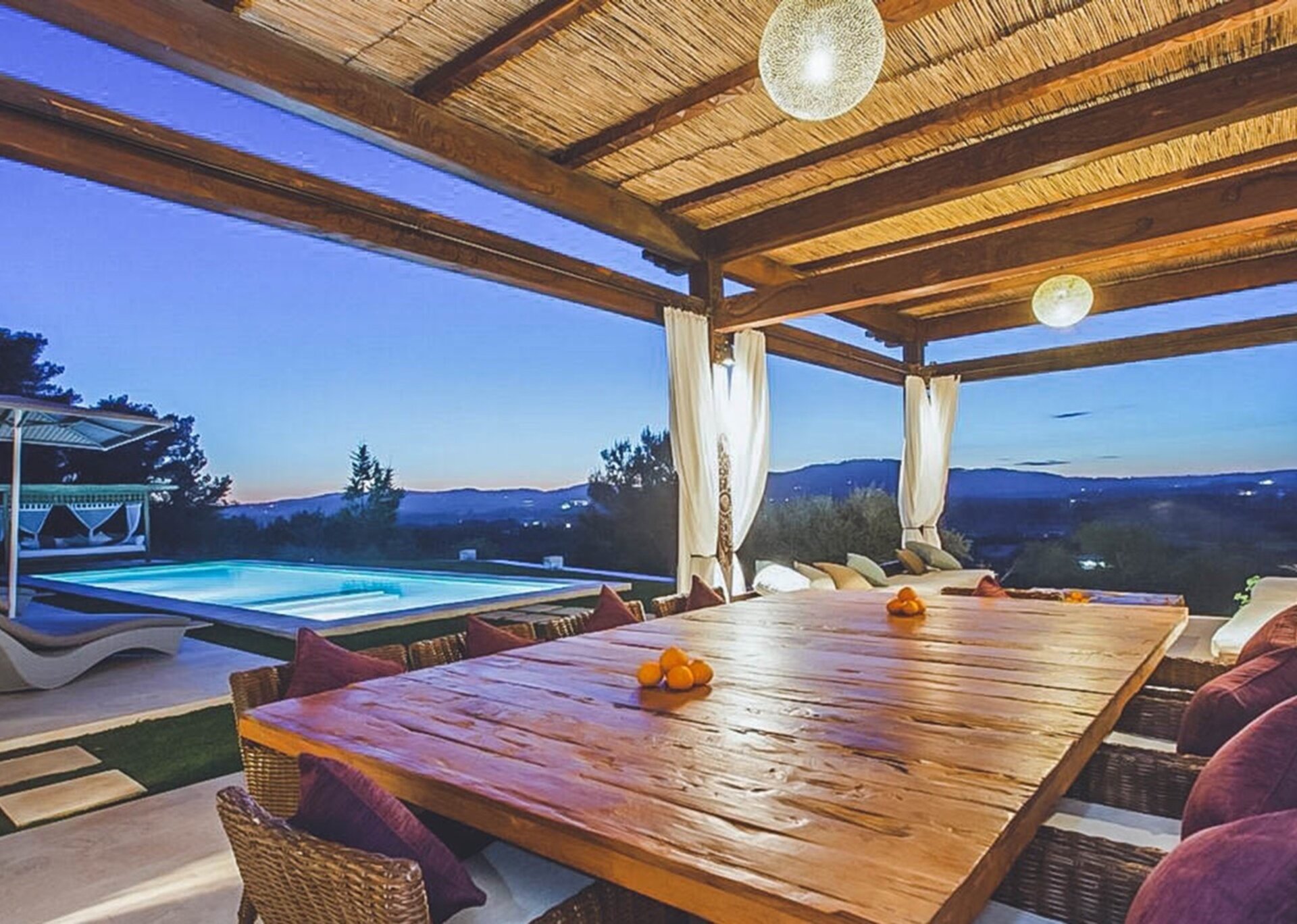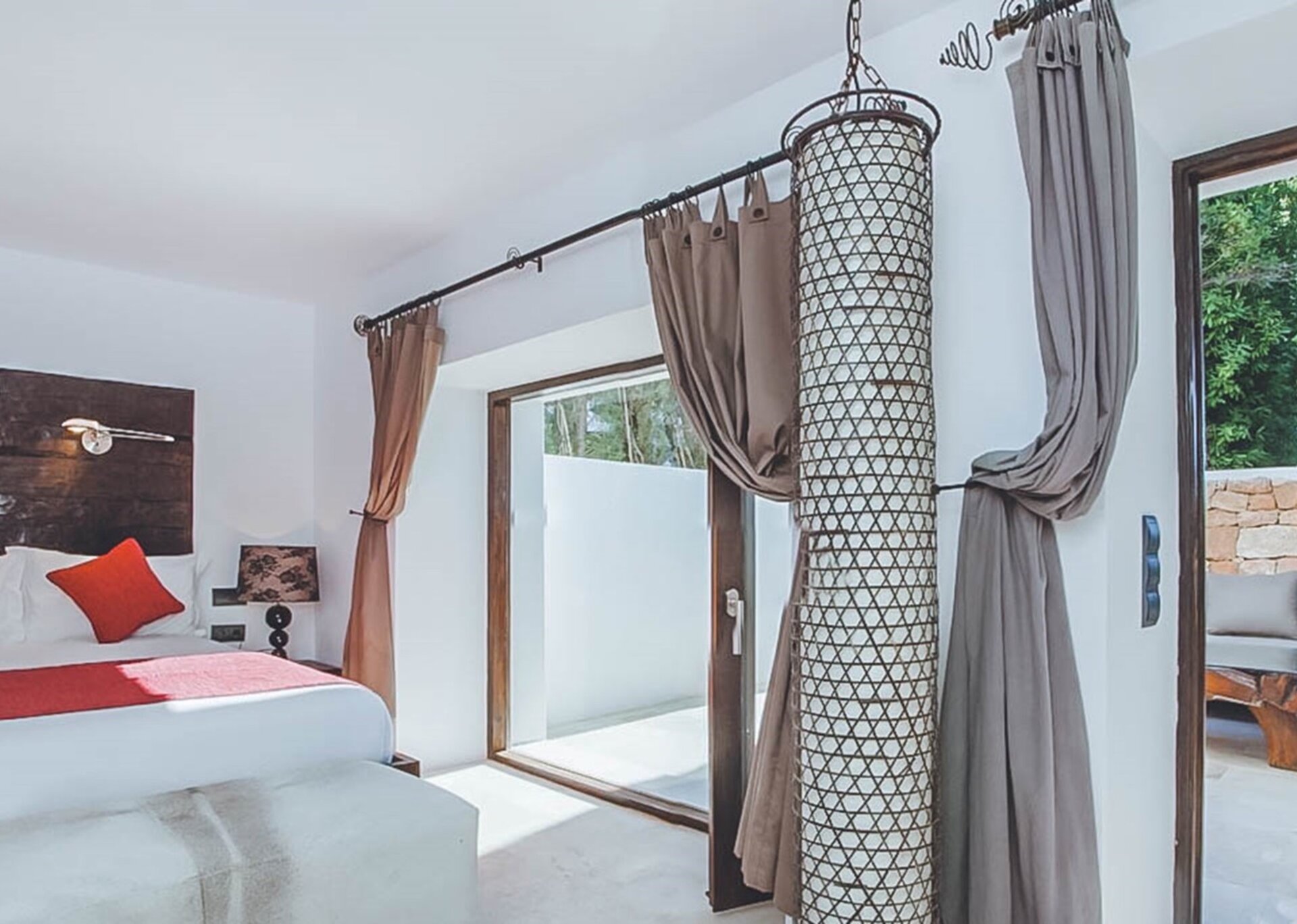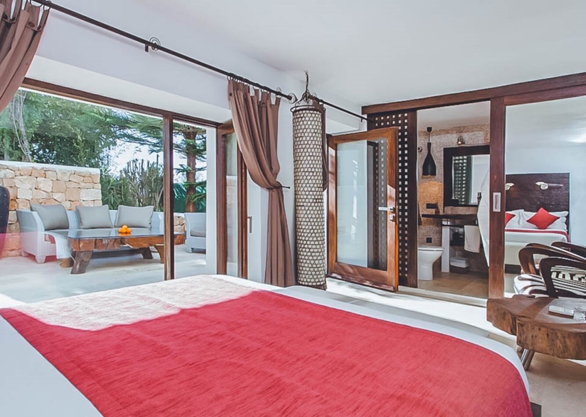 Nirvana gracefully blends contemporary style with the traditional Ibizan architecture, infused with Balinese influences in its interior and exterior decor. Wooden beamed ceilings, a fully equipped modern kitchen, four-poster beds, and tastefully designed stone masonry walls and tiling add to the effortless elegance of this home, seamlessly combining bohemian chic with modern luxury.