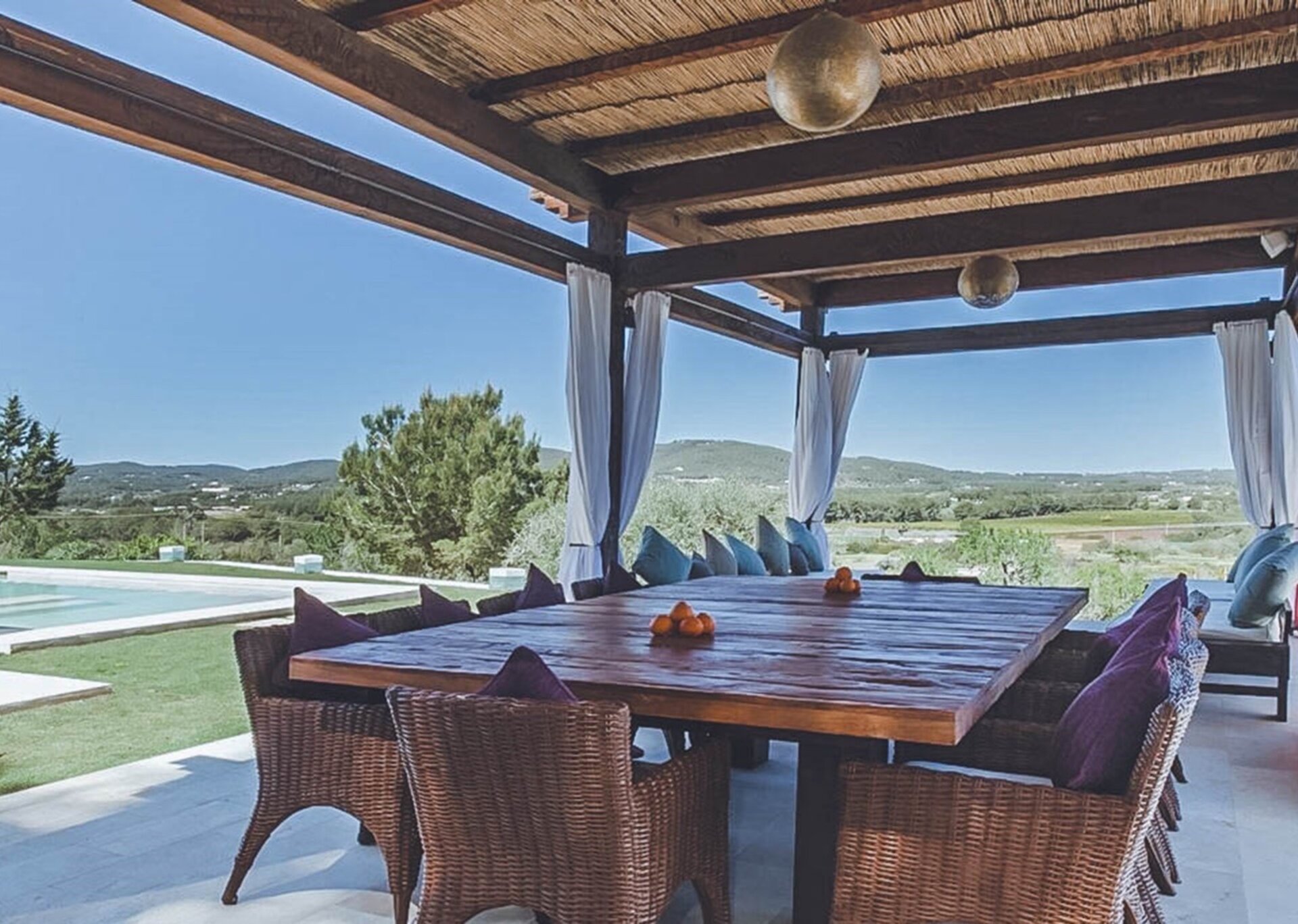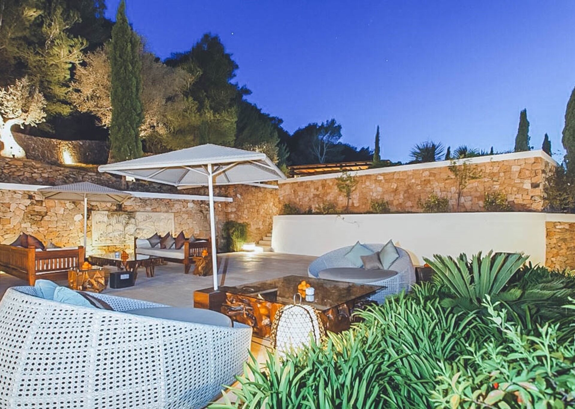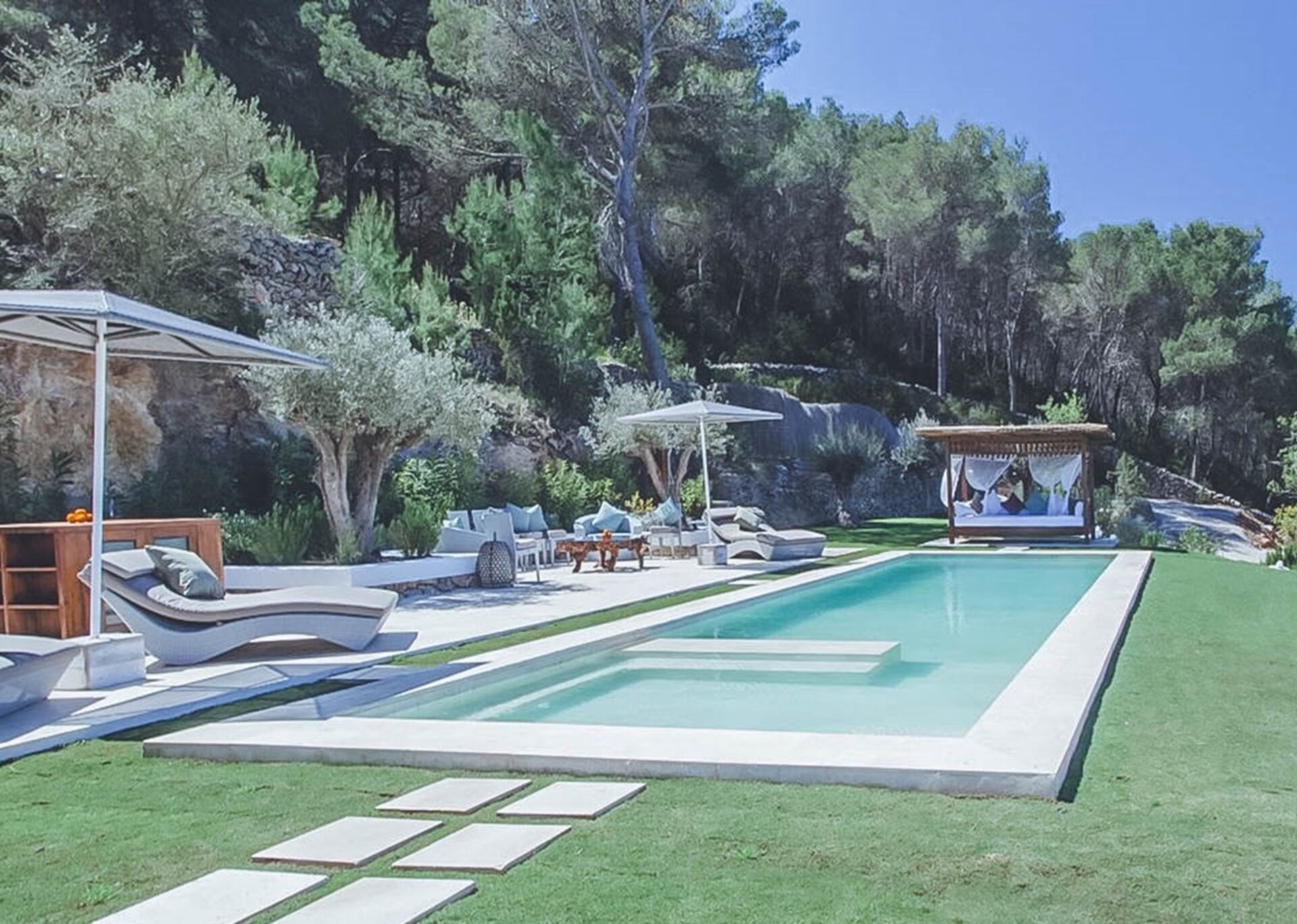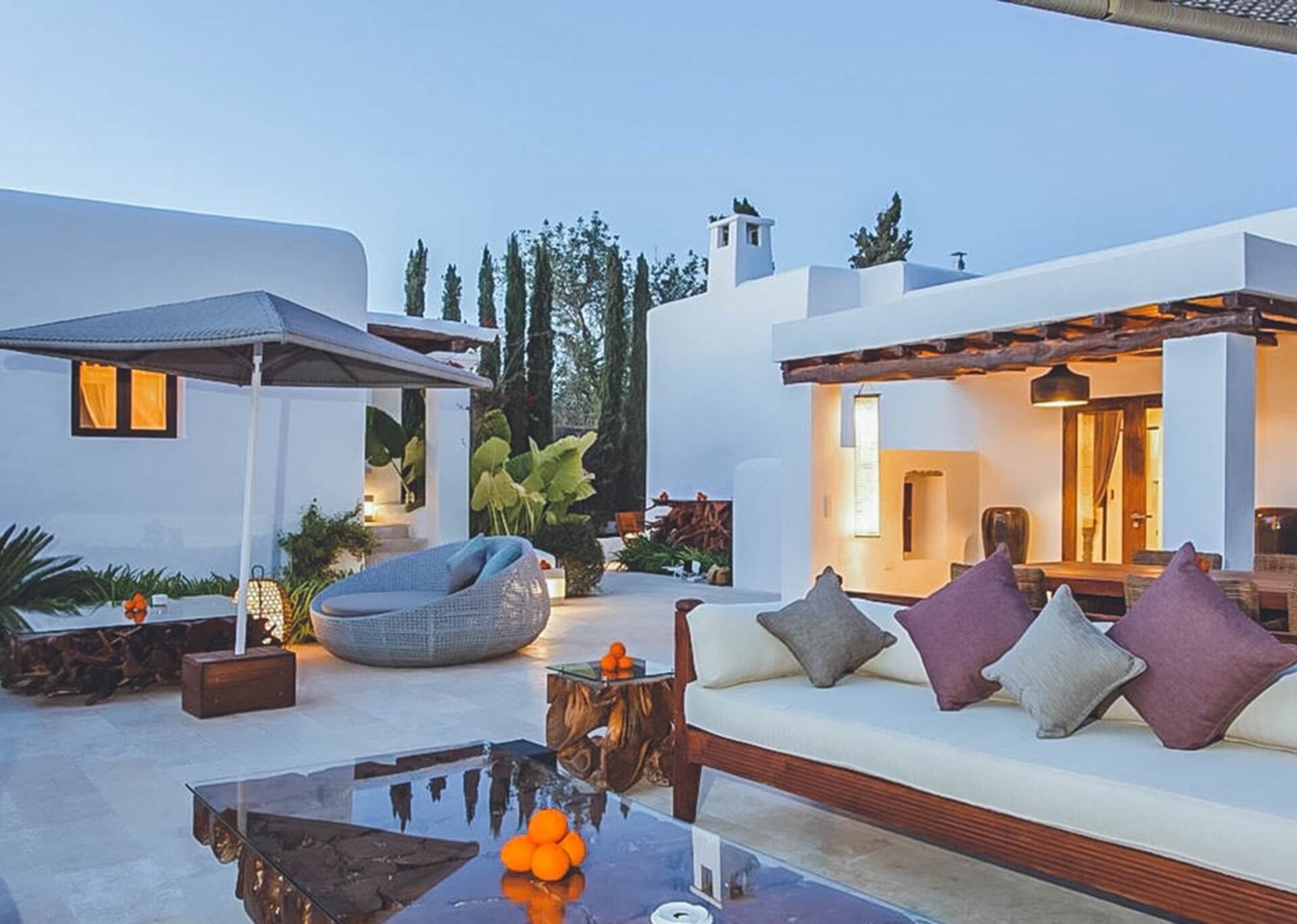 Nirvana gracefully blends contemporary style with the traditional Ibizan architecture, infused with Balinese influences in its interior and exterior decor. Wooden beamed ceilings, a fully equipped modern kitchen, four-poster beds, and tastefully designed stone masonry walls and tiling add to the effortless elegance of this home, seamlessly combining bohemian chic with modern luxury.