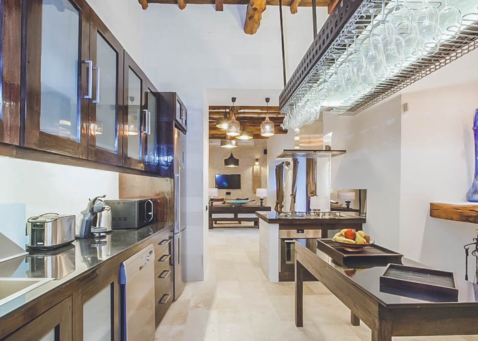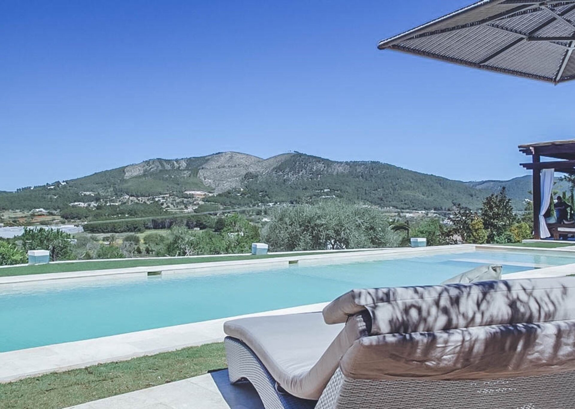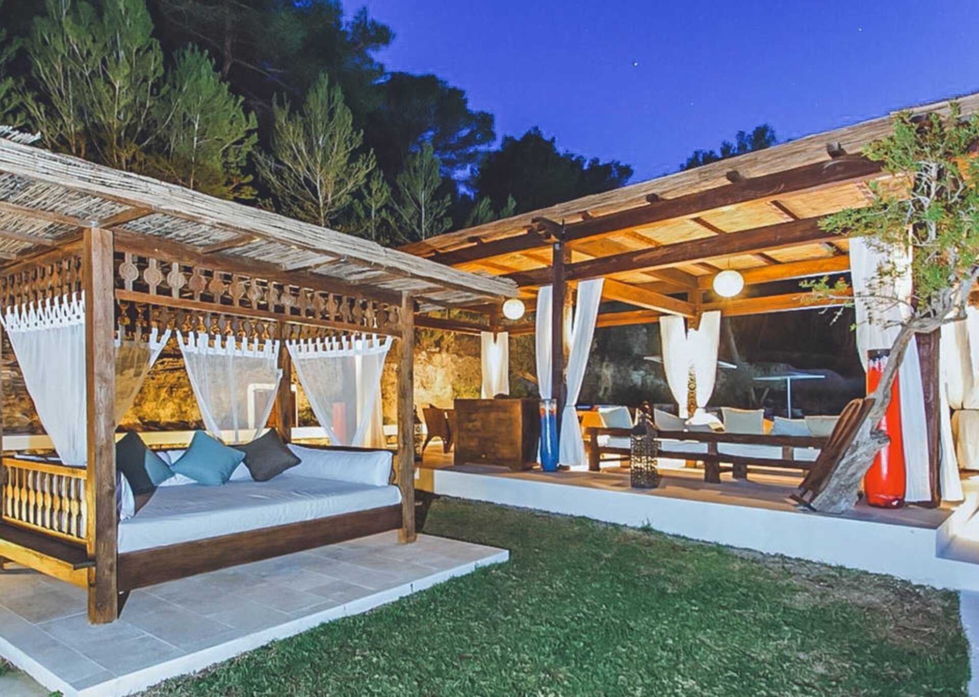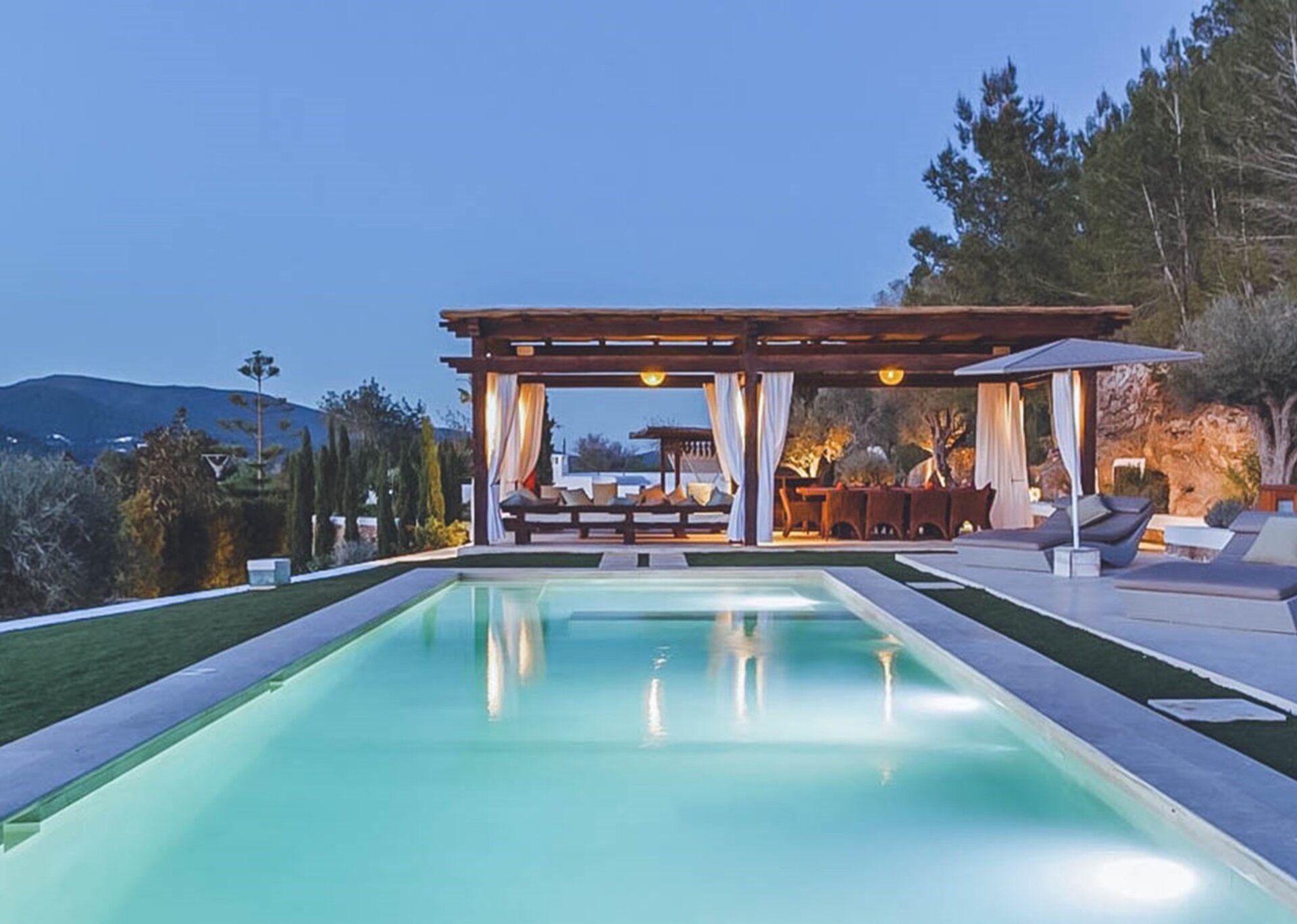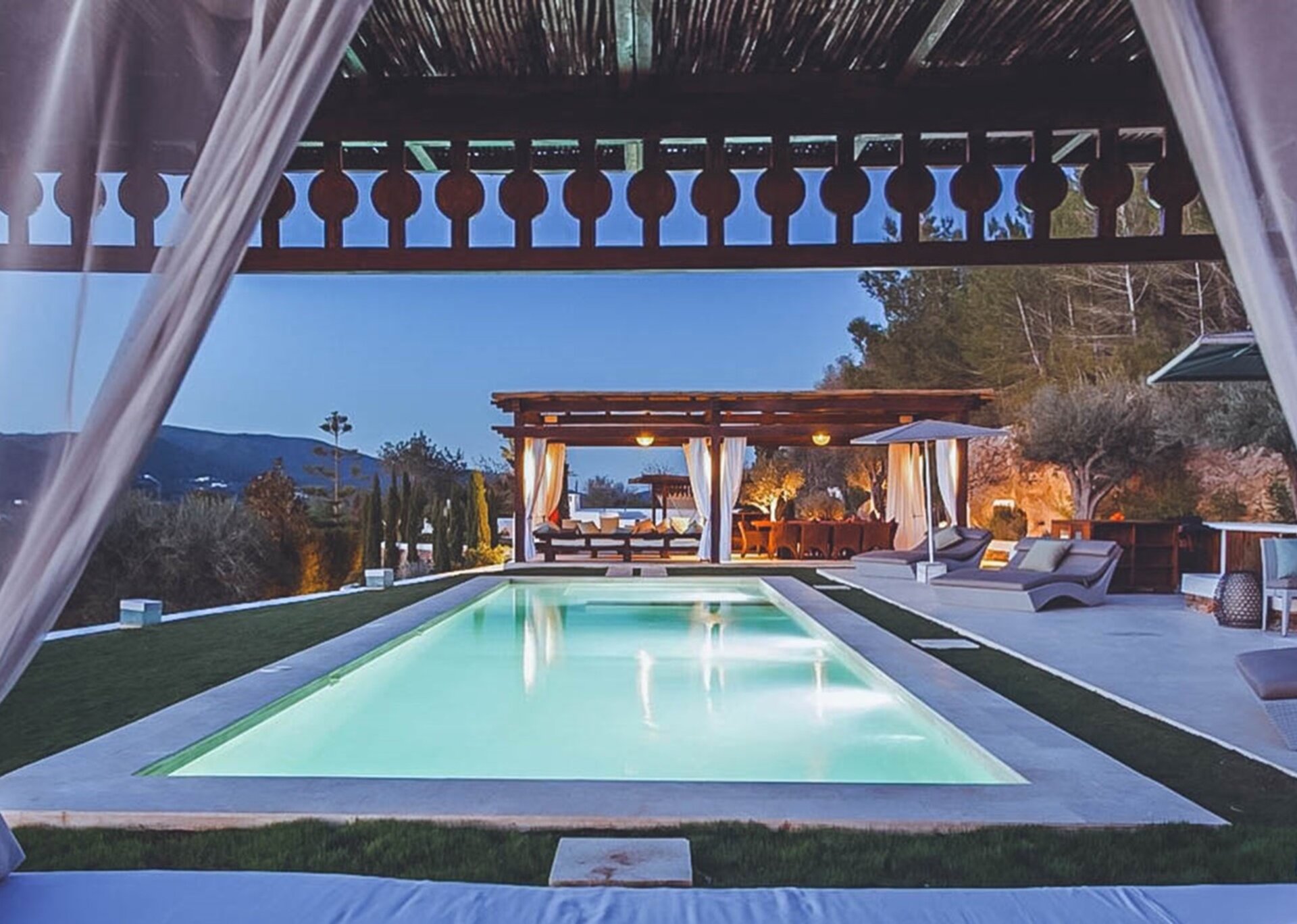 Nirvana gracefully blends contemporary style with the traditional Ibizan architecture, infused with Balinese influences in its interior and exterior decor. Wooden beamed ceilings, a fully equipped modern kitchen, four-poster beds, and tastefully designed stone masonry walls and tiling add to the effortless elegance of this home, seamlessly combining bohemian chic with modern luxury.