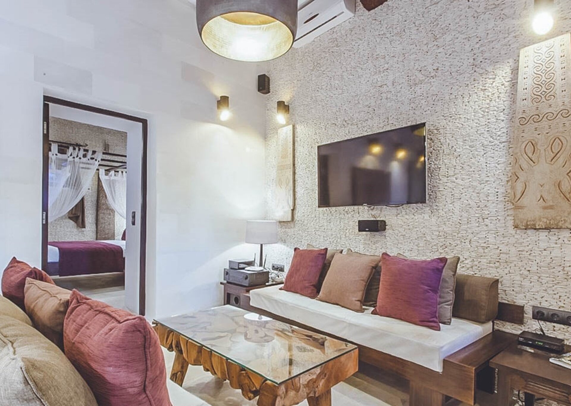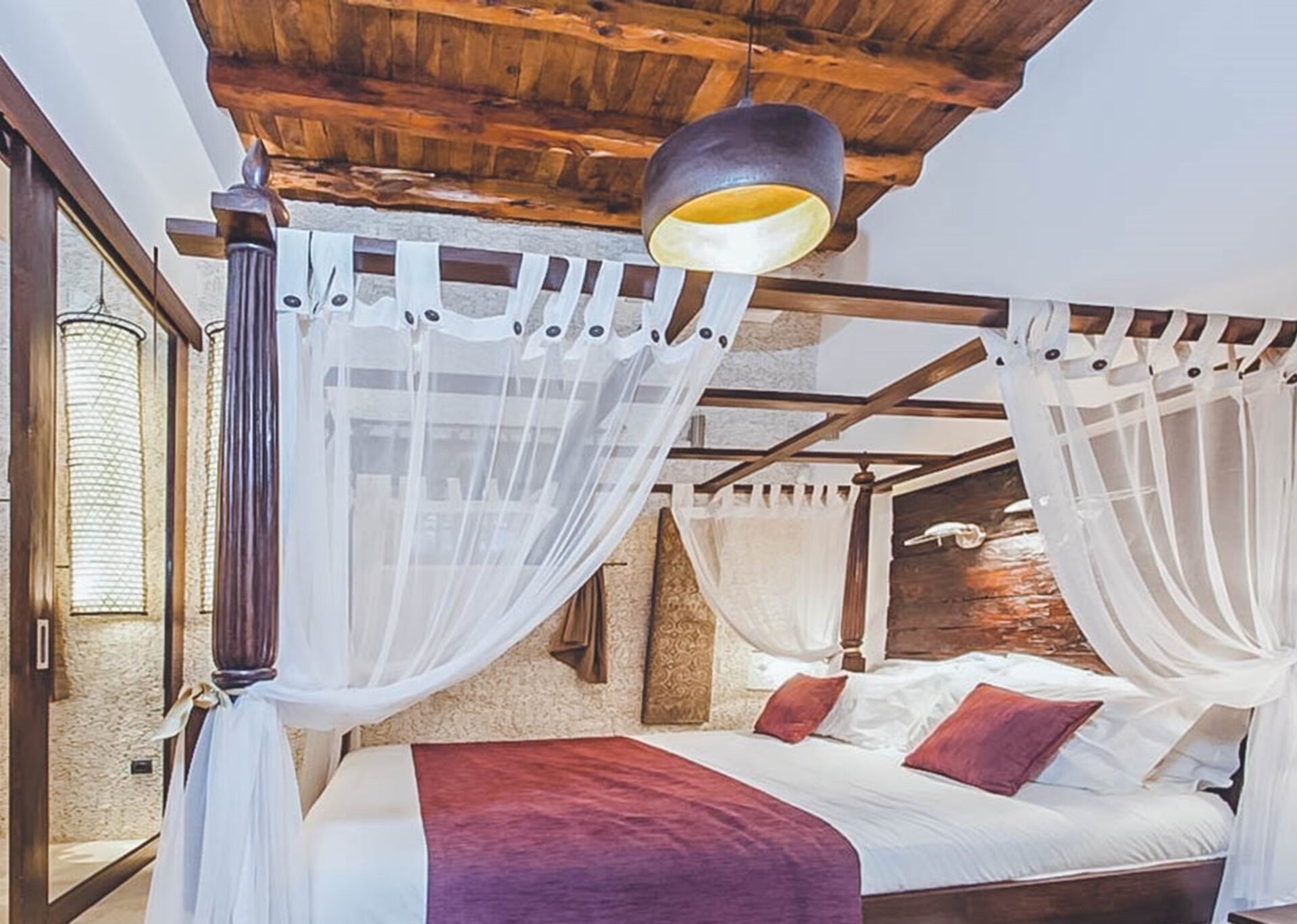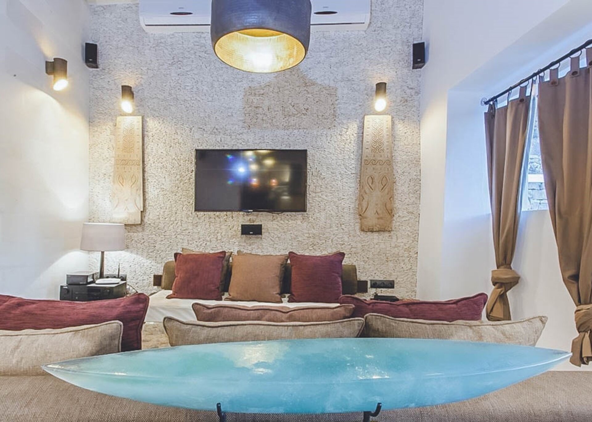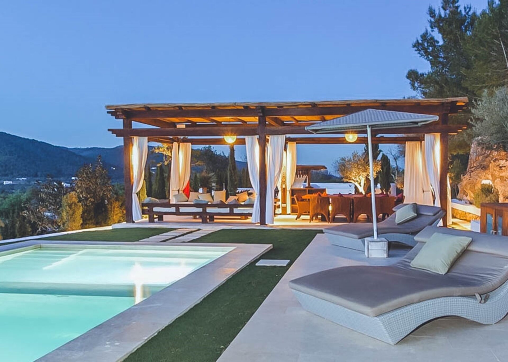 Nirvana gracefully blends contemporary style with the traditional Ibizan architecture, infused with Balinese influences in its interior and exterior decor. Wooden beamed ceilings, a fully equipped modern kitchen, four-poster beds, and tastefully designed stone masonry walls and tiling add to the effortless elegance of this home, seamlessly combining bohemian chic with modern luxury.