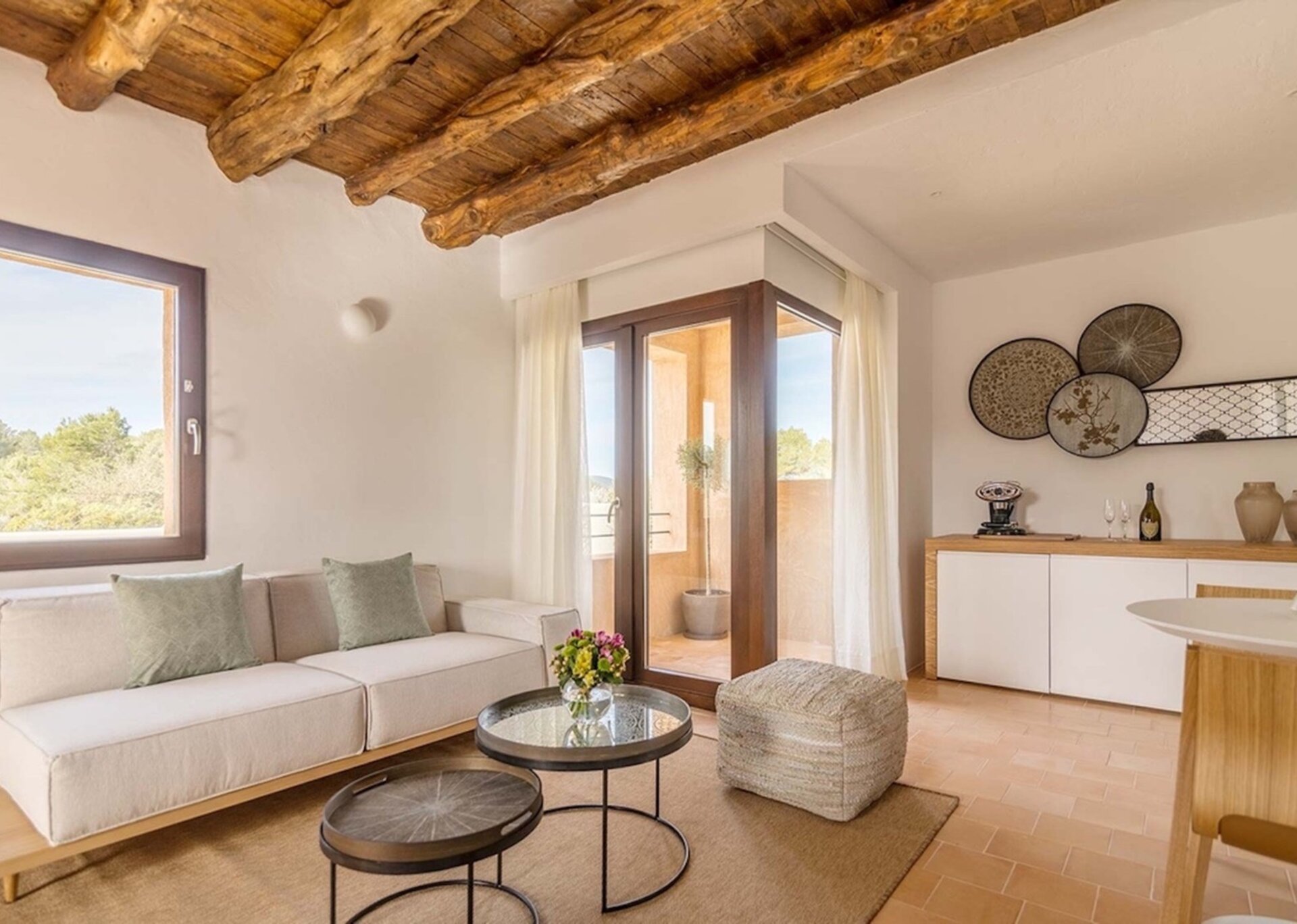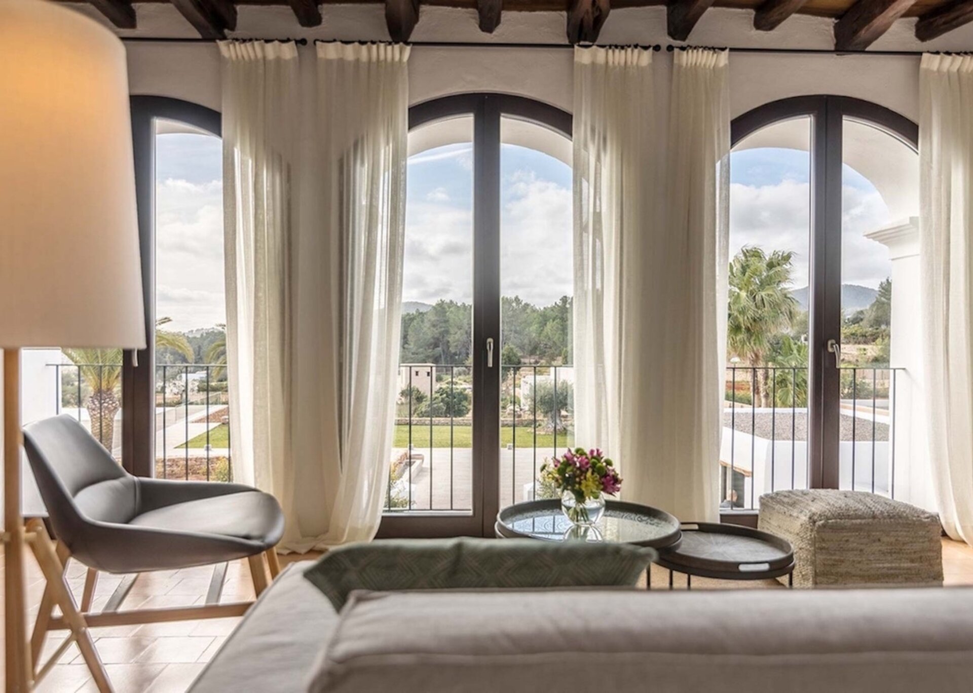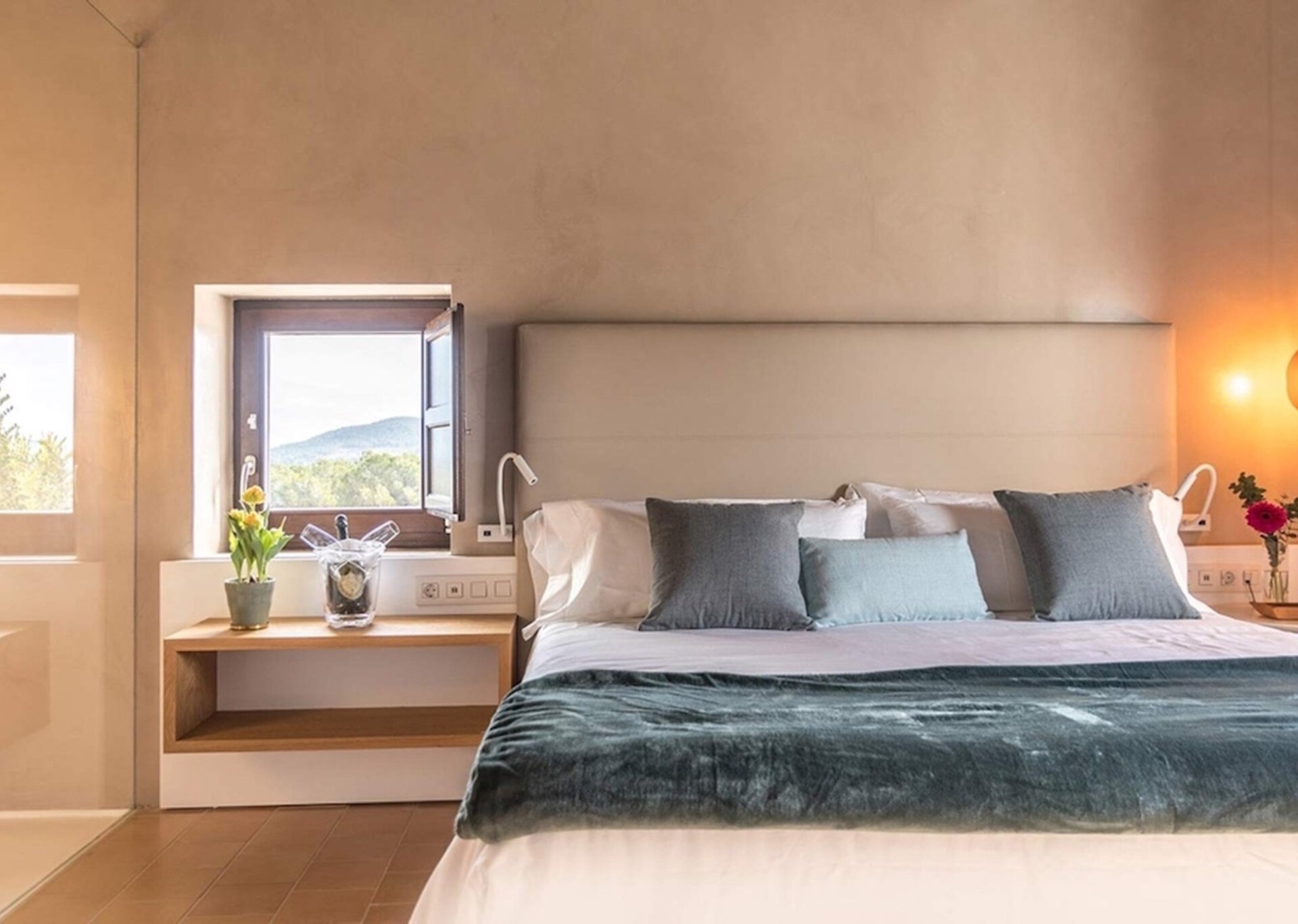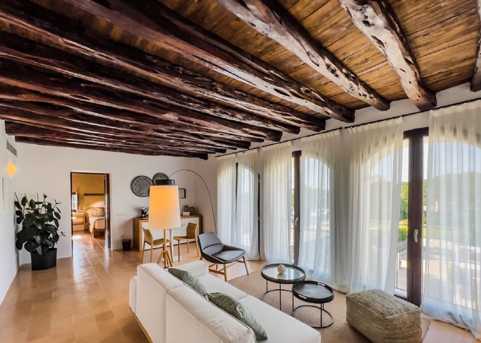 Immerse yourself in the lush fruit orchards, Mediterranean flora, and awe-inspiring vistas that offer glimpses of the bell tower of the historic church of Sant Llorenç and the bay of Santa Eulària des Riu. Finca Celeste truly harmonizes with its surroundings, striking a perfect balance between natural splendor and luxurious living.