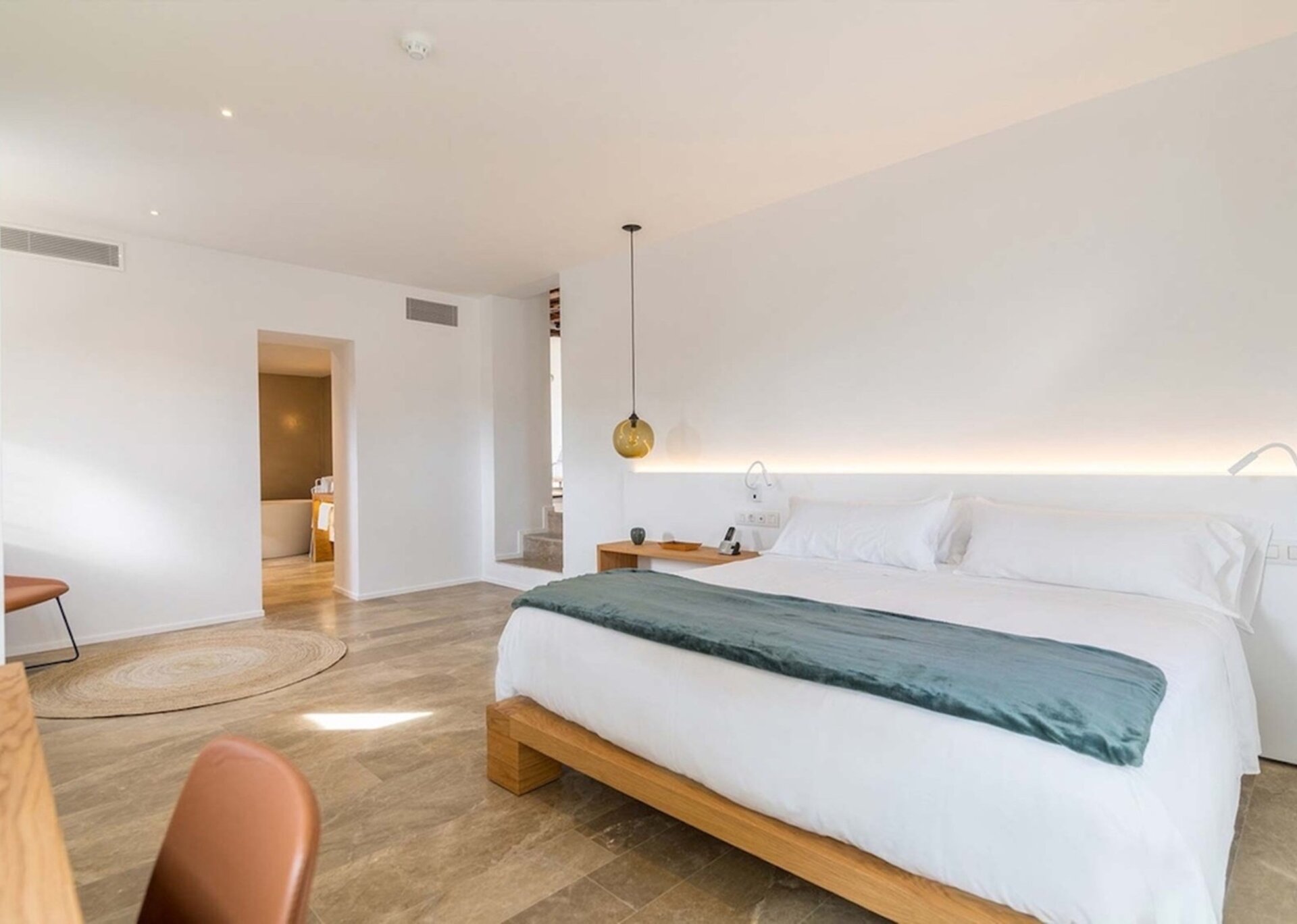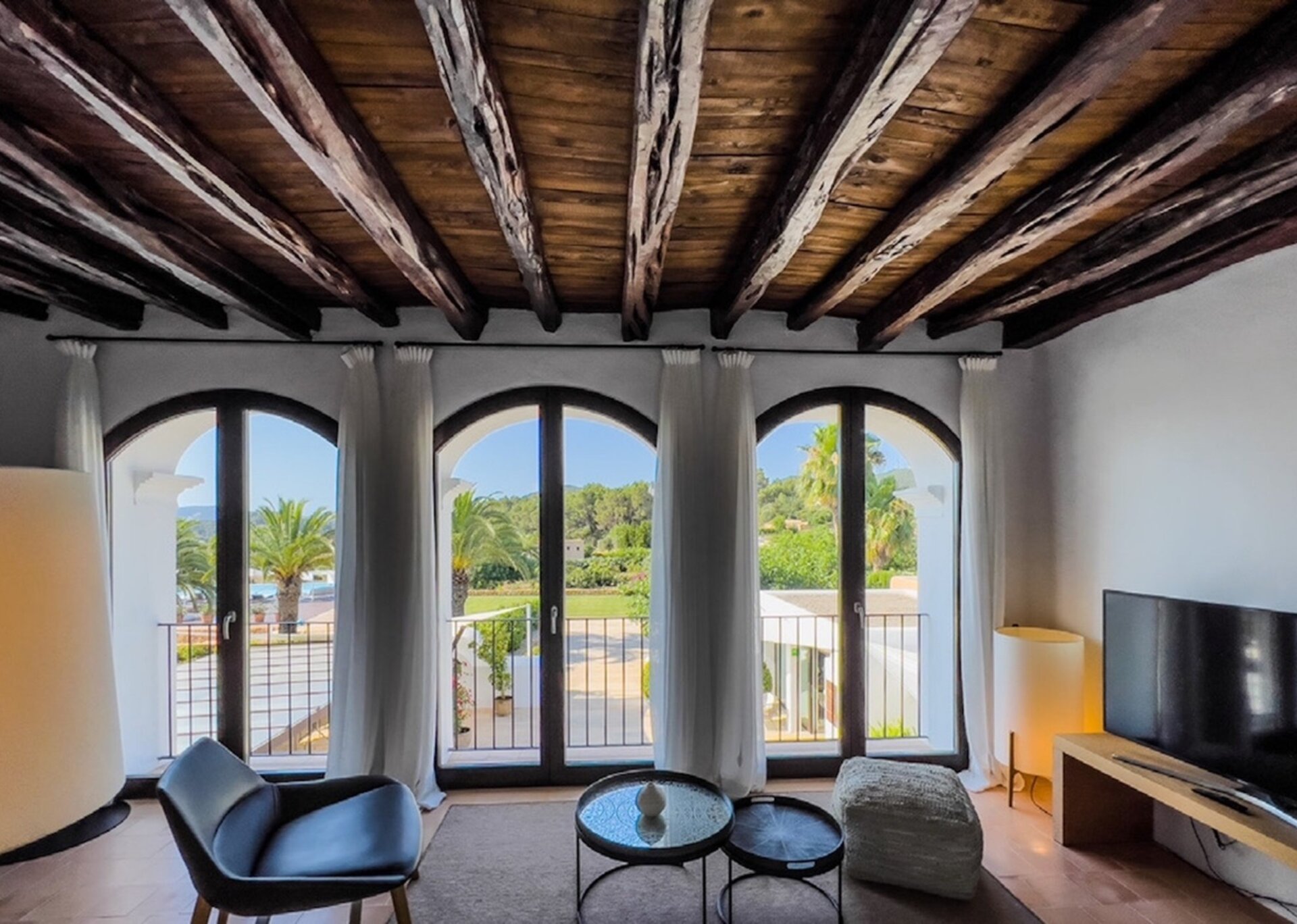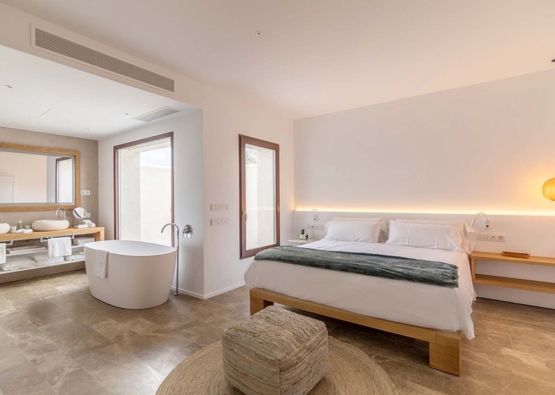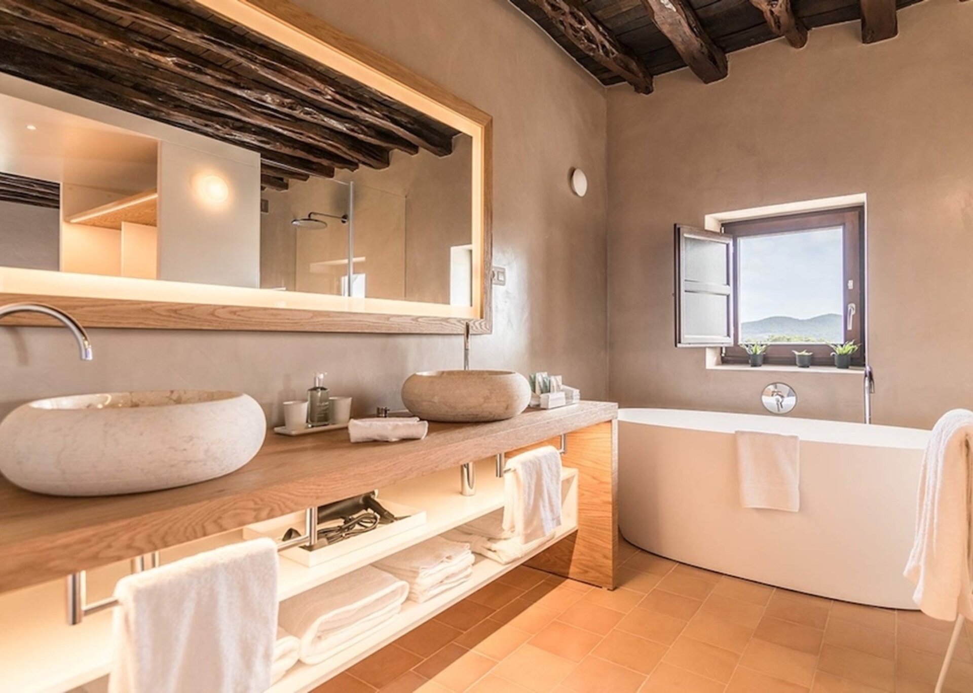 Immerse yourself in the lush fruit orchards, Mediterranean flora, and awe-inspiring vistas that offer glimpses of the bell tower of the historic church of Sant Llorenç and the bay of Santa Eulària des Riu. Finca Celeste truly harmonizes with its surroundings, striking a perfect balance between natural splendor and luxurious living.