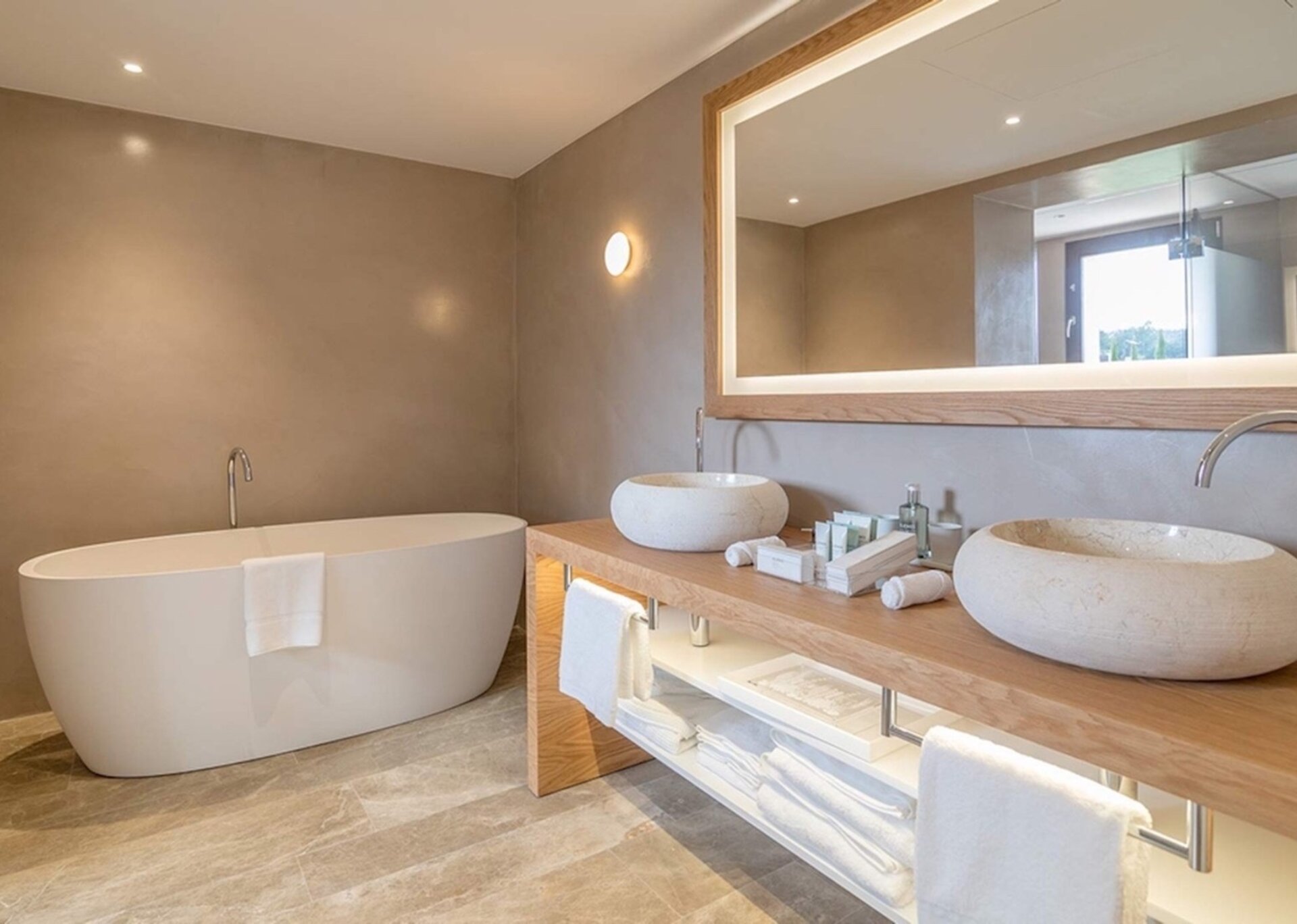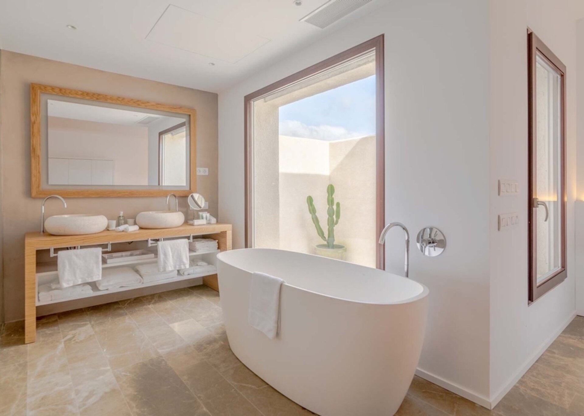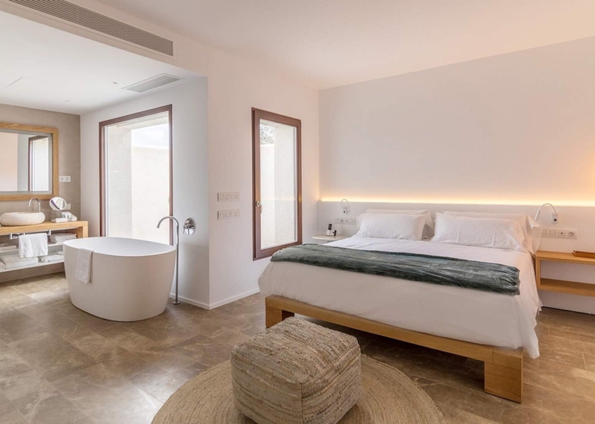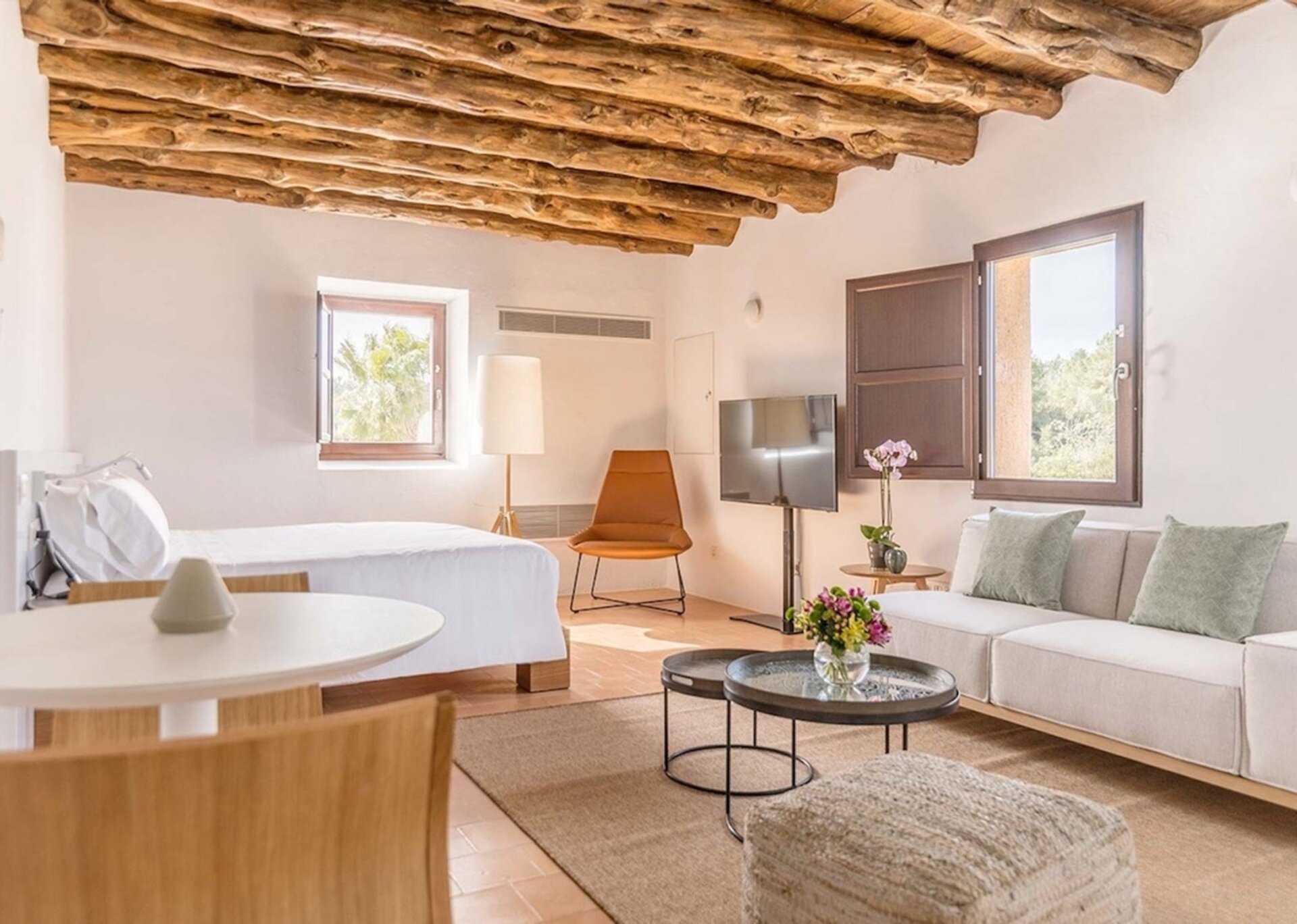 Immerse yourself in the lush fruit orchards, Mediterranean flora, and awe-inspiring vistas that offer glimpses of the bell tower of the historic church of Sant Llorenç and the bay of Santa Eulària des Riu. Finca Celeste truly harmonizes with its surroundings, striking a perfect balance between natural splendor and luxurious living.