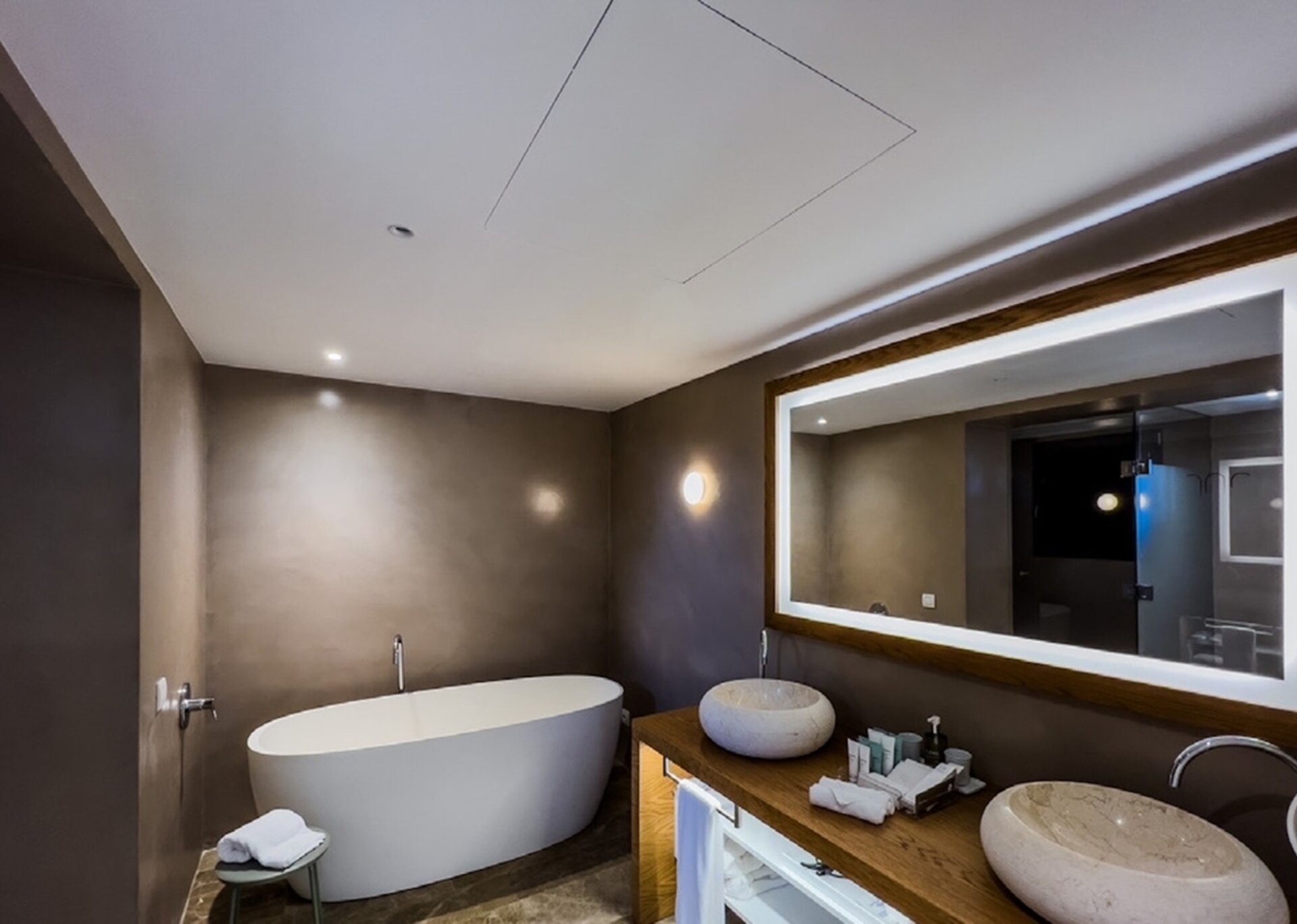Unwind and rejuvenate in absolute comfort at the fully equipped spa, complete with a sauna, hammam, and state-of-the-art fitness equipment. Furthermore, one of the thirteen bedrooms features a private swimming pool, while two others offer refreshing plunge pools, enhancing the overall sense of luxury.