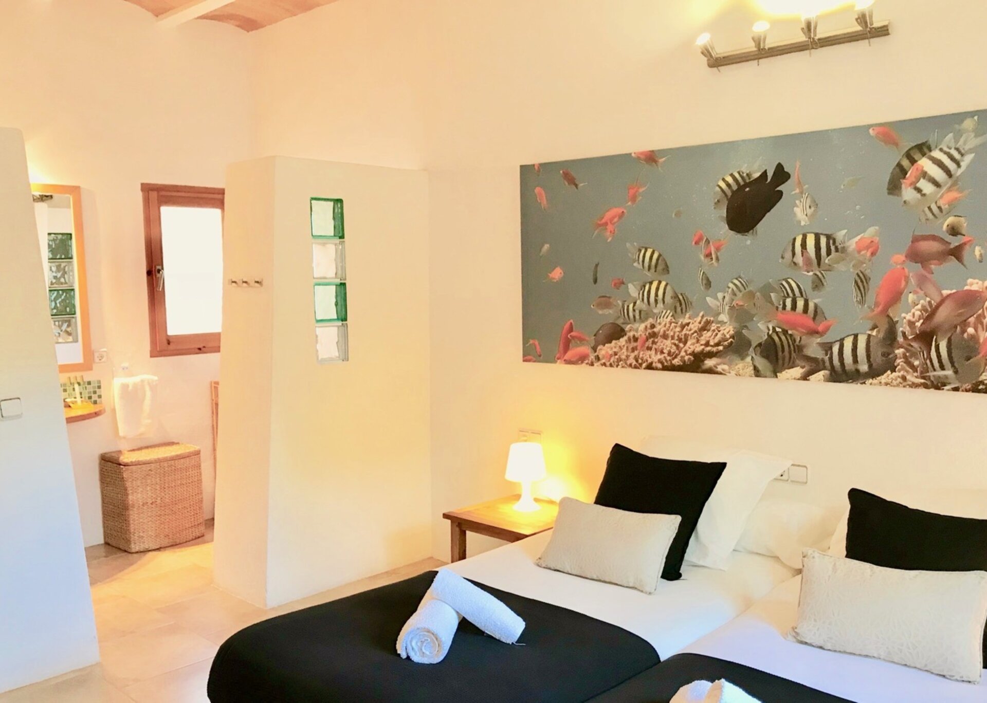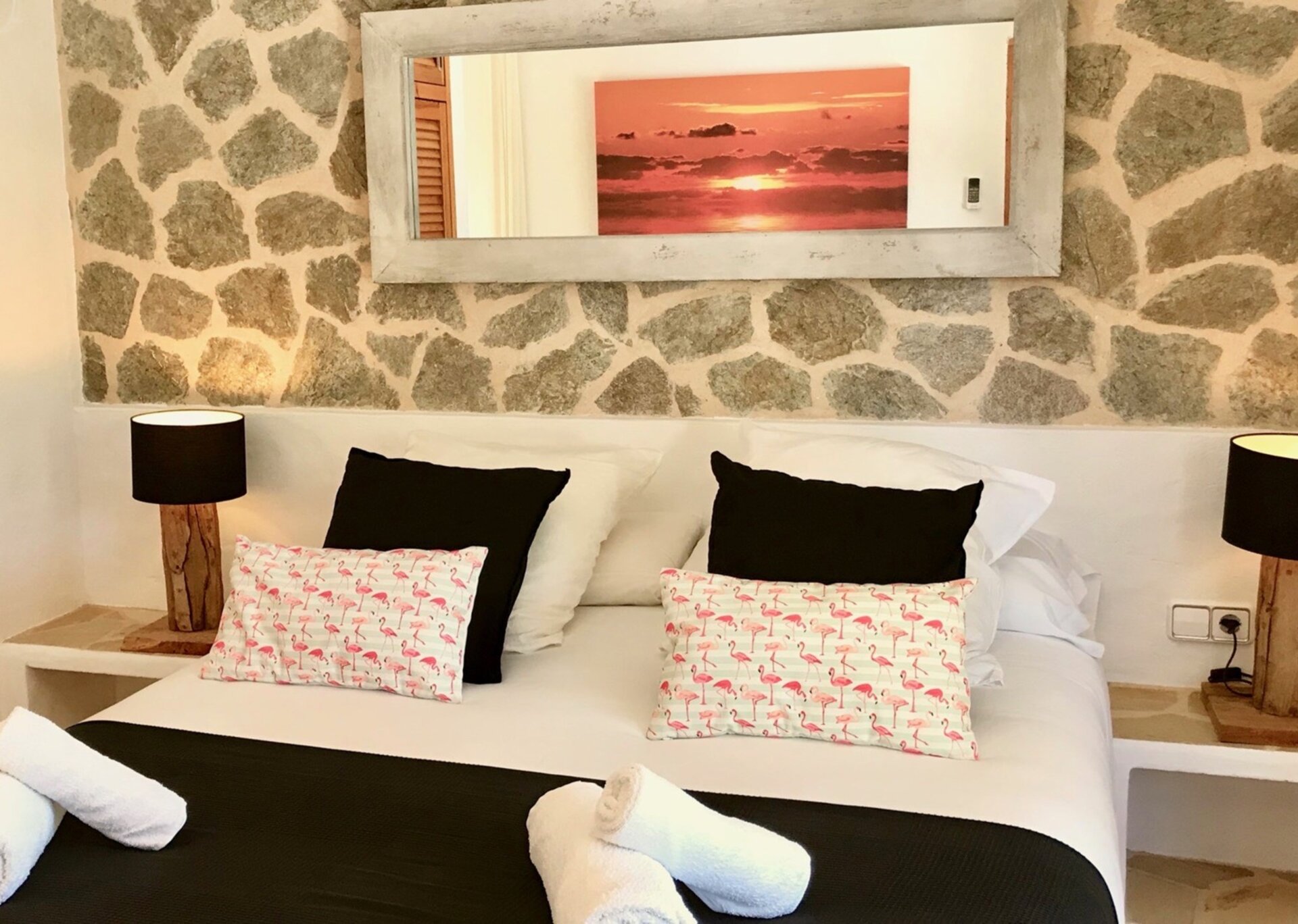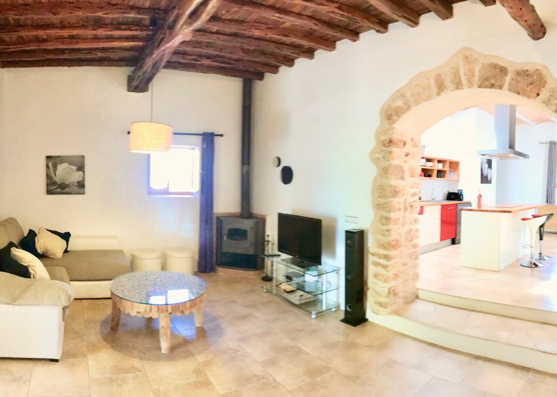 Welcome to this modern villa, where the charm of a traditional house blends seamlessly with contemporary design. Nestled in a picturesque and serene location surrounded by nature, it offers breathtaking views of a beautiful valley and the enchanting isle of Es Vedrá. This rural haven seamlessly combines charm and comfort.