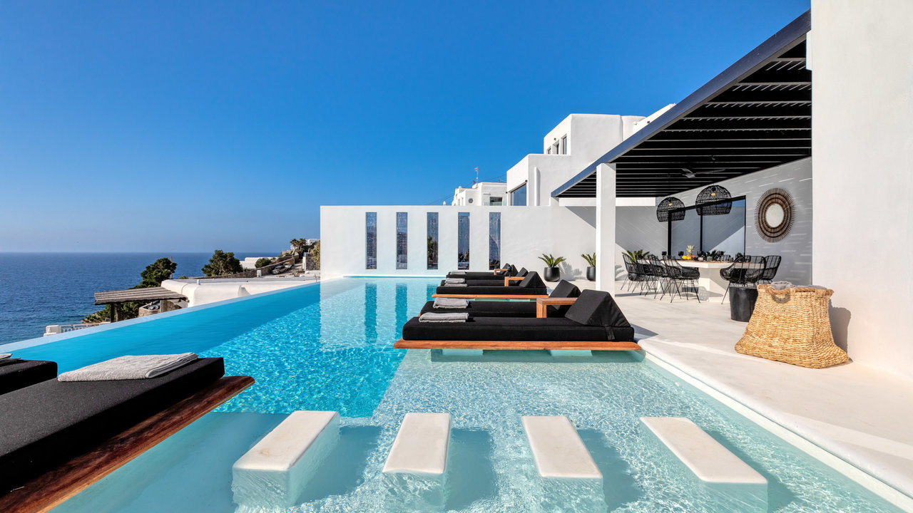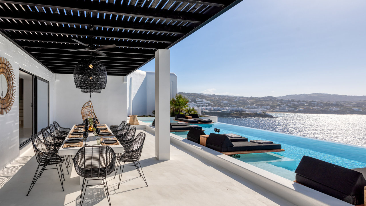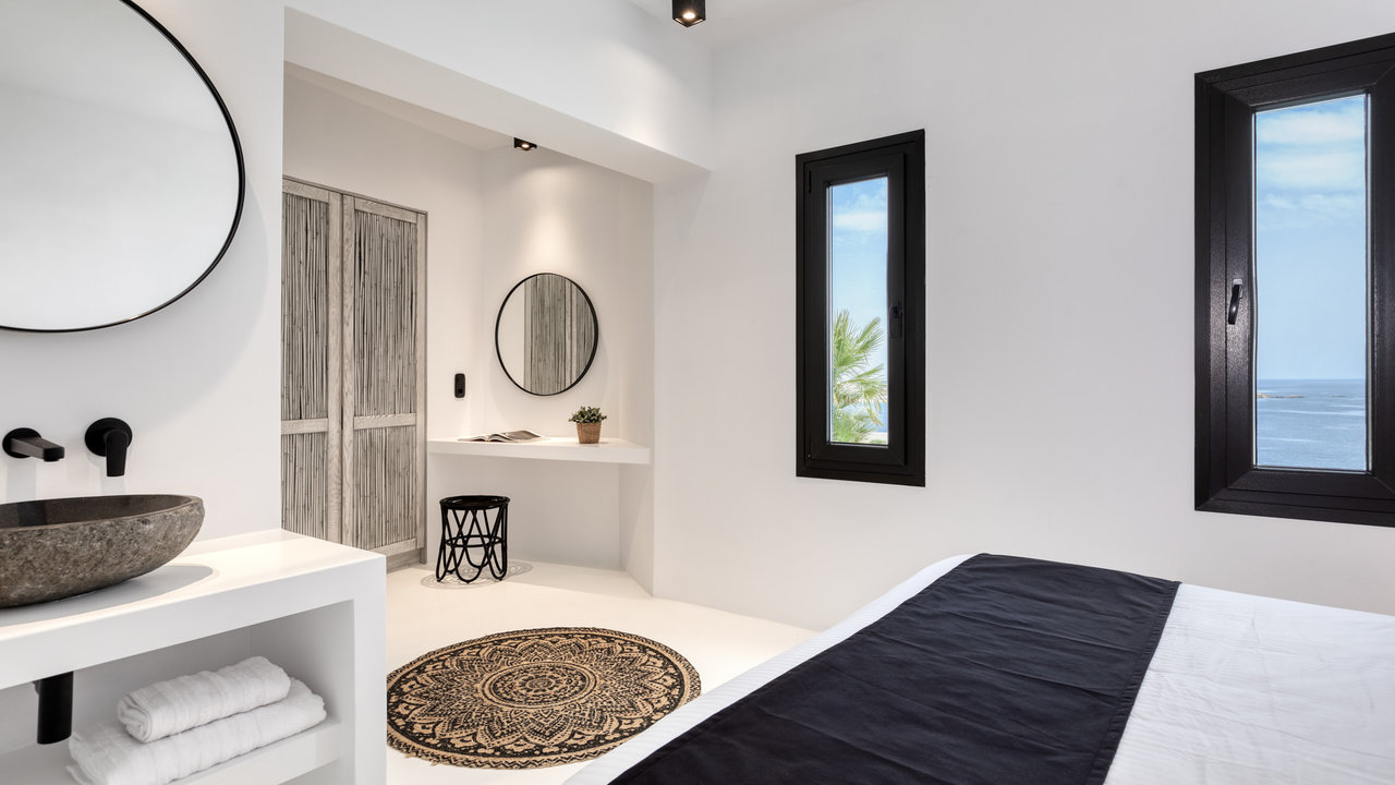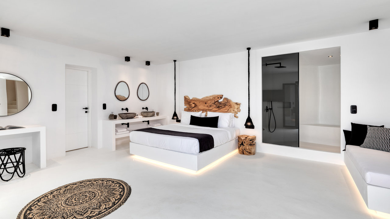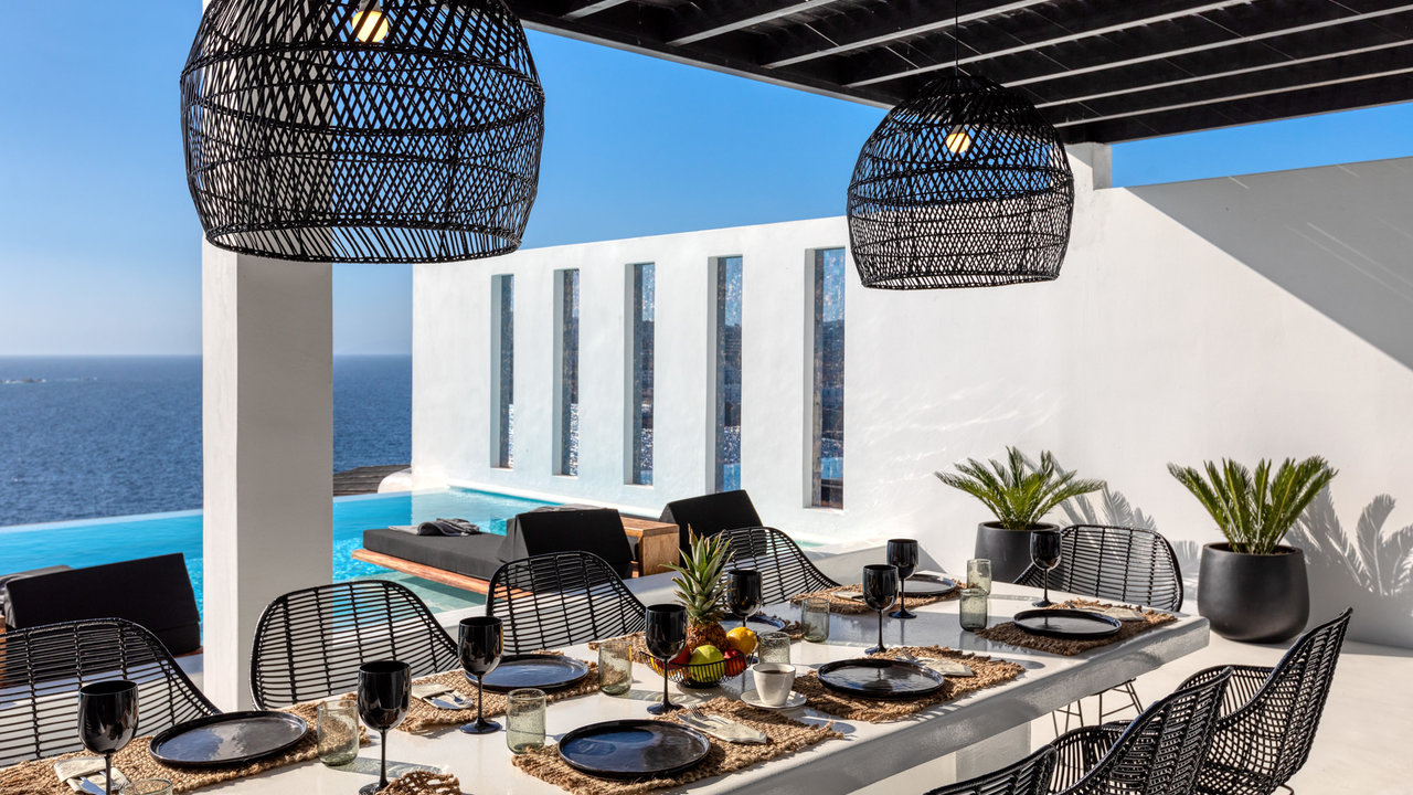 Combining iconic Cycladic decor with minimal elements, the tastefully designed Villa Noire offers 6 bedrooms with sea view and en-suite bathrooms,spacious outdoor and indoor lounging and dining area for 12 guests and a fully equipped kitchen.