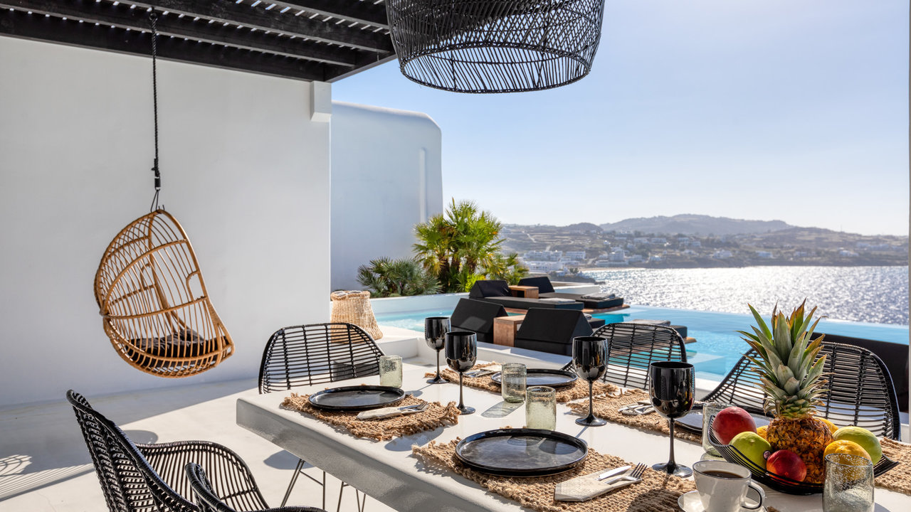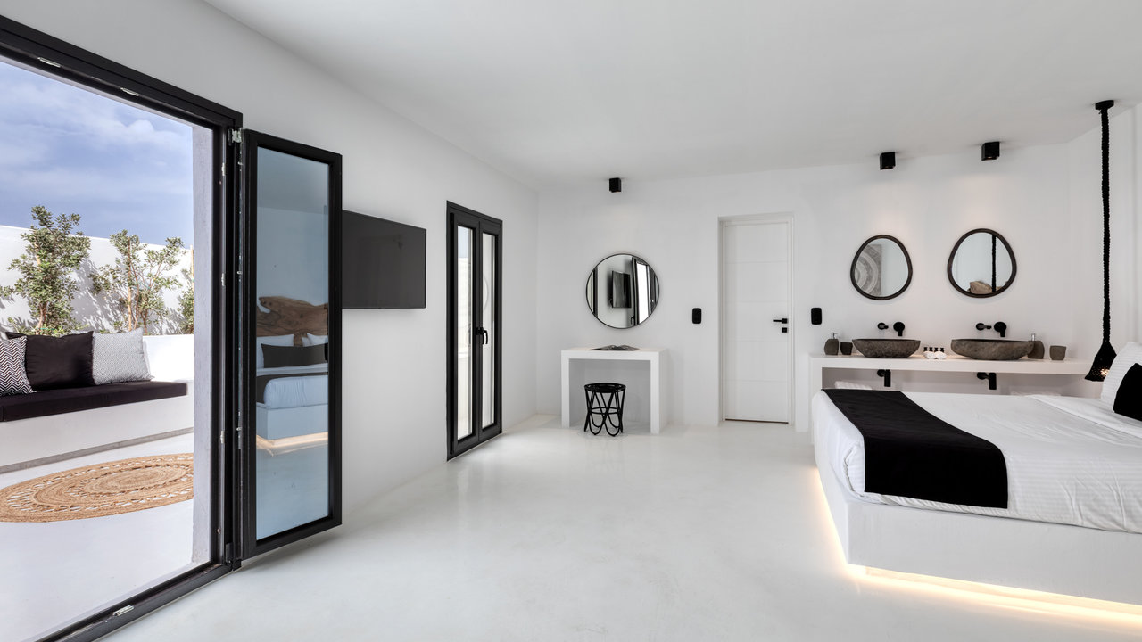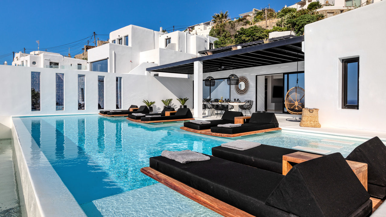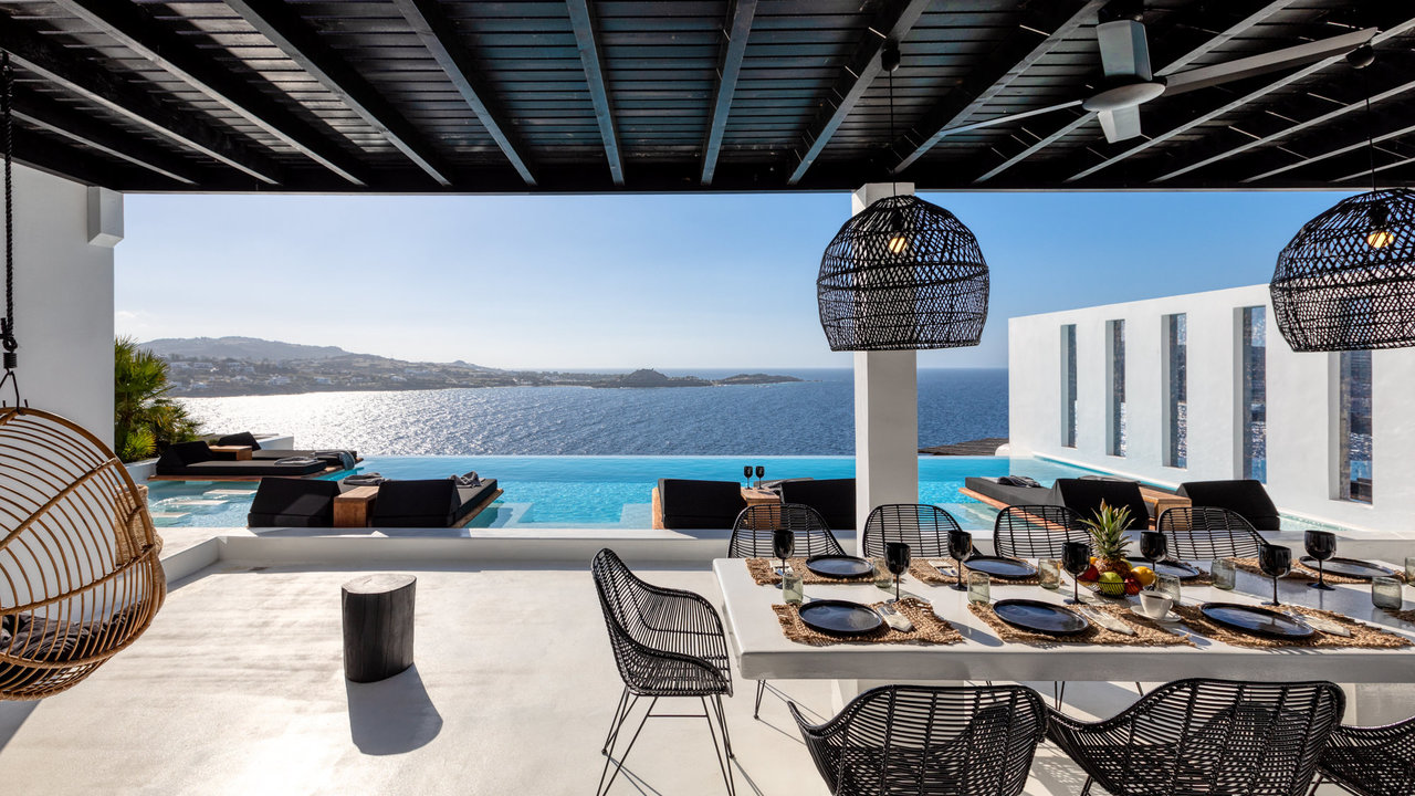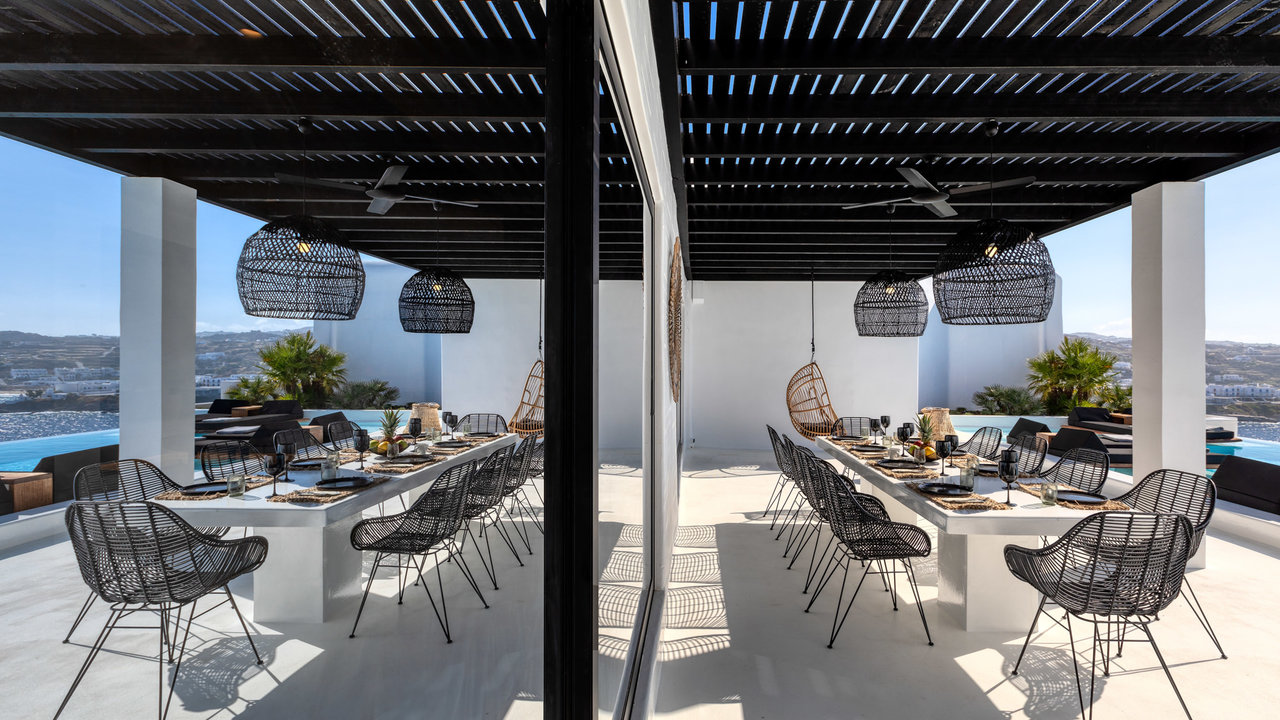 Combining iconic Cycladic decor with minimal elements, the tastefully designed Villa Noire offers 6 bedrooms with sea view and en-suite bathrooms,spacious outdoor and indoor lounging and dining area for 12 guests and a fully equipped kitchen.