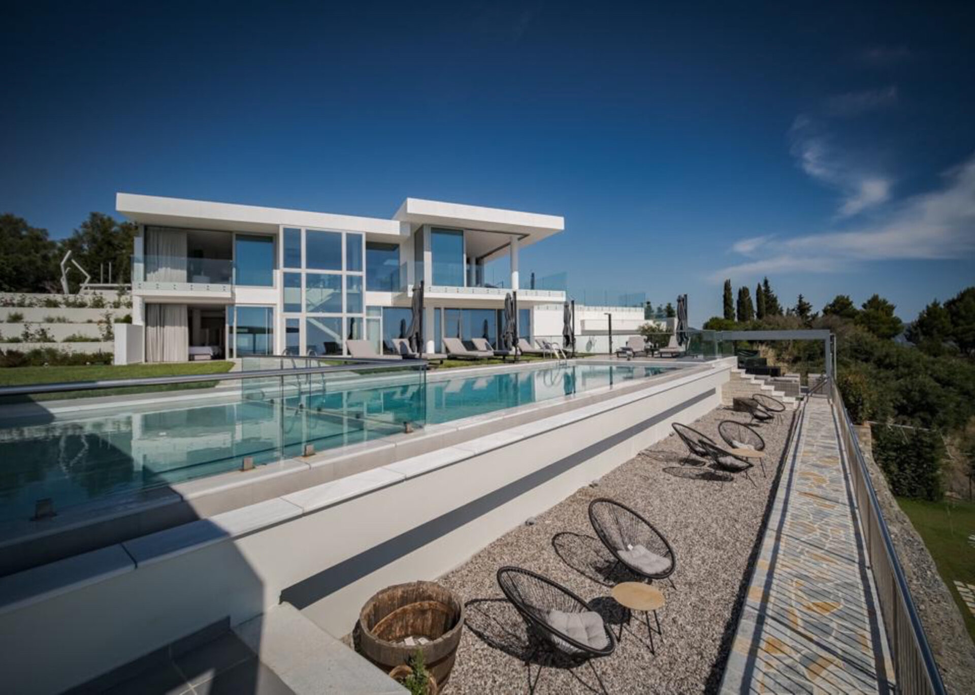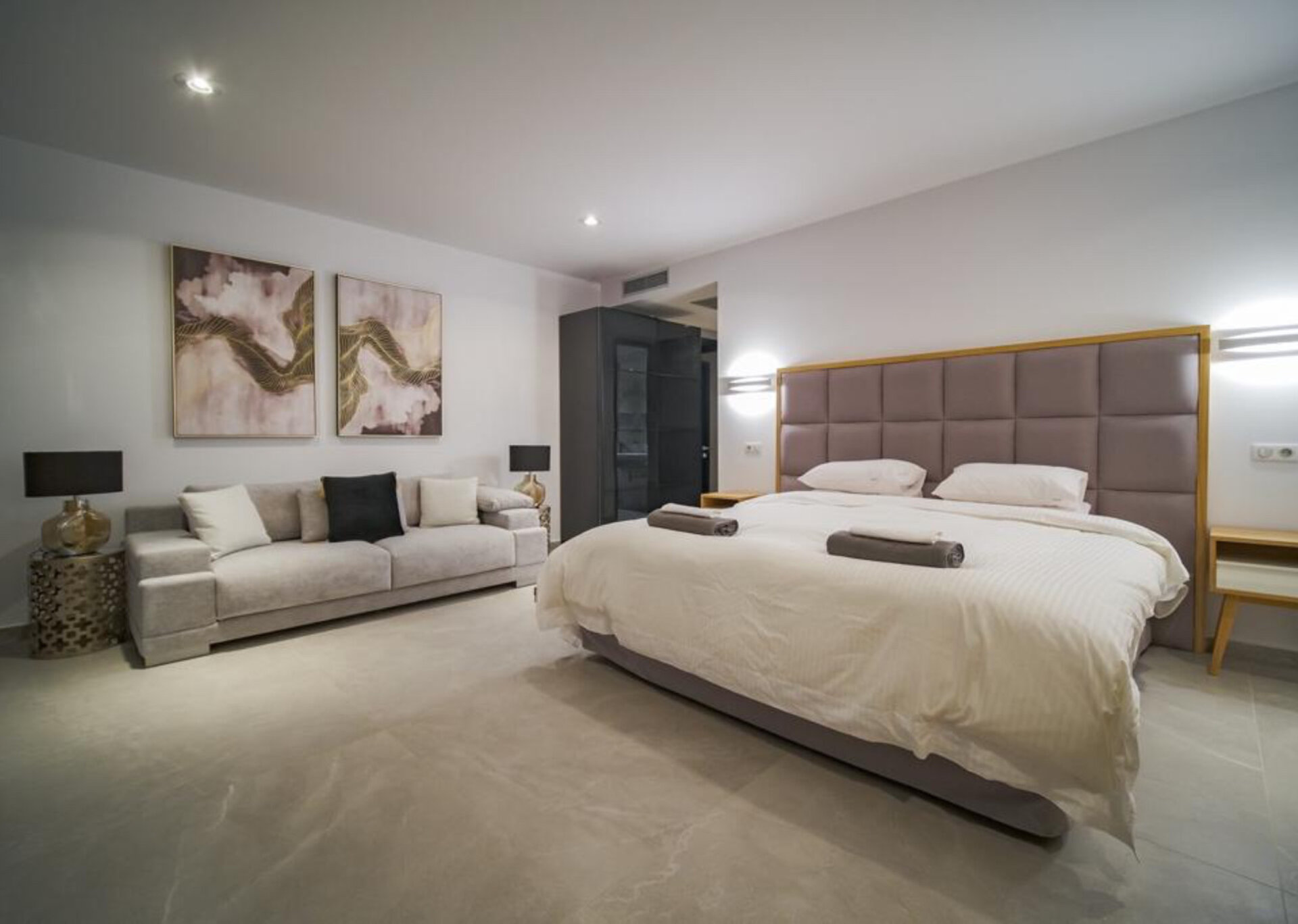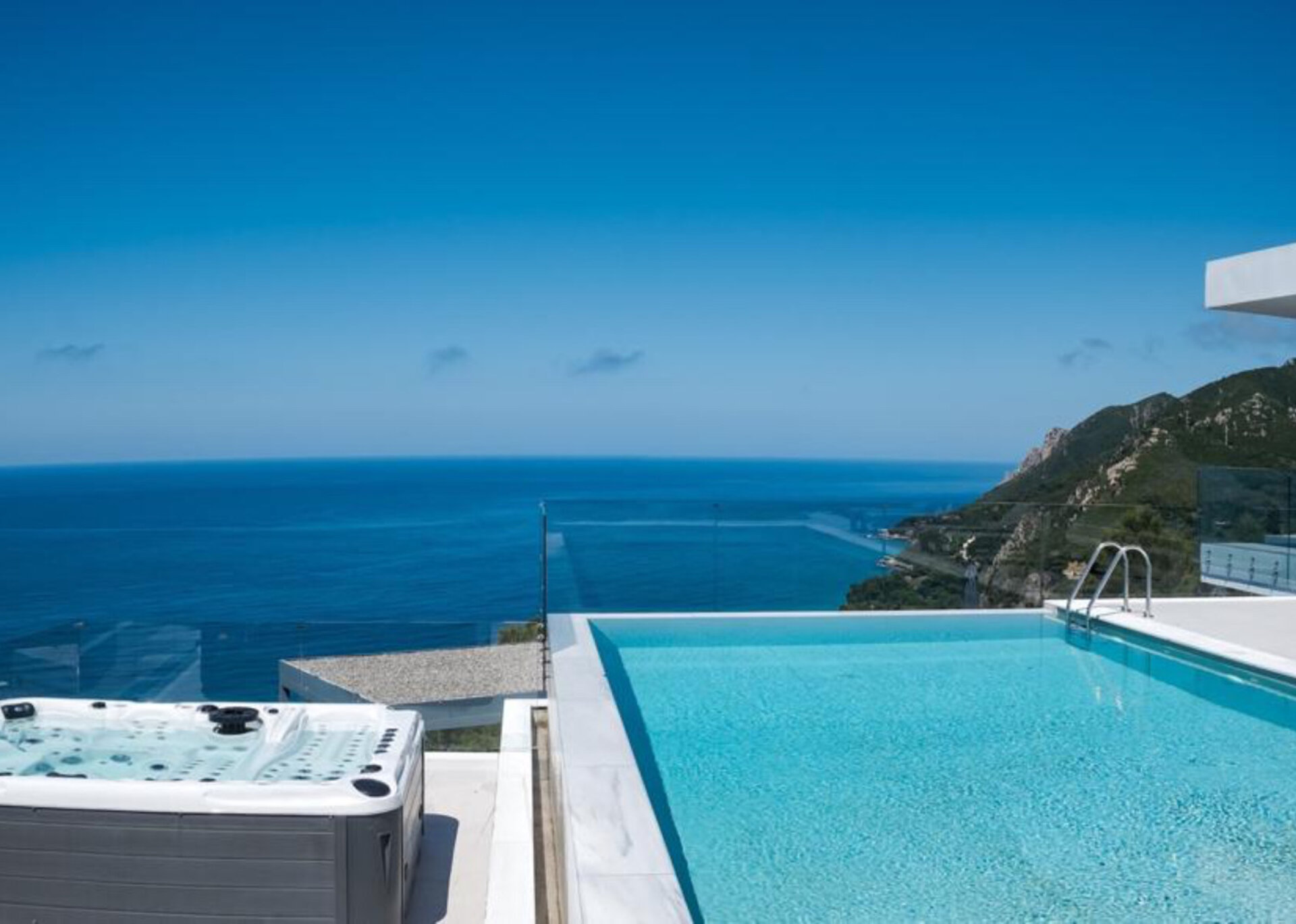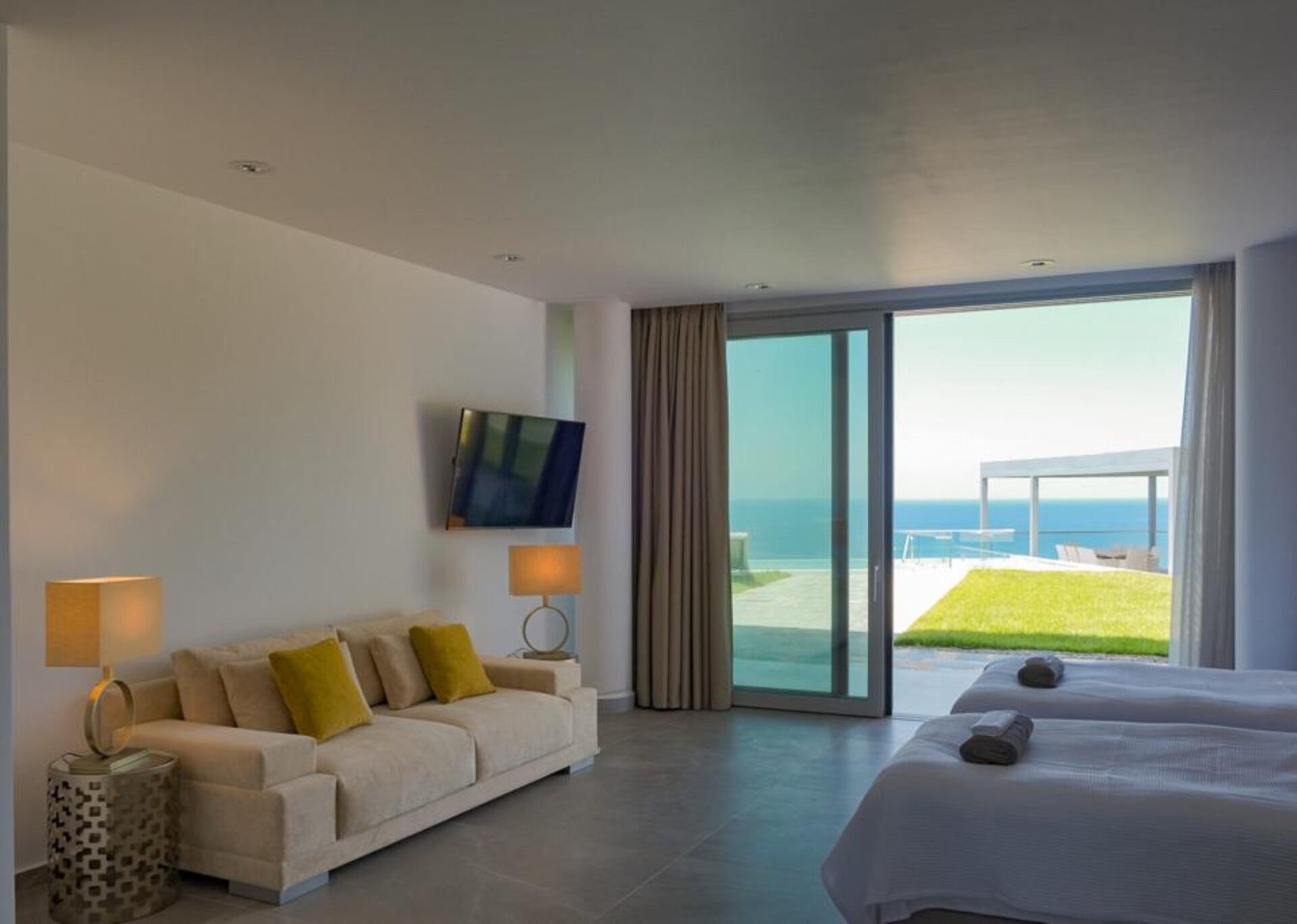 The villa is only 5 minutes away from Glyfada beach, making it easy to take advantage of its cafes and restaurants; less than 5 minutes from Pelekas beach; a walk away from Pelekas village center; 10 minutes walk from golf & tennis facilities; all while still maintaining complete privacy on your hilltop retreat. Enjoy stunning sunsets each day as you relax in this brand new villa featuring large dining & seating areas both inside & outside – perfect for entertaining friends or just enjoying some quiet time alone. Make Villa Nolan your home today!