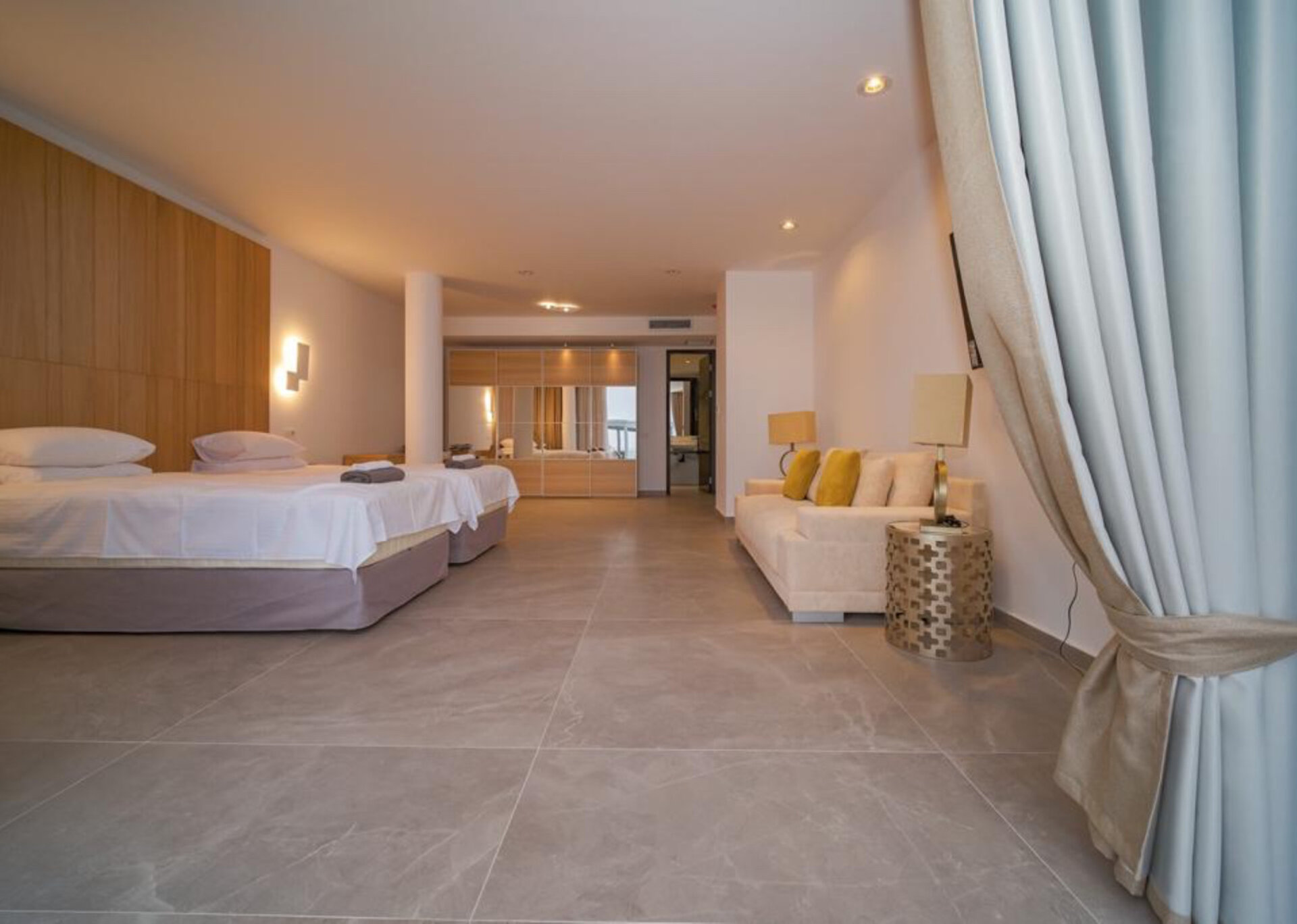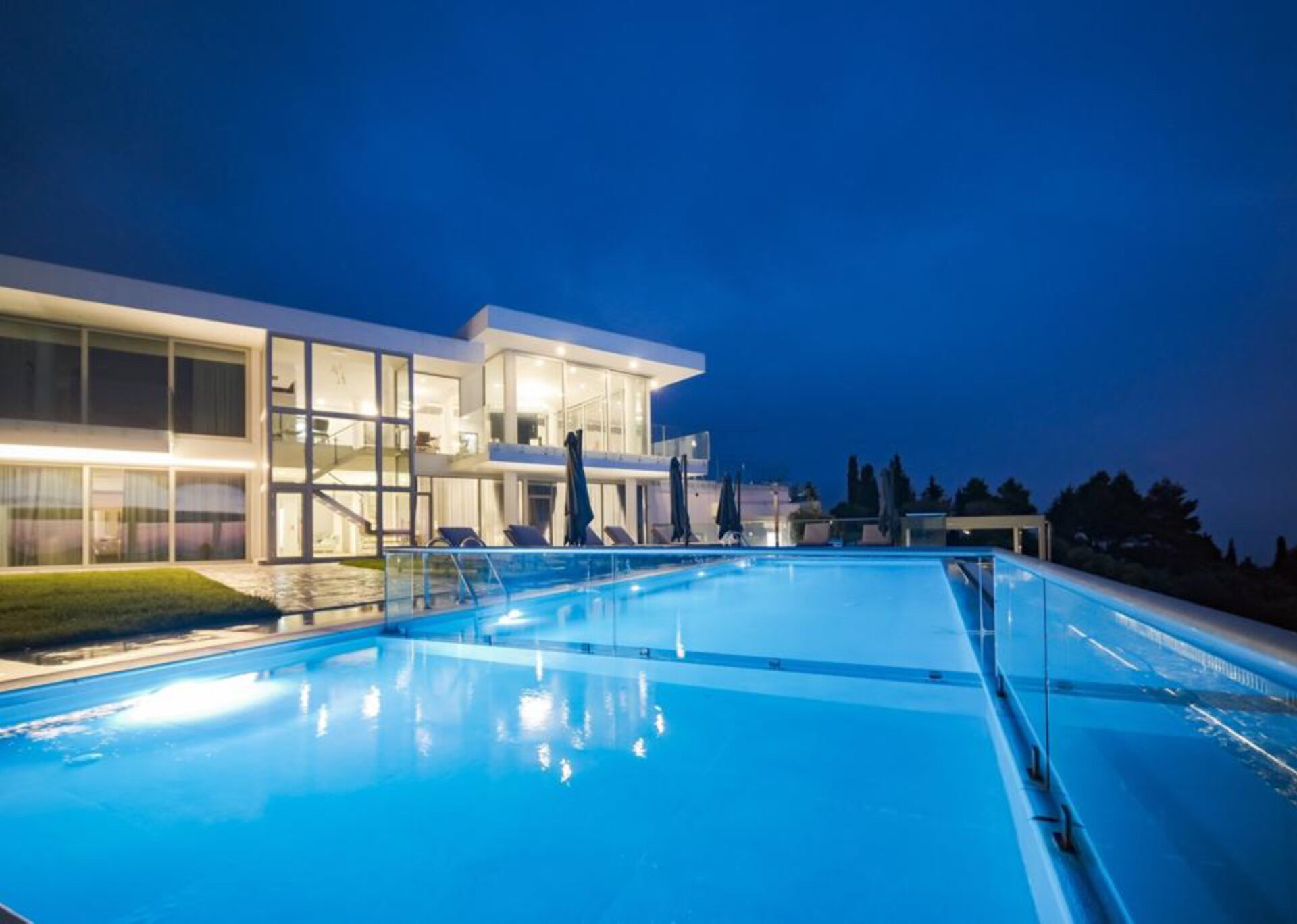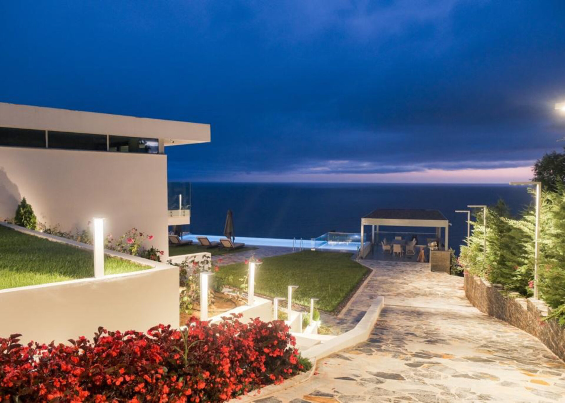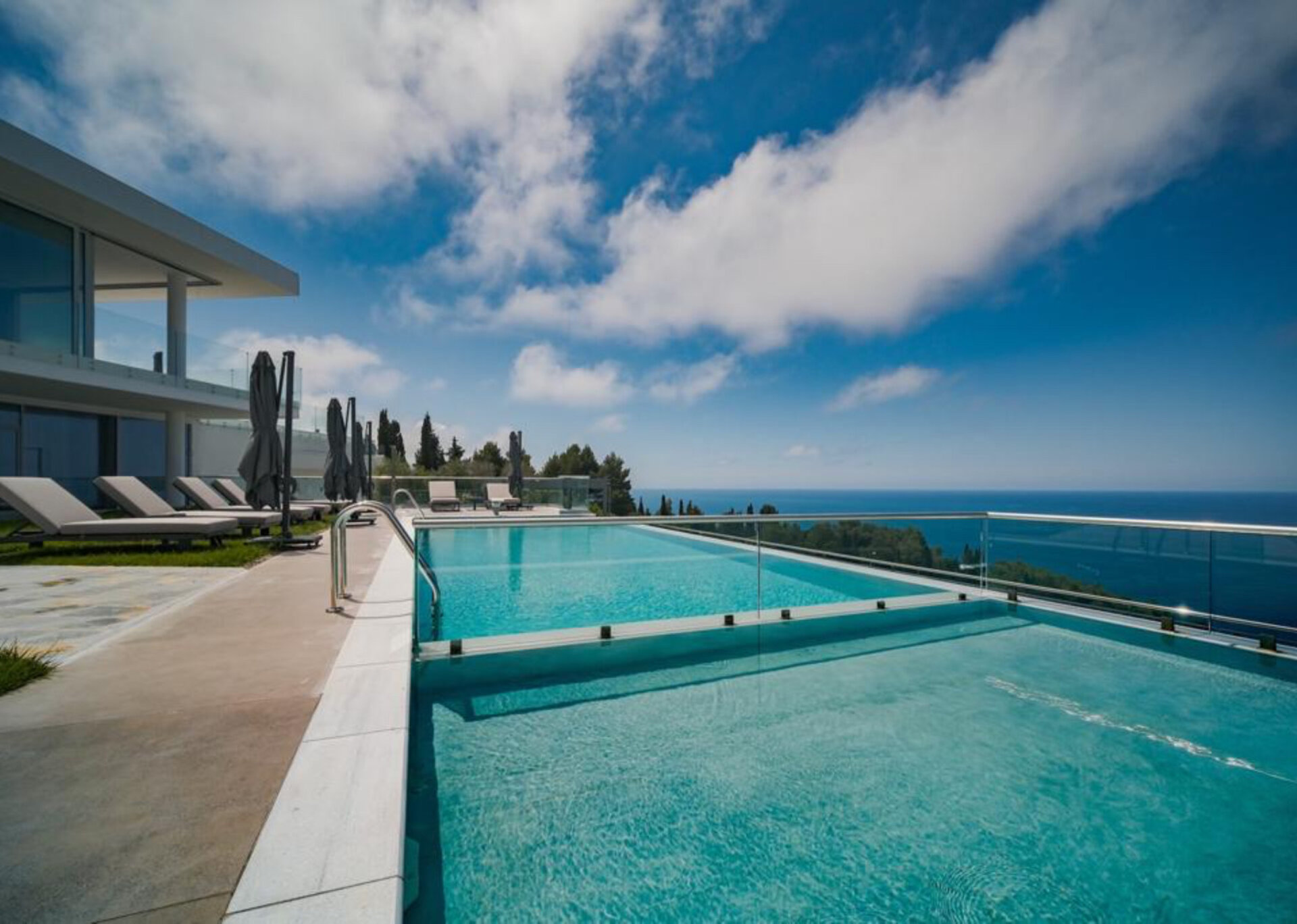 The villa is only 5 minutes away from Glyfada beach, making it easy to take advantage of its cafes and restaurants; less than 5 minutes from Pelekas beach; a walk away from Pelekas village center; 10 minutes walk from golf & tennis facilities; all while still maintaining complete privacy on your hilltop retreat. Enjoy stunning sunsets each day as you relax in this brand new villa featuring large dining & seating areas both inside & outside – perfect for entertaining friends or just enjoying some quiet time alone. Make Villa Nolan your home today!