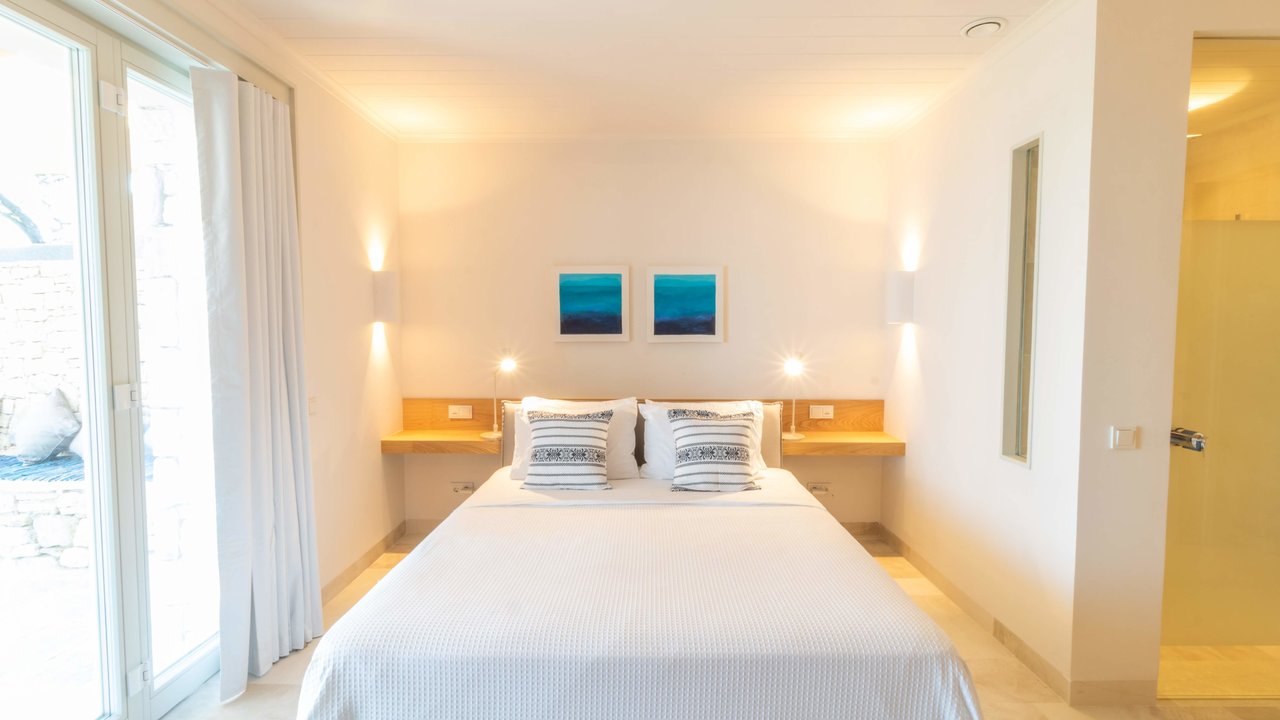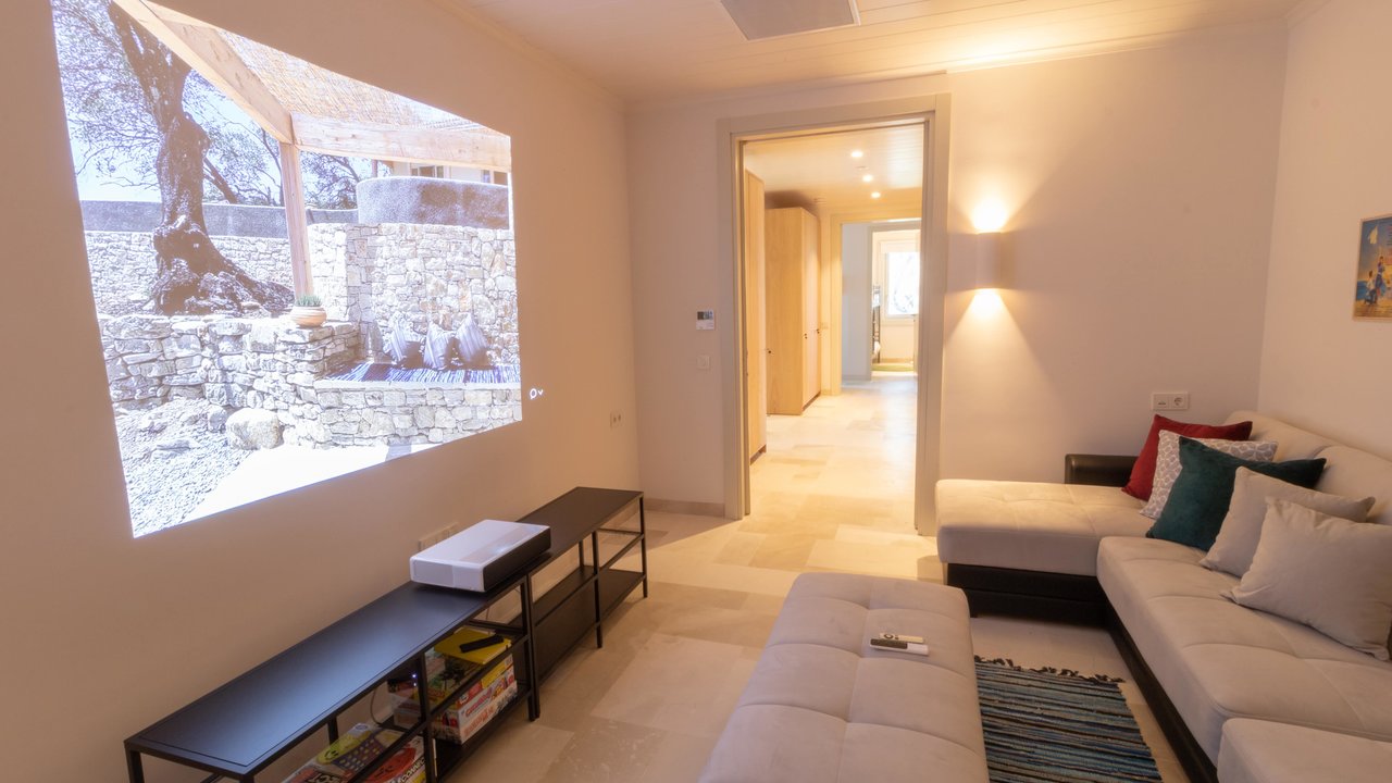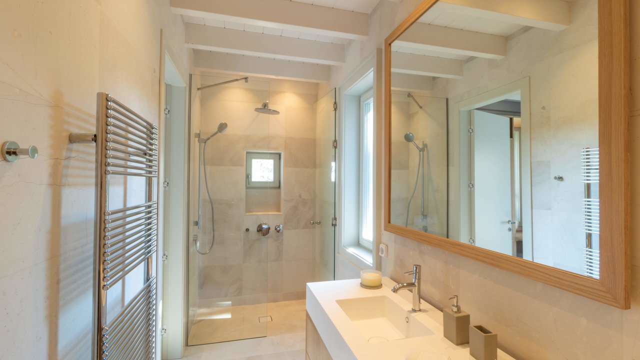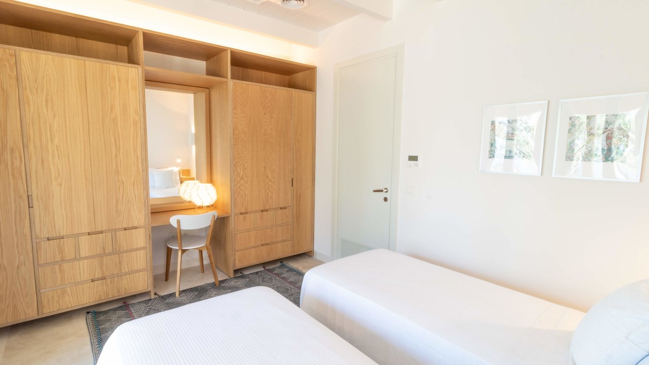 Villa Olympia features 4 double bedrooms, all with en-suite bathrooms. There is also a fifth optional bedroom that can be used as a small children’s bunk bedroom.