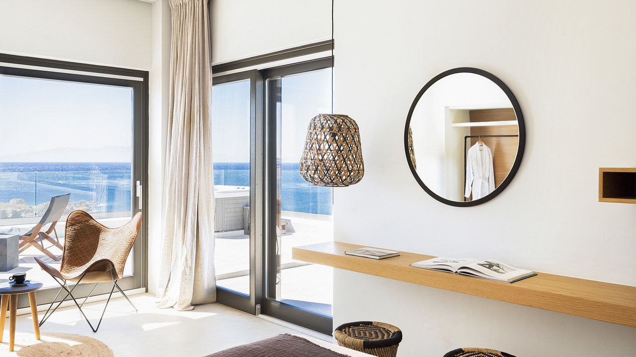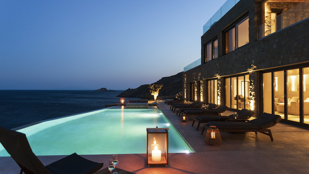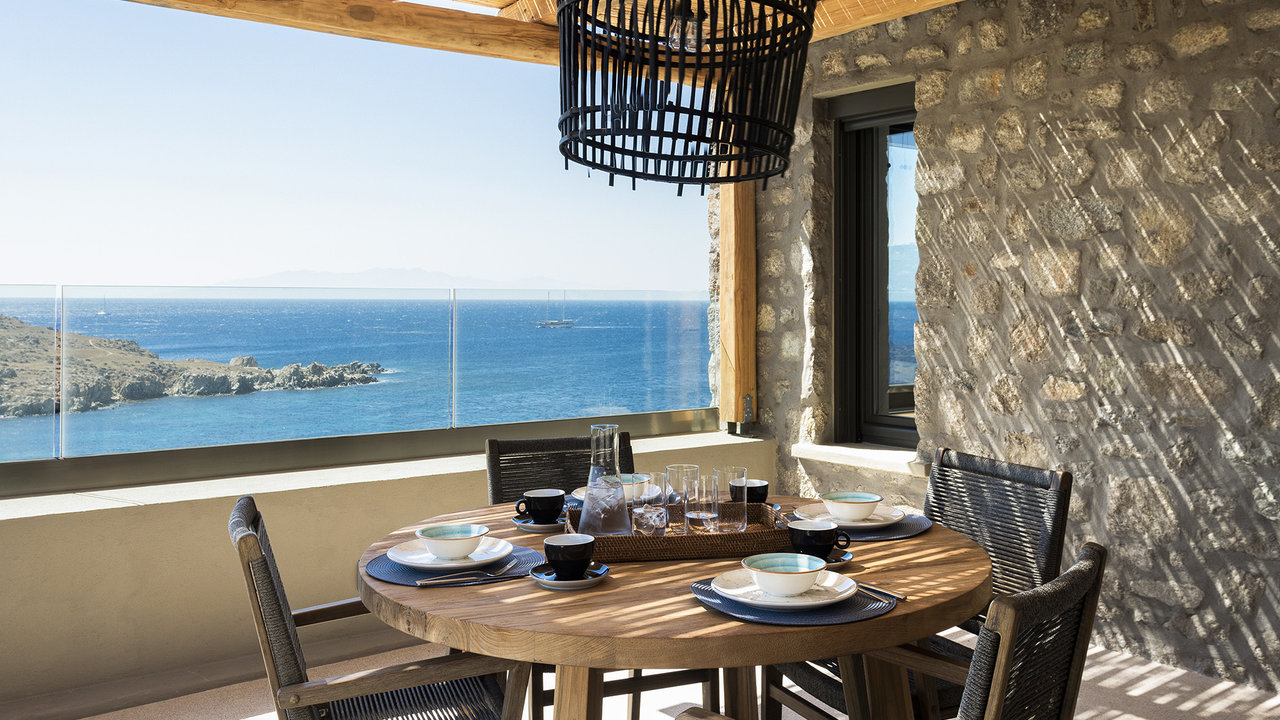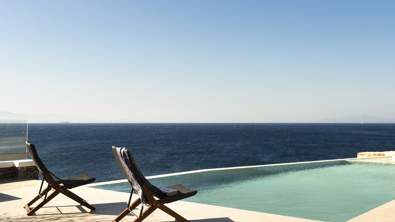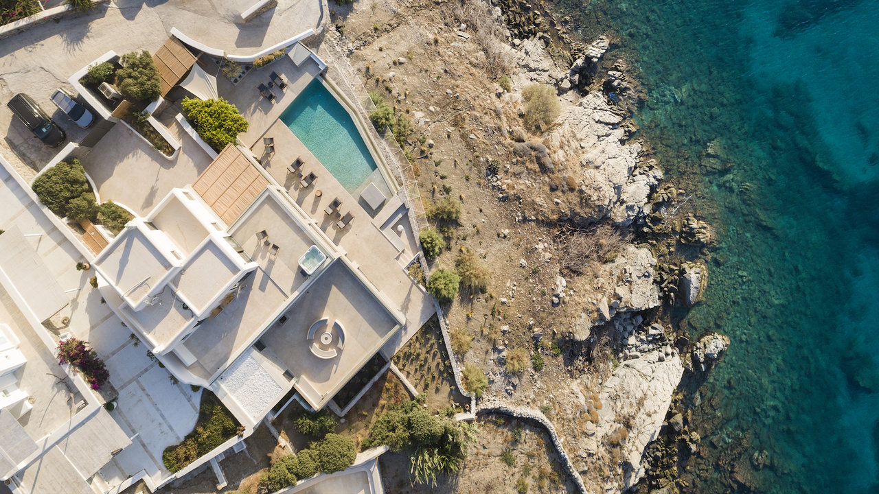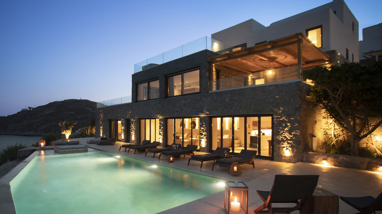 Villa Pandora is brand new waterfront property in Glyfadi, Aleomandra with amazing unobstructed sea views, built at the edge of a rocky shore in a wind protected spot right above the Aegean waters.