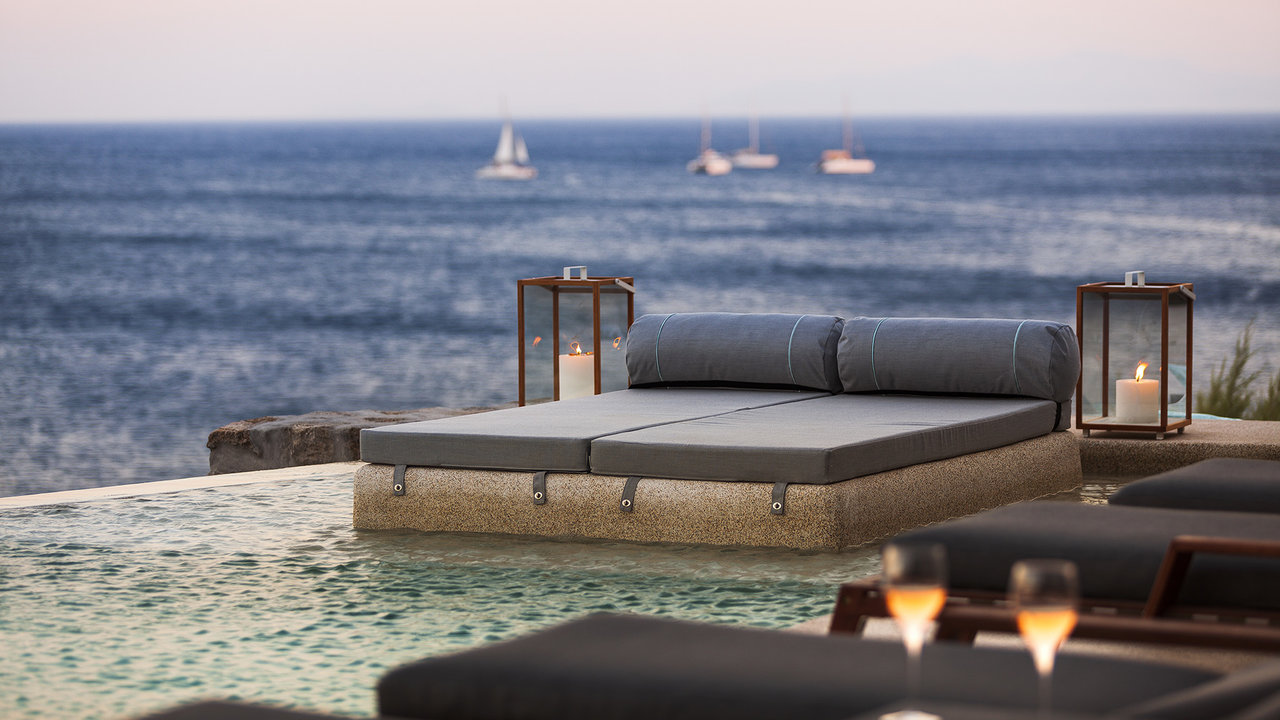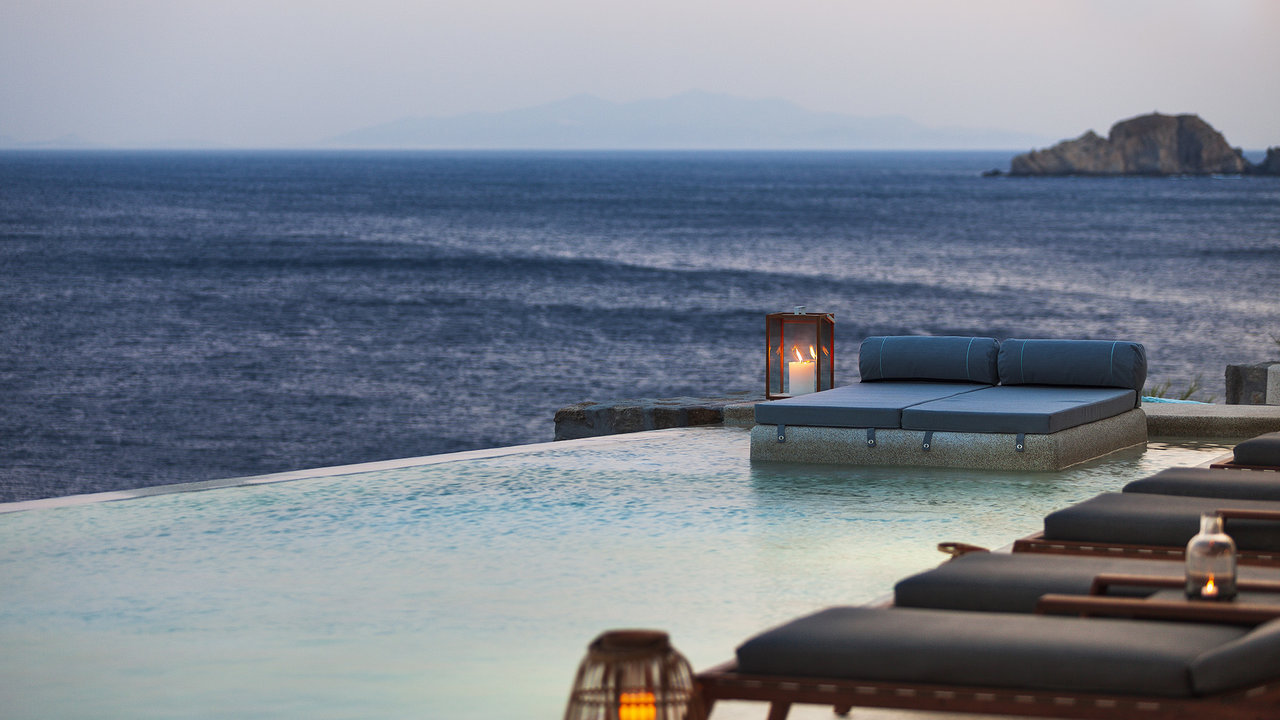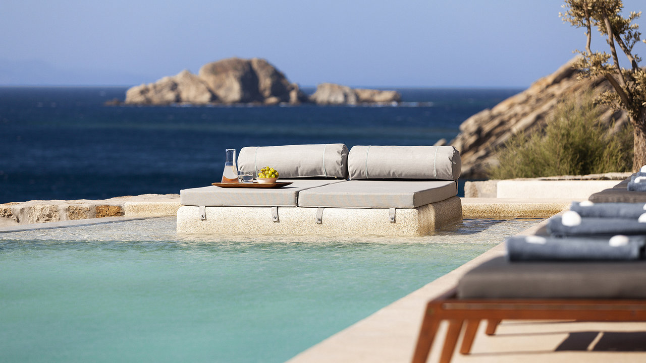 • Infinity pool (13 m.) with salt water and built-in “island” lounging space