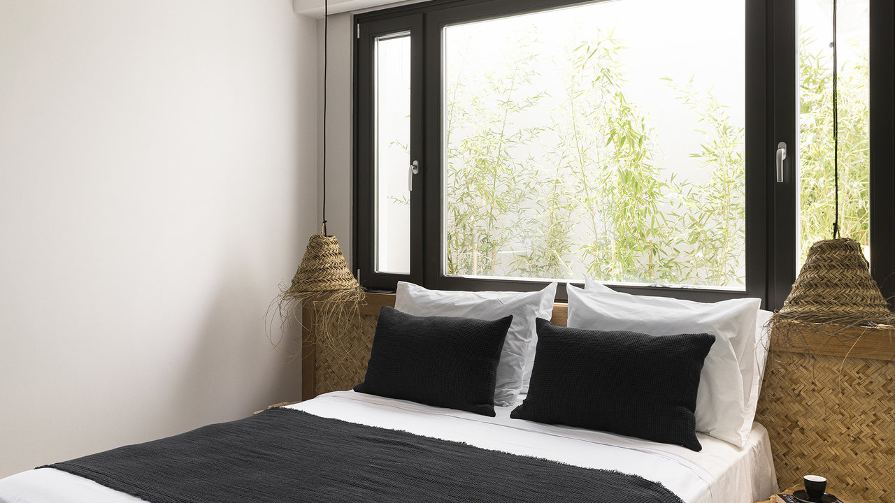 • 1 en suite double bedroom with sea view, queen bed and double rain showers/sinks (opens to the fire pit terrace)