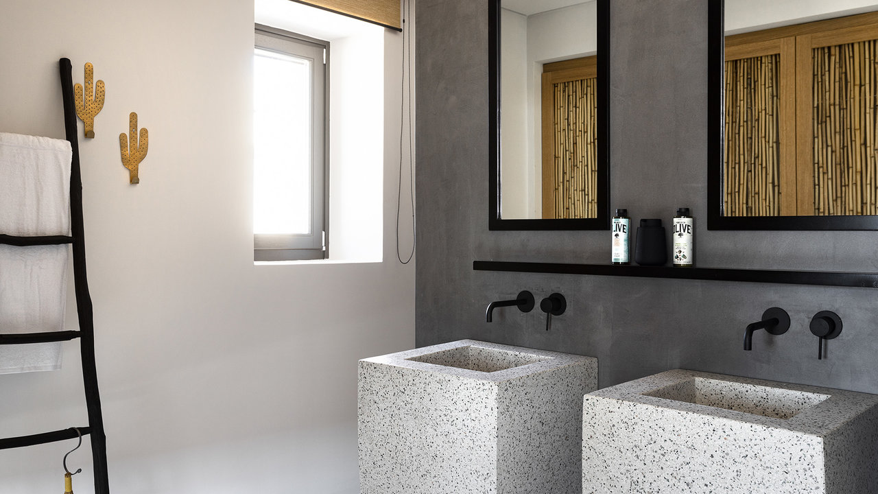 • 1 en suite double bedroom with sea/pool view, queen bed and double rain showers/sinks